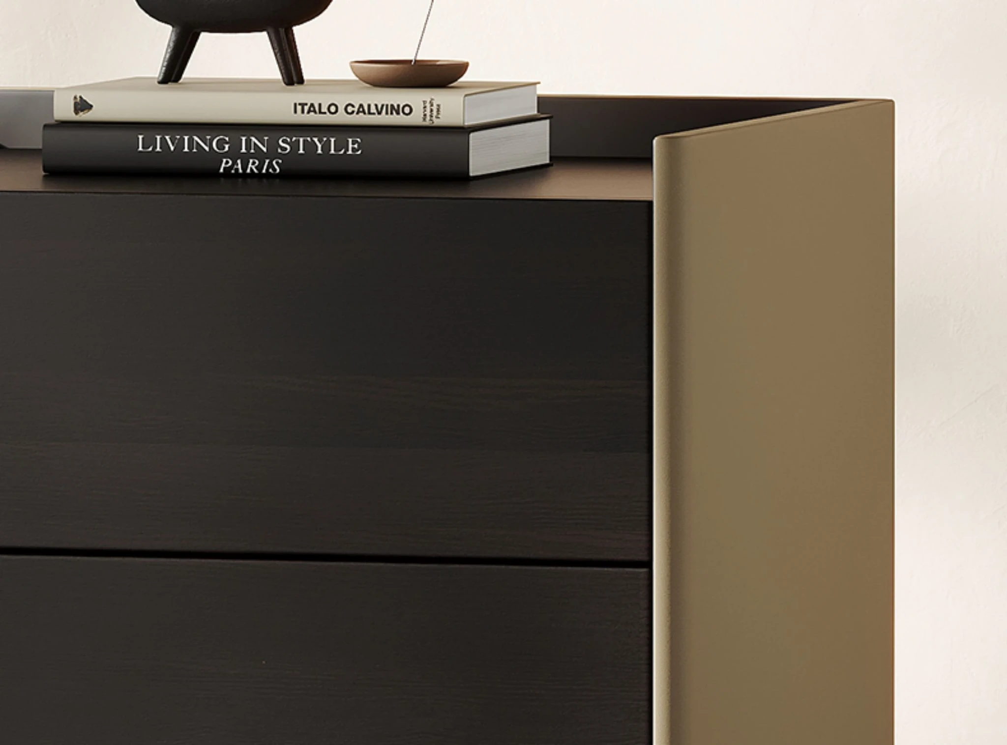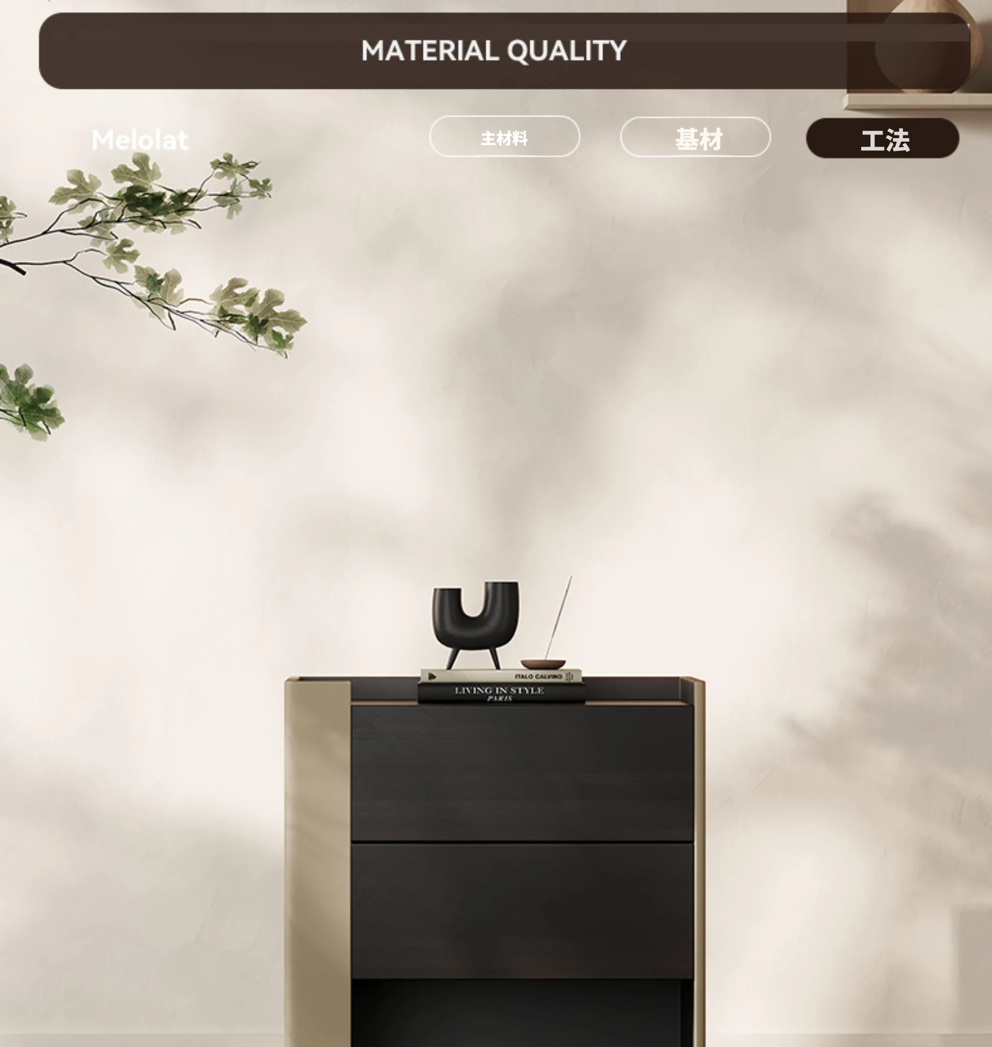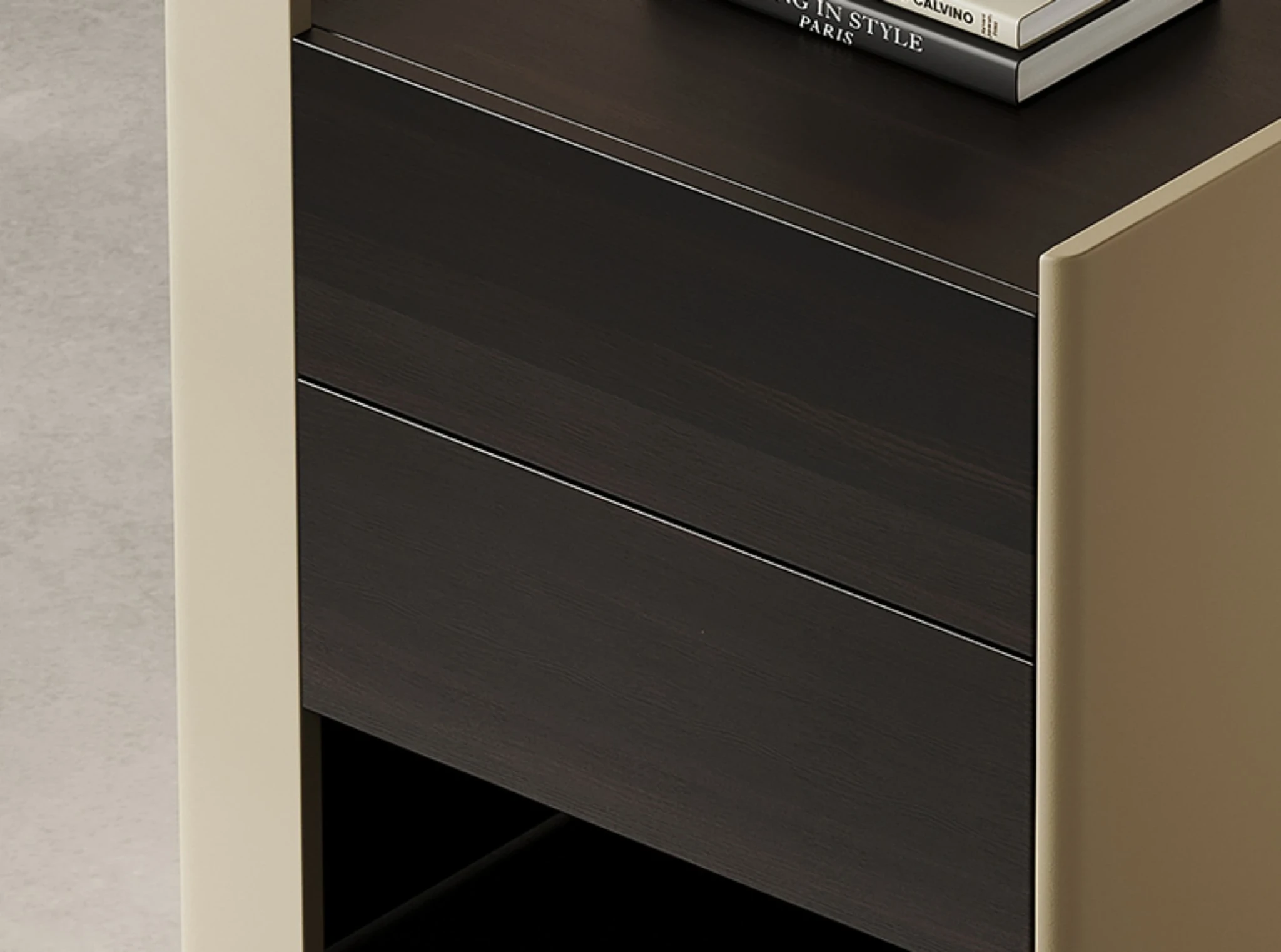 メロラット ベッドサイドテーブル - ラグジュアリーでシンプルな現代デザインの主寝室用収納キャビネット。デザイナーによるサドルレザー仕上げで、スタイリッシュさと機能性を両立!