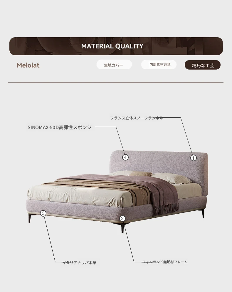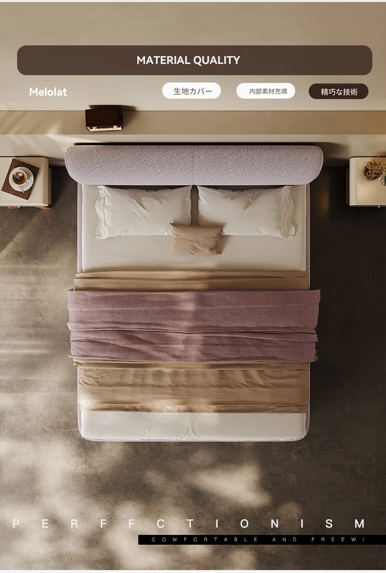 Melolatオリジナル発表!イタリアンラグジュアリー現代的シンプルデザインのクリームカラー二人用ベッド。主寝室や新婚生活にぴったりなスタイリッシュなベッドで、あなたの空間を優雅に演出します。