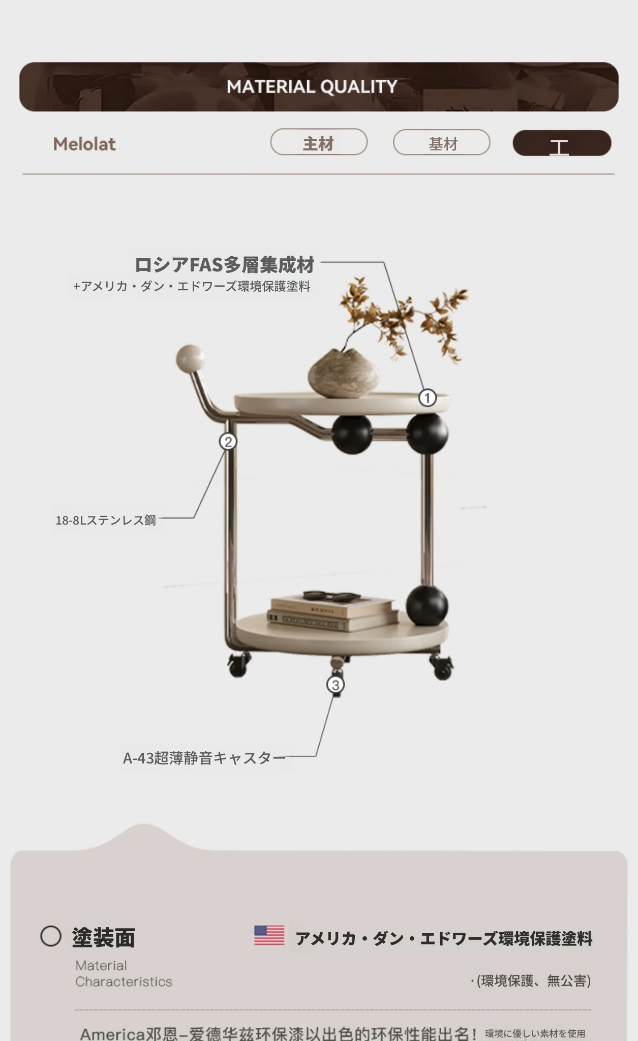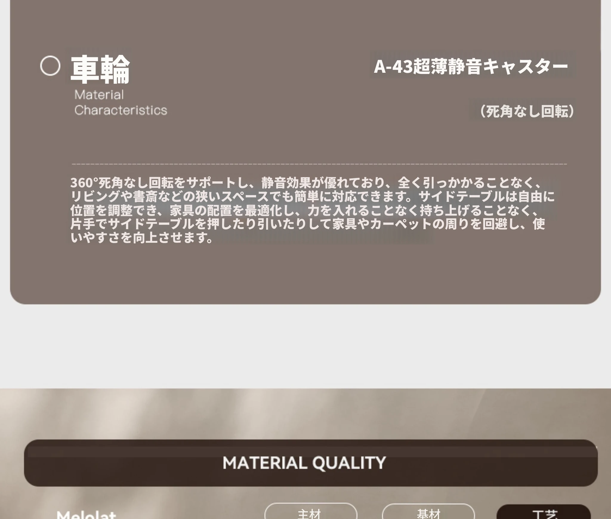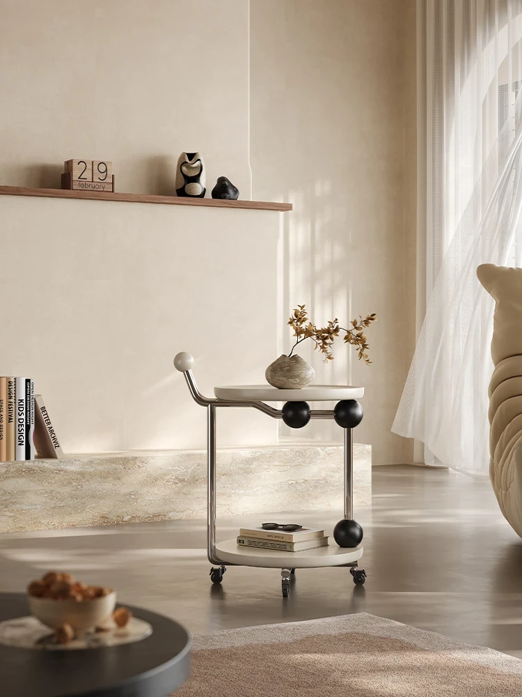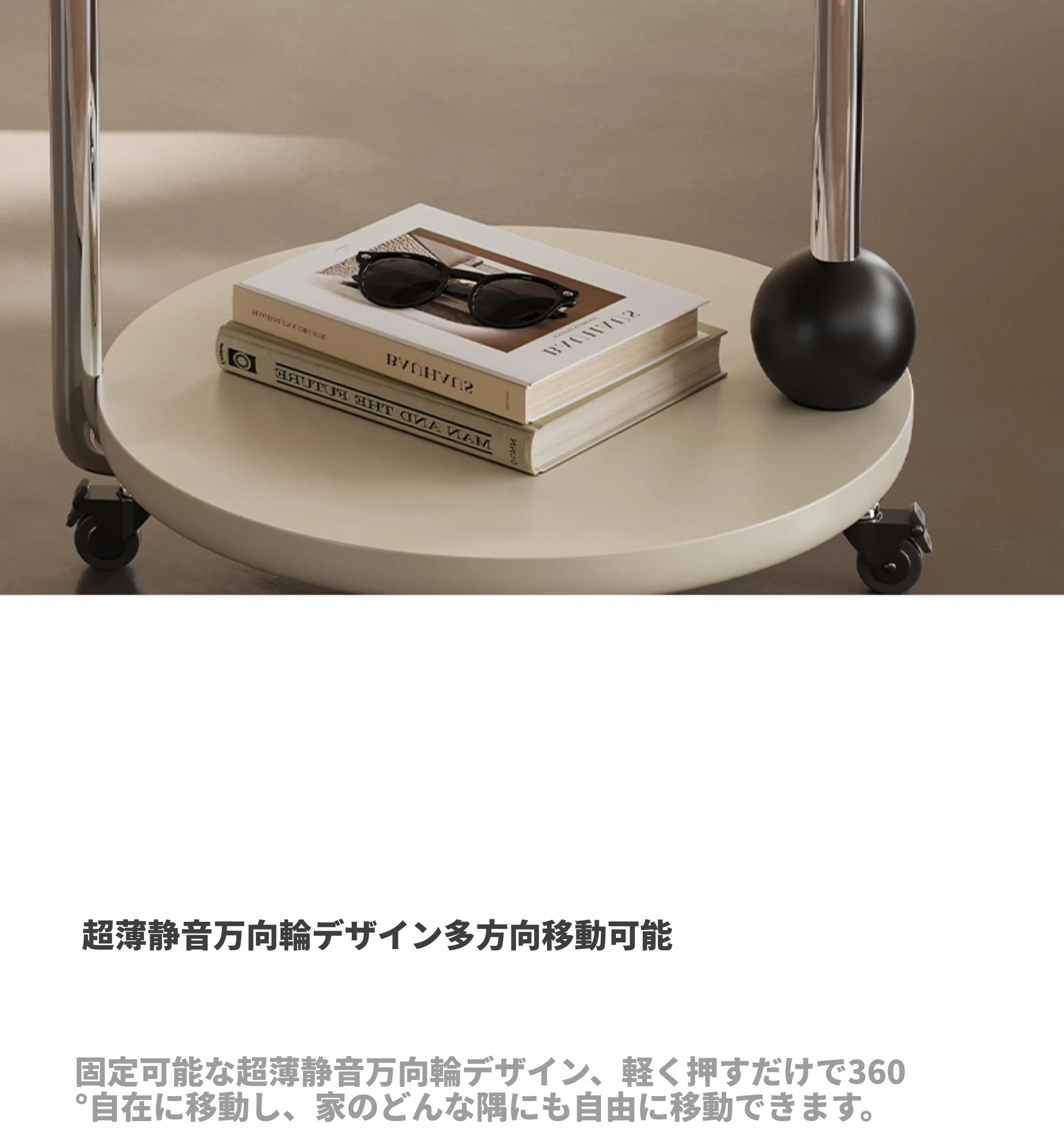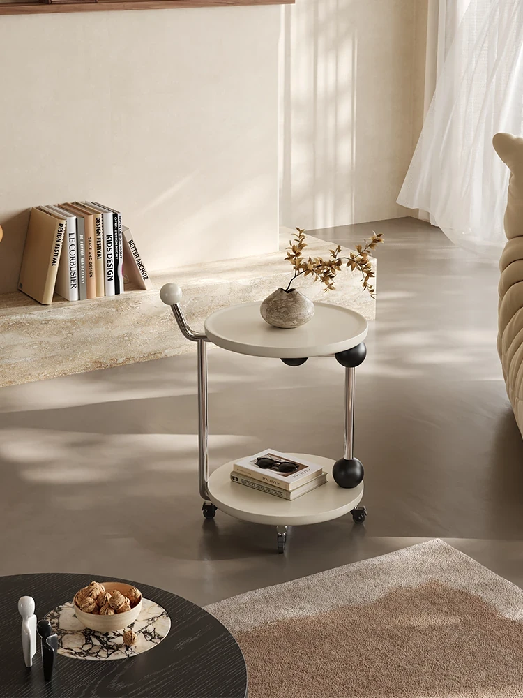 Melolatオリジナル発表 イタリアンスタイルの移動式キャスター付きデザイナーのリビングルーム用ラグジュアリーサイドテーブル