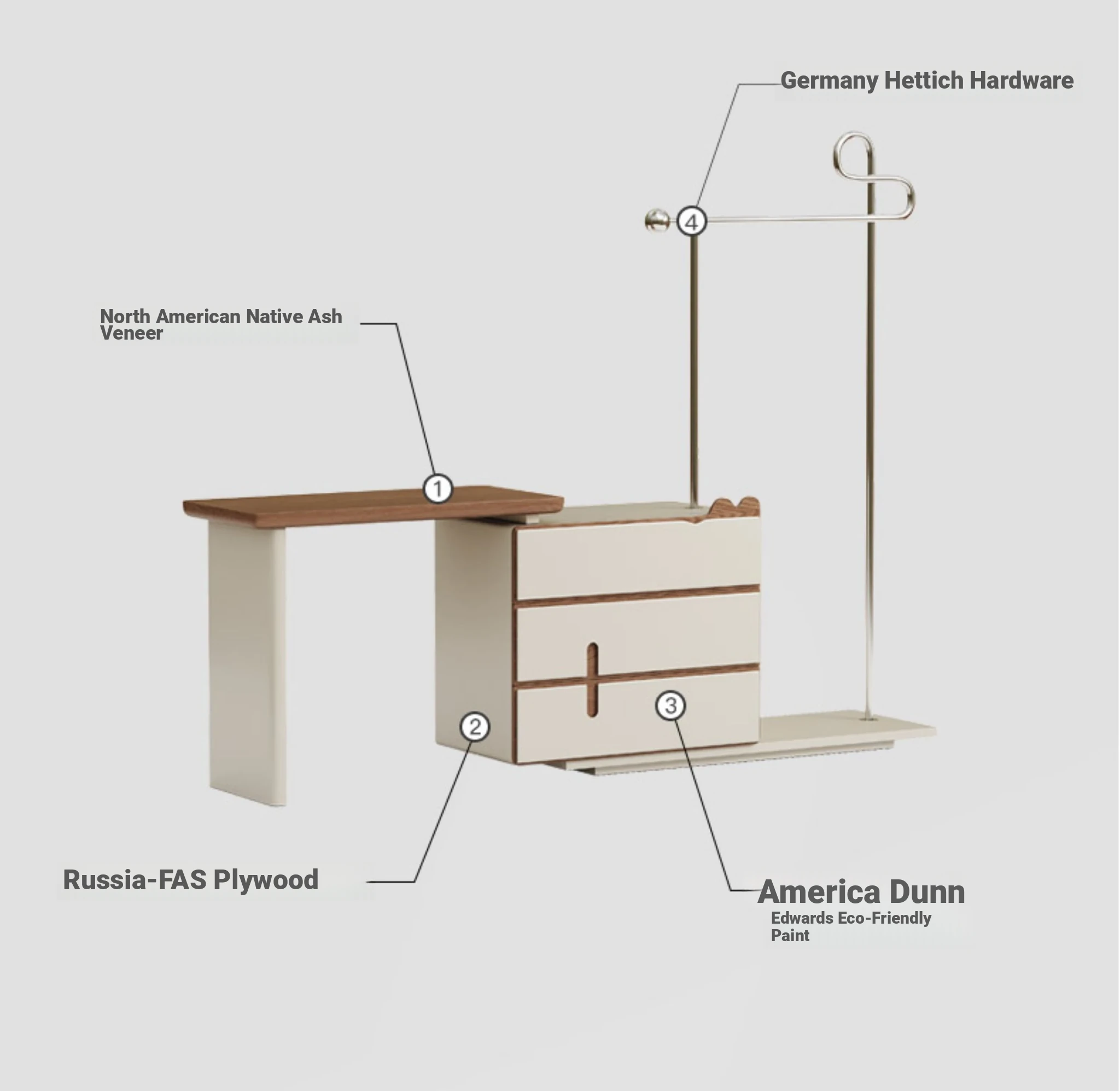 Left Coat Rack* Retractable Dressing Table Integrated + Makeup Mirror [Alexi Original Patented Design]