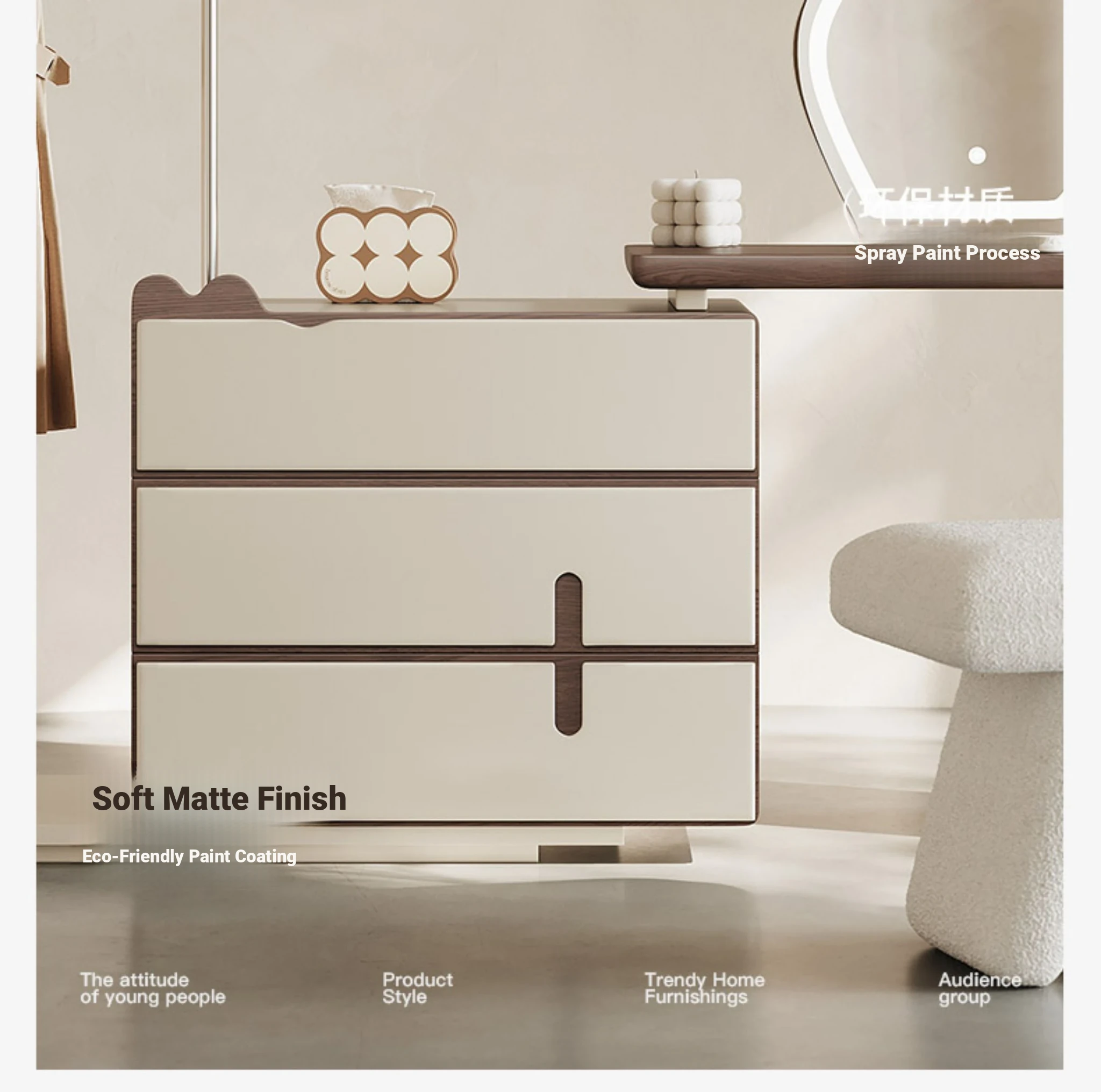 Melolat Original Italian Makeup Vanity & Storage Cabinet - Creamy Dresser for Bedroom Organization and Style