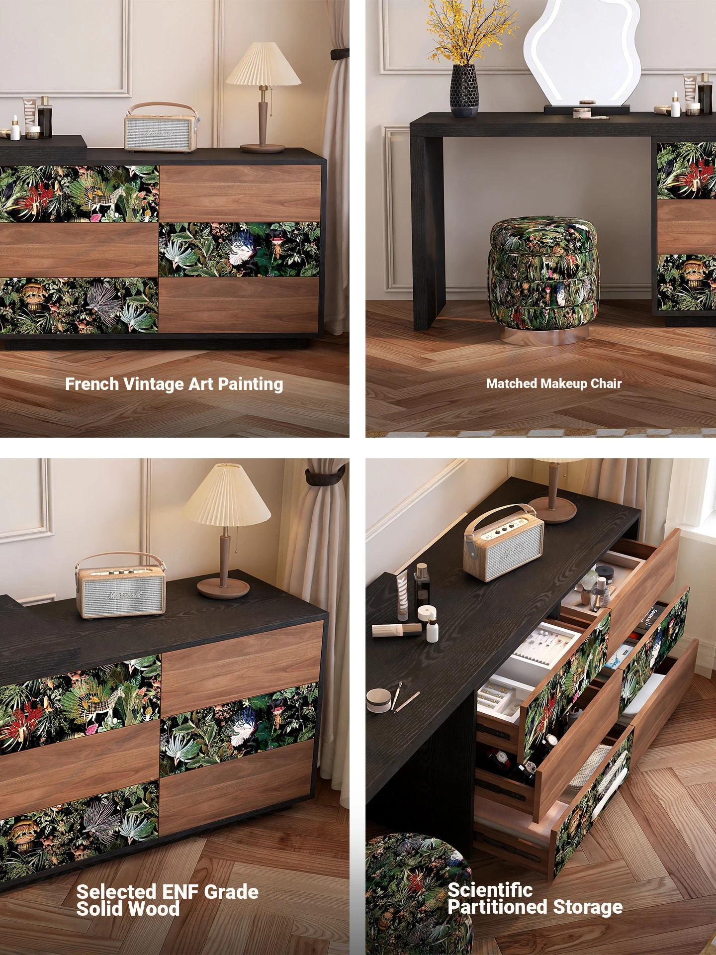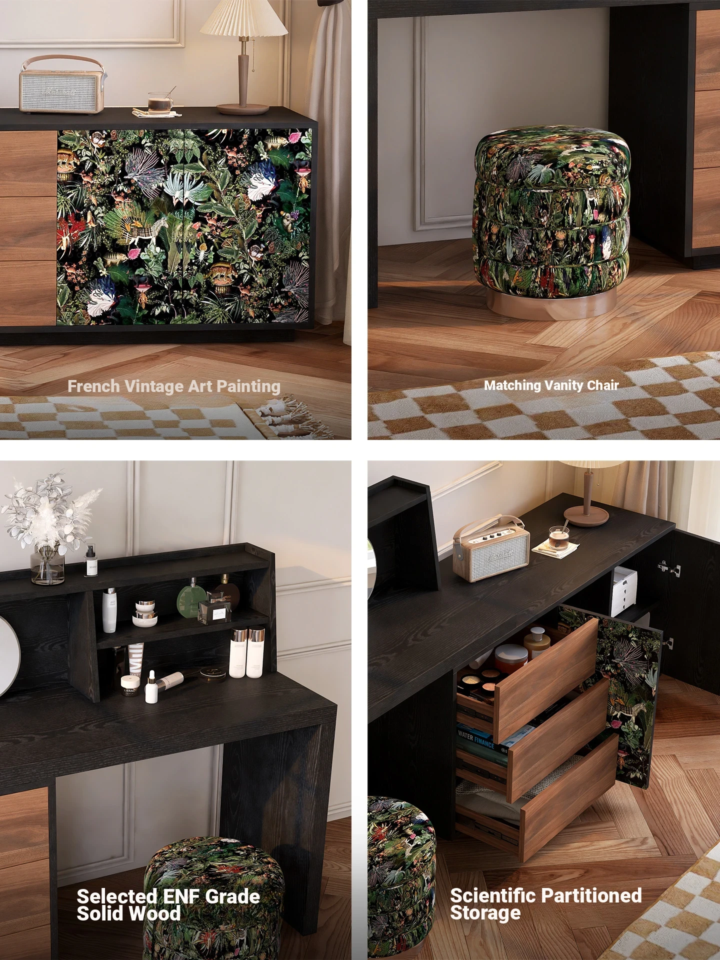 Left Coat Rack* Retractable Dressing Table + Makeup Stool + Makeup Mirror [Alexi Original Patented Design]