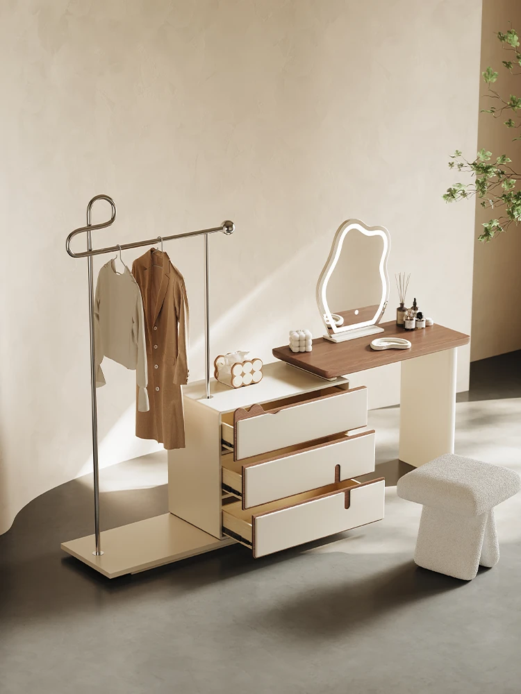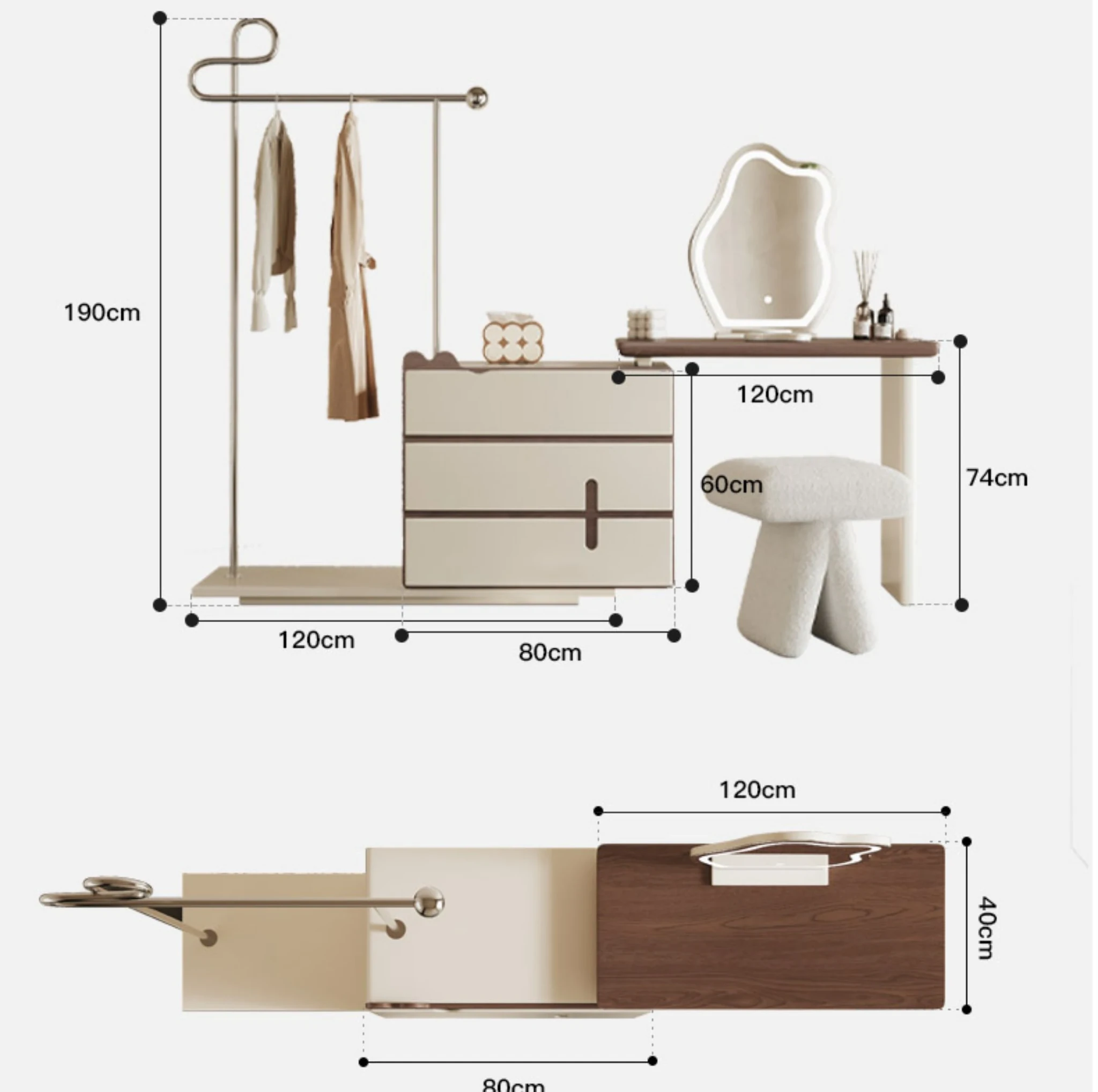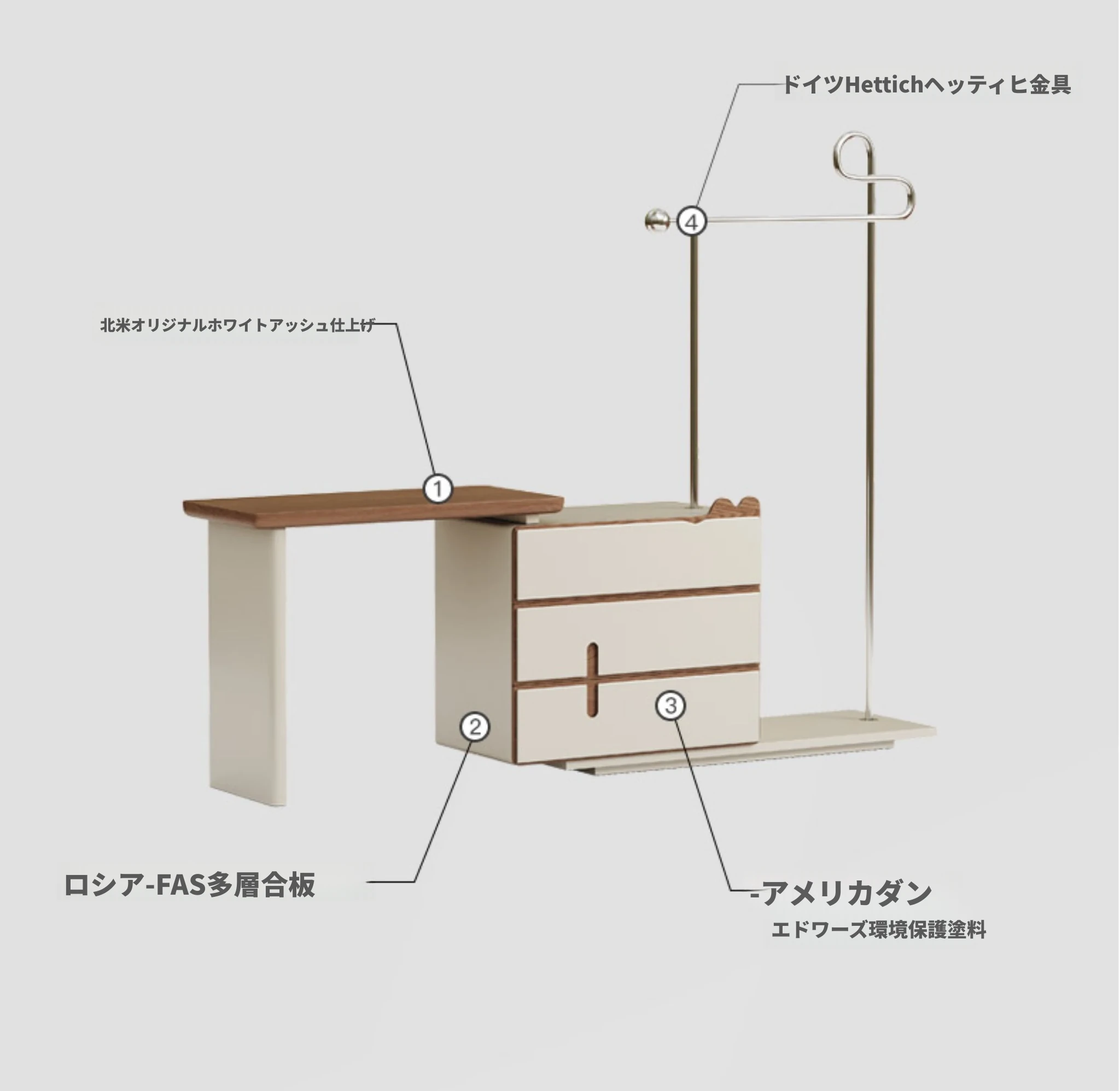 左衣帽架*可伸縮メイク台一体+メイクスツール【Alexiオリジナル特許デザイン】