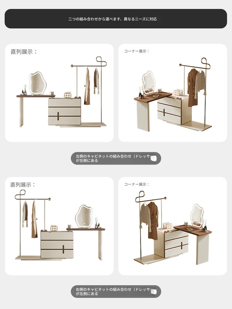 左衣帽架*可伸縮メイク台一体+メイクスツール+メイクミラー【Alexiオリジナル特許デザイン】