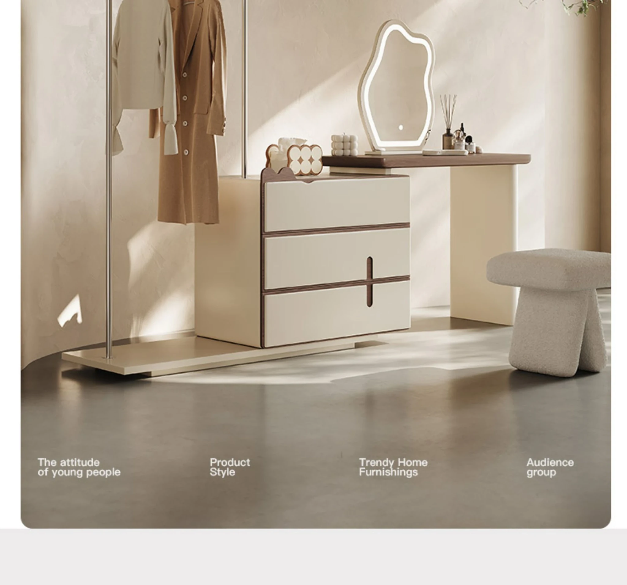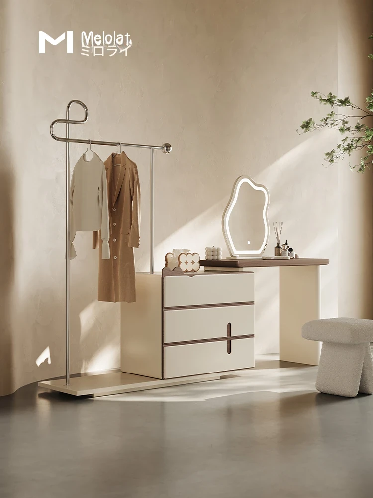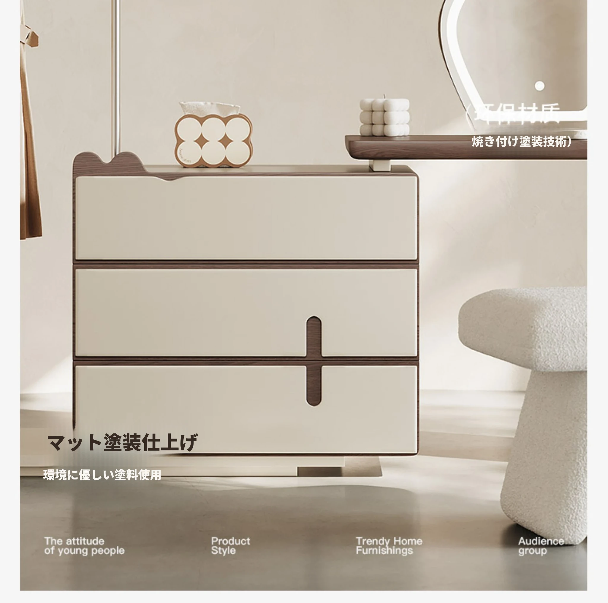 Melolatオリジナル初登場!イタリアンスタイルの化粧台収納キャビネット一体型クリームカラーのドレッサー。おしゃれで機能的な収納力抜群の寝室用化粧テーブル!