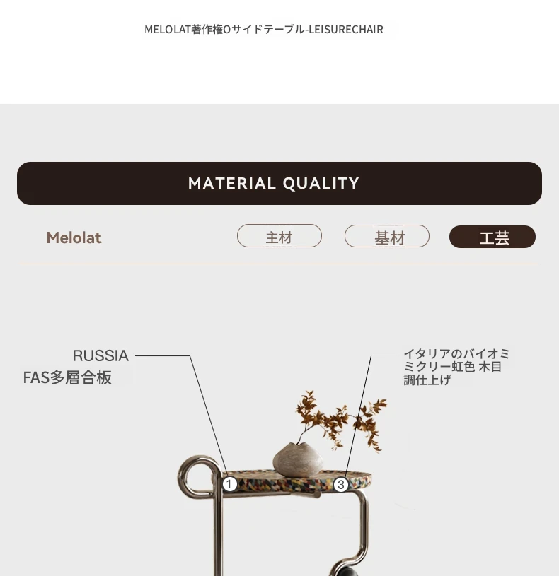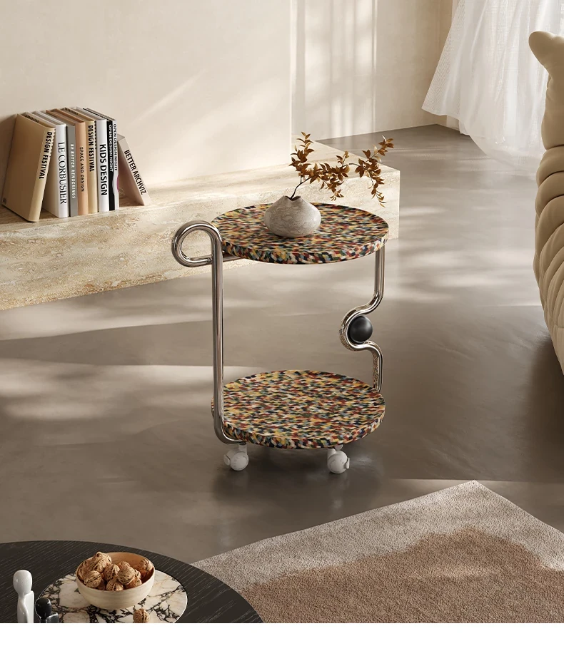 Melolatオリジナル発表 イタリアンスタイルのキャスター付きデザイン小型サイドテーブル - ラグジュアリー感溢れるリビングルームのソファサイドにぴったり!