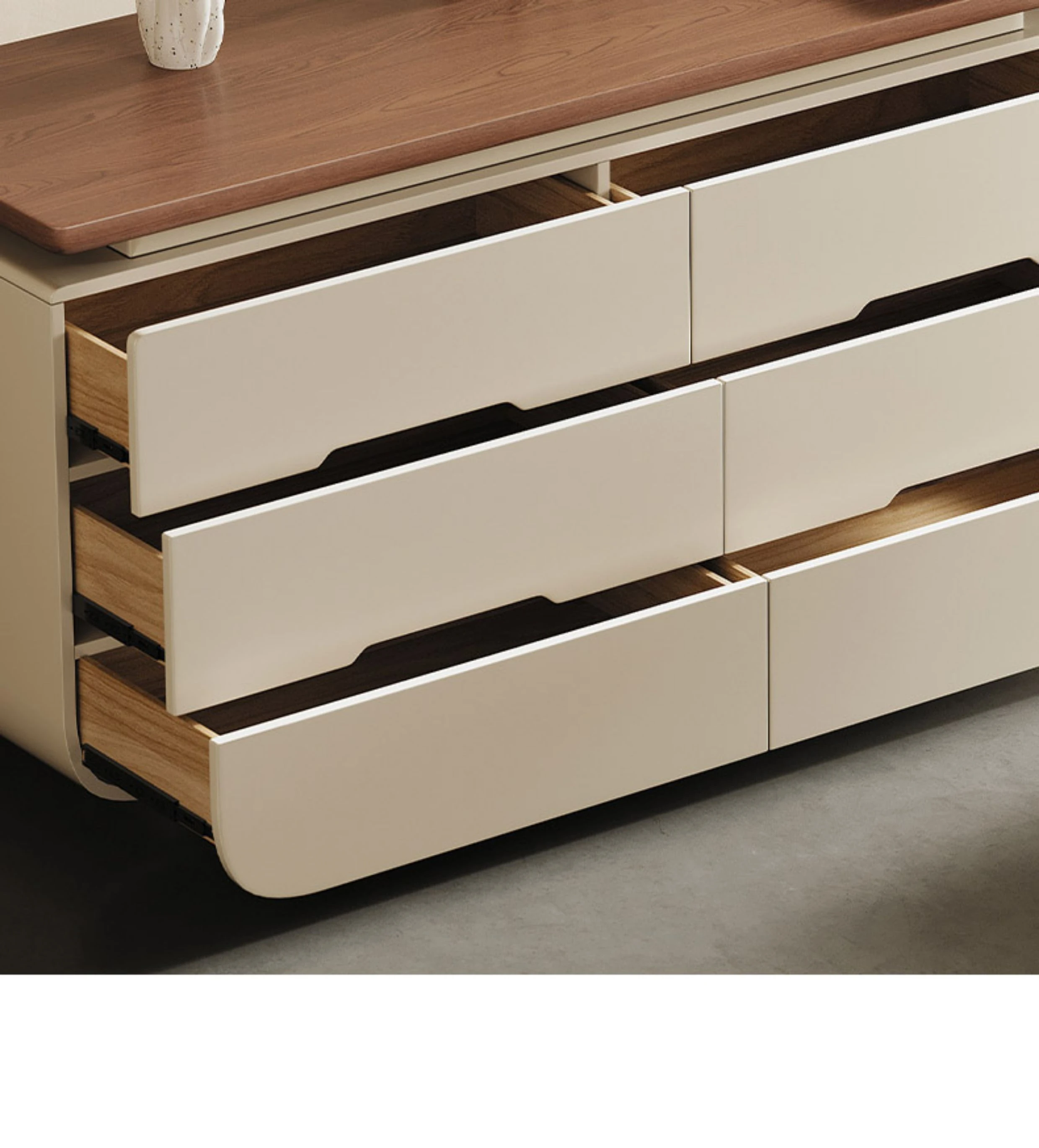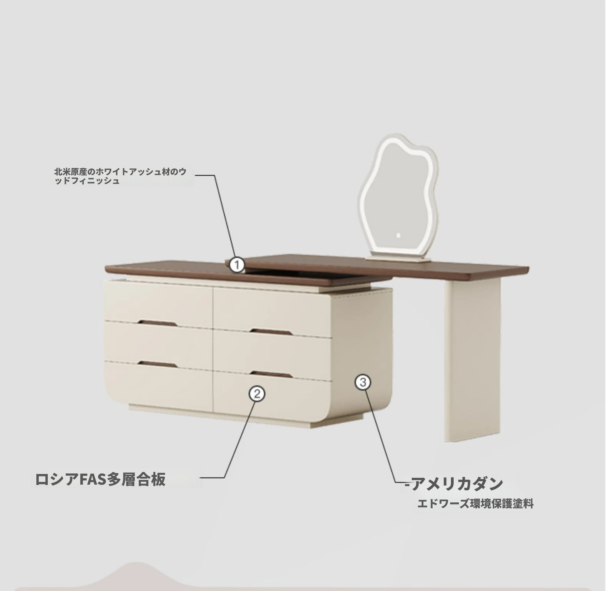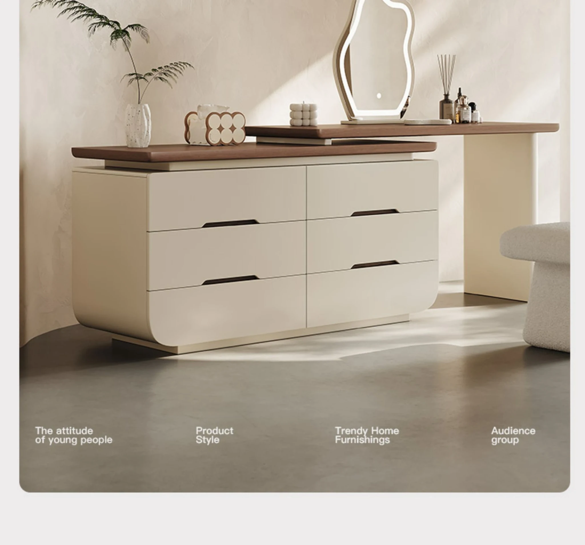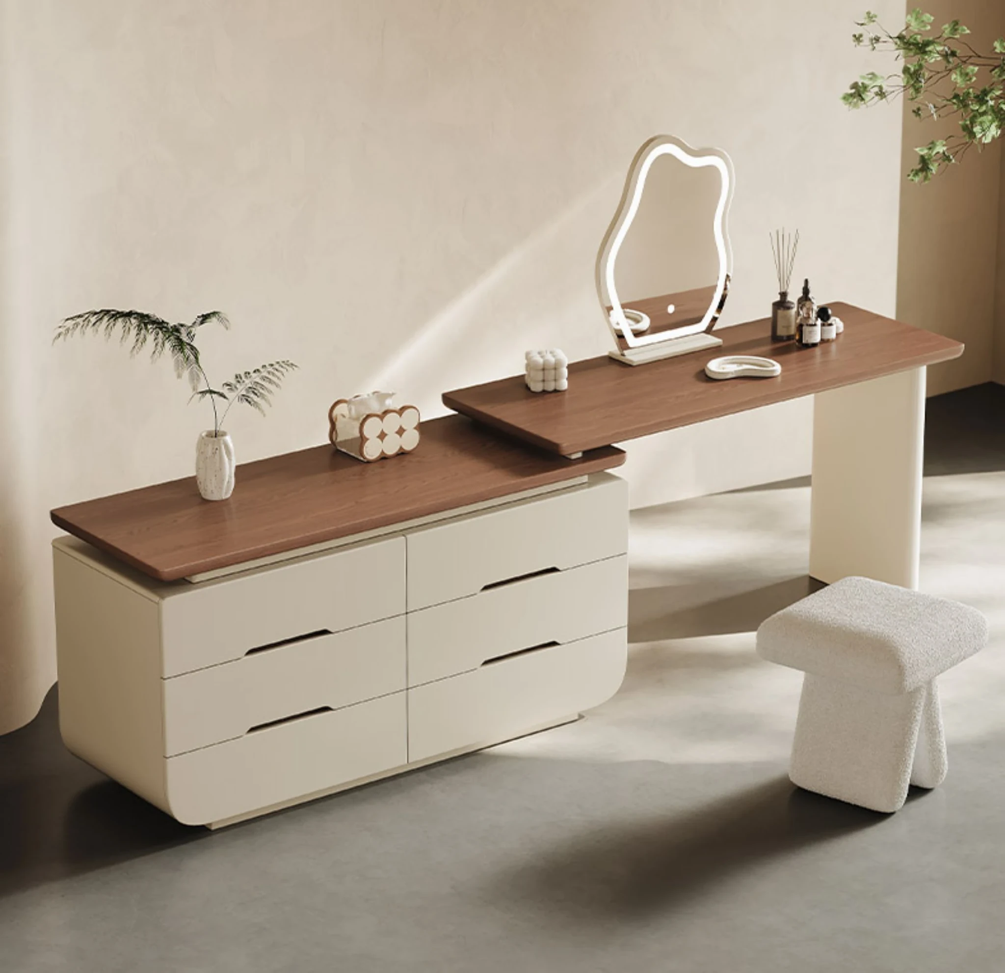 Melolatオリジナルデザイン!イタリアンスタイルの化粧台収納キャビネット一体型クリームカラーのドレッサー。おしゃれで機能的、あなたの寝室を美しく整理整頓!