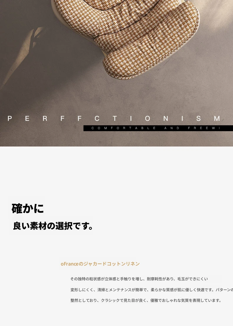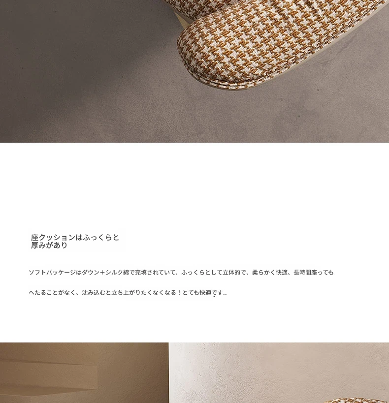 アンバーウォームサンド【2025オリジナル初発】[フランス輸入千鳥格子コットンリネン+カナダ輸入グースダウン] 単椅子+フットスツール