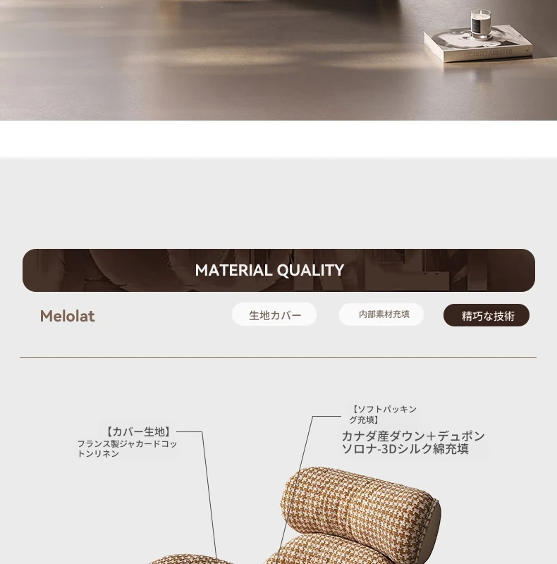 Melolatオリジナル発表!イタリアンミニマリズムのリクライニングチェア - ラグジュアリー感溢れるリビングルーム用、バルコニーでのリラックスタイムに最適なソファチェア。あなたの生活空間に洗練されたスタイルをプラス!