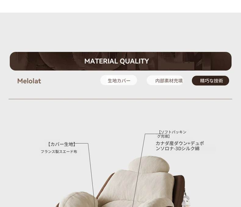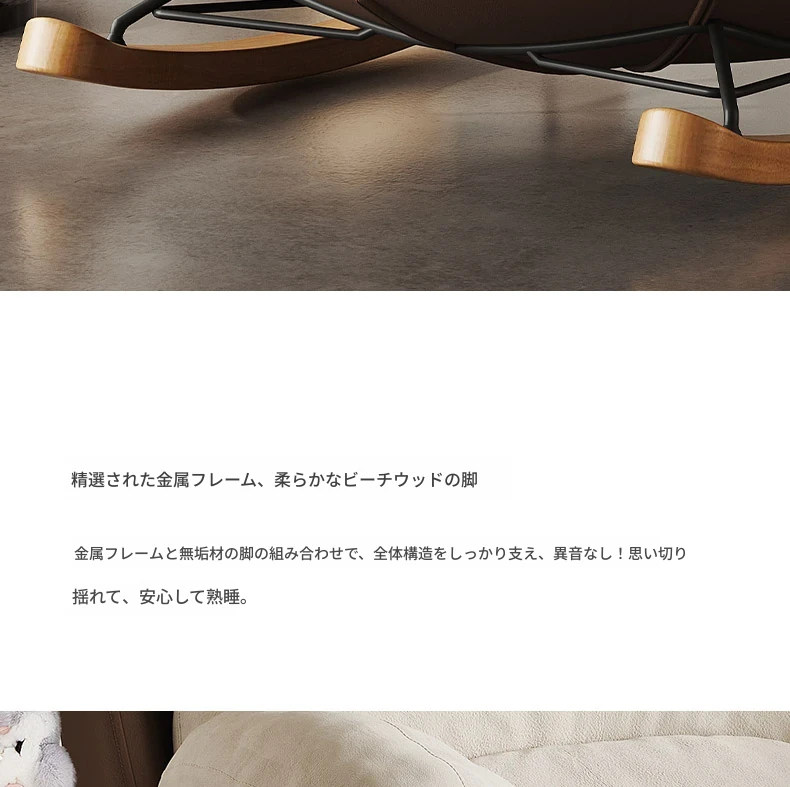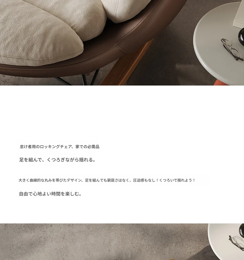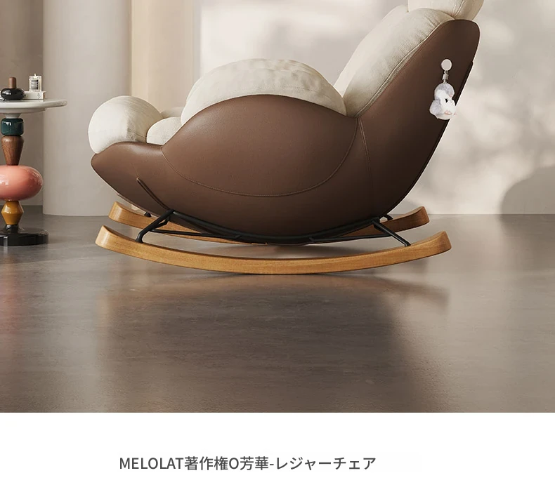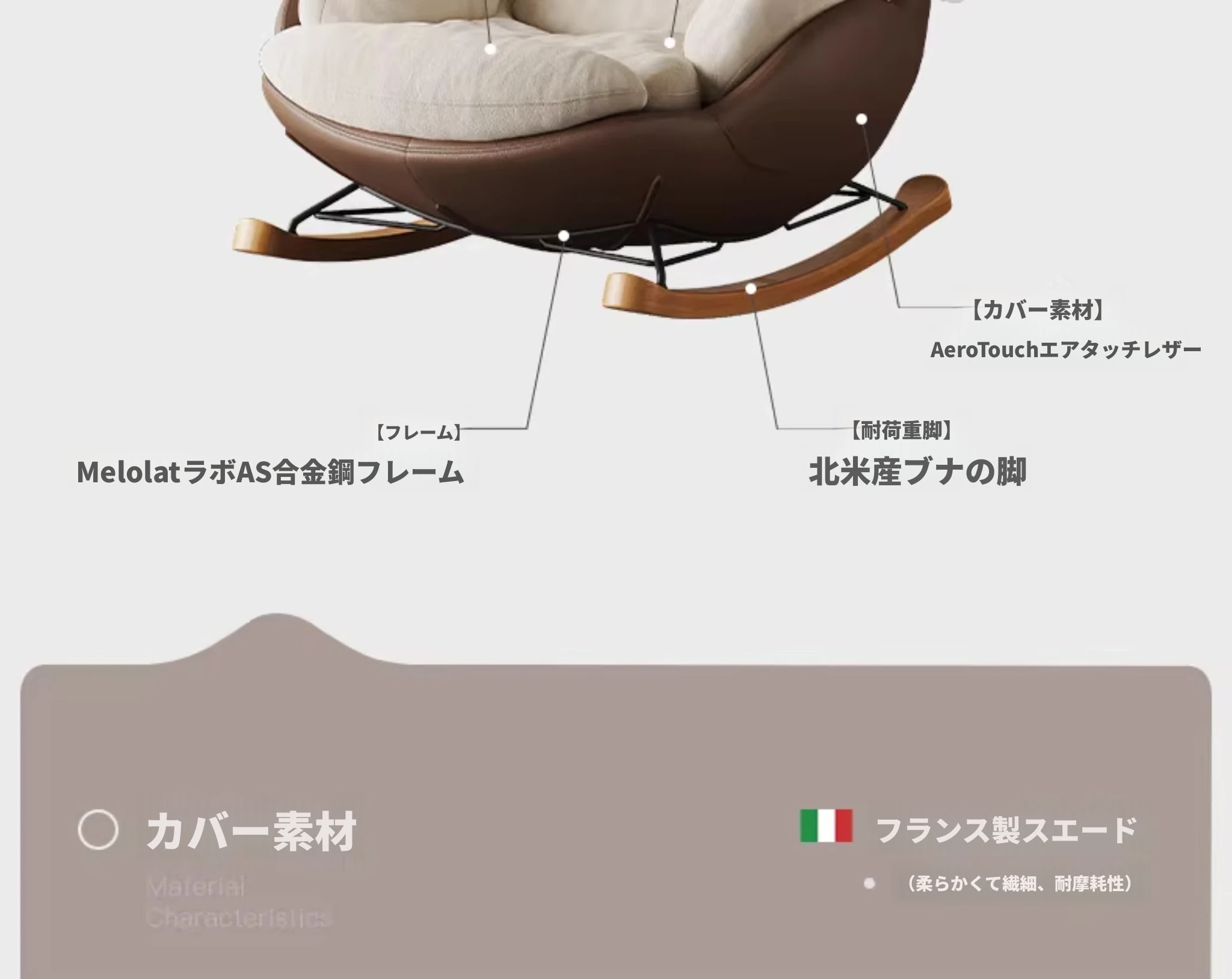 Melolatオリジナル発表!イタリアンスタイルの一人用ソファ、家でのリラックスに最適。リビングやバルコニーでくつろげる、心地よい揺れのロッキングチェア。あなたの生活空間をスタイリッシュに彩ります!