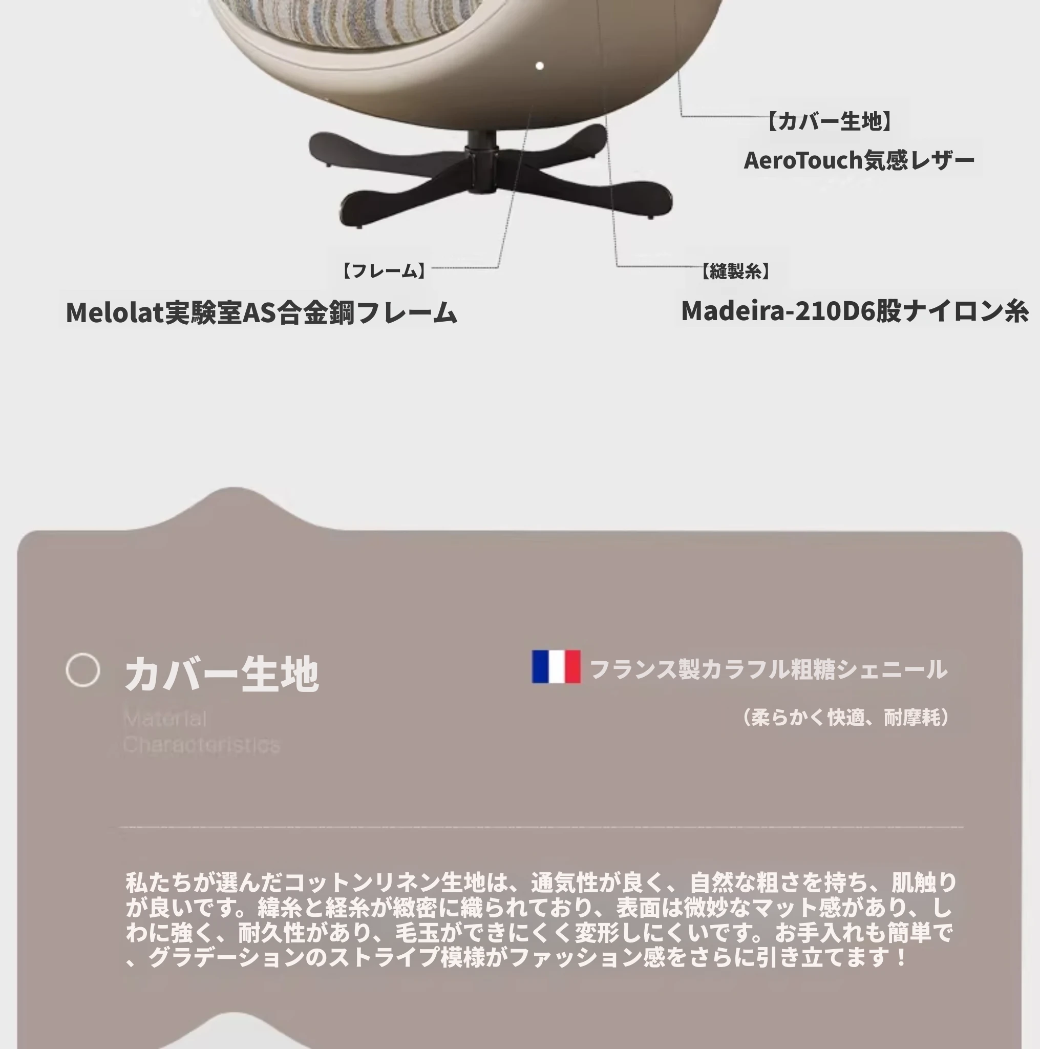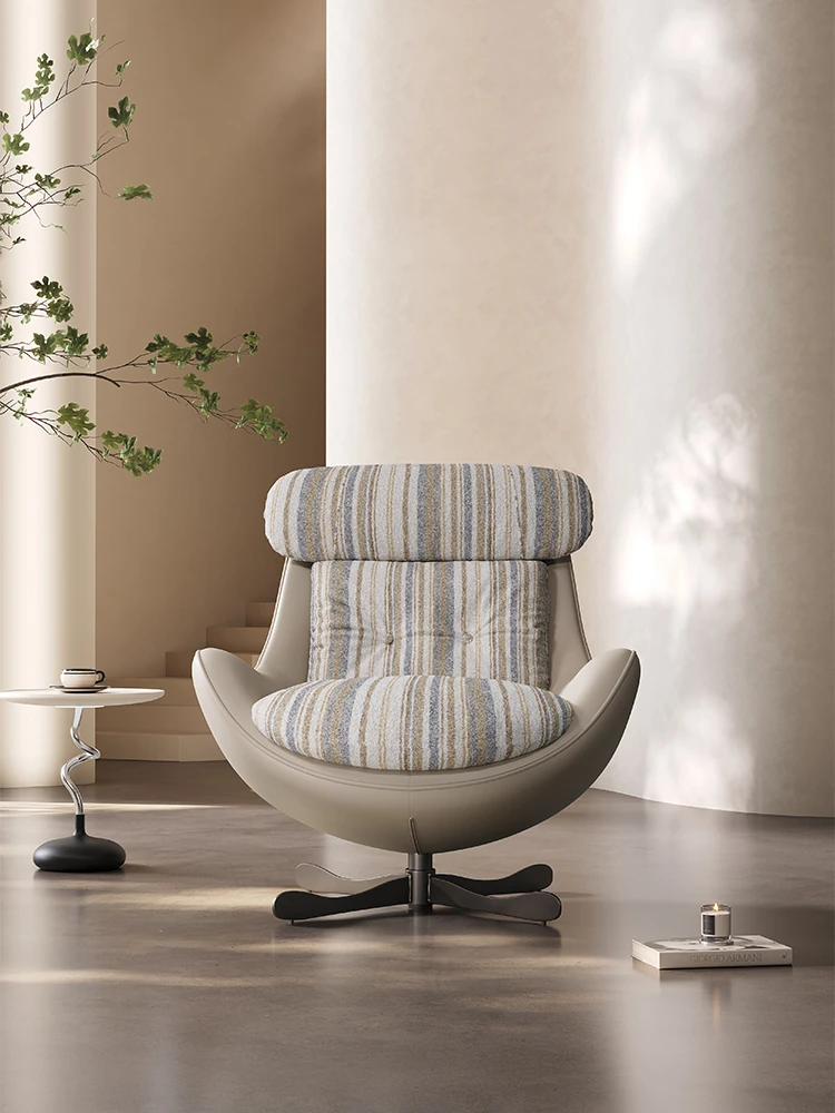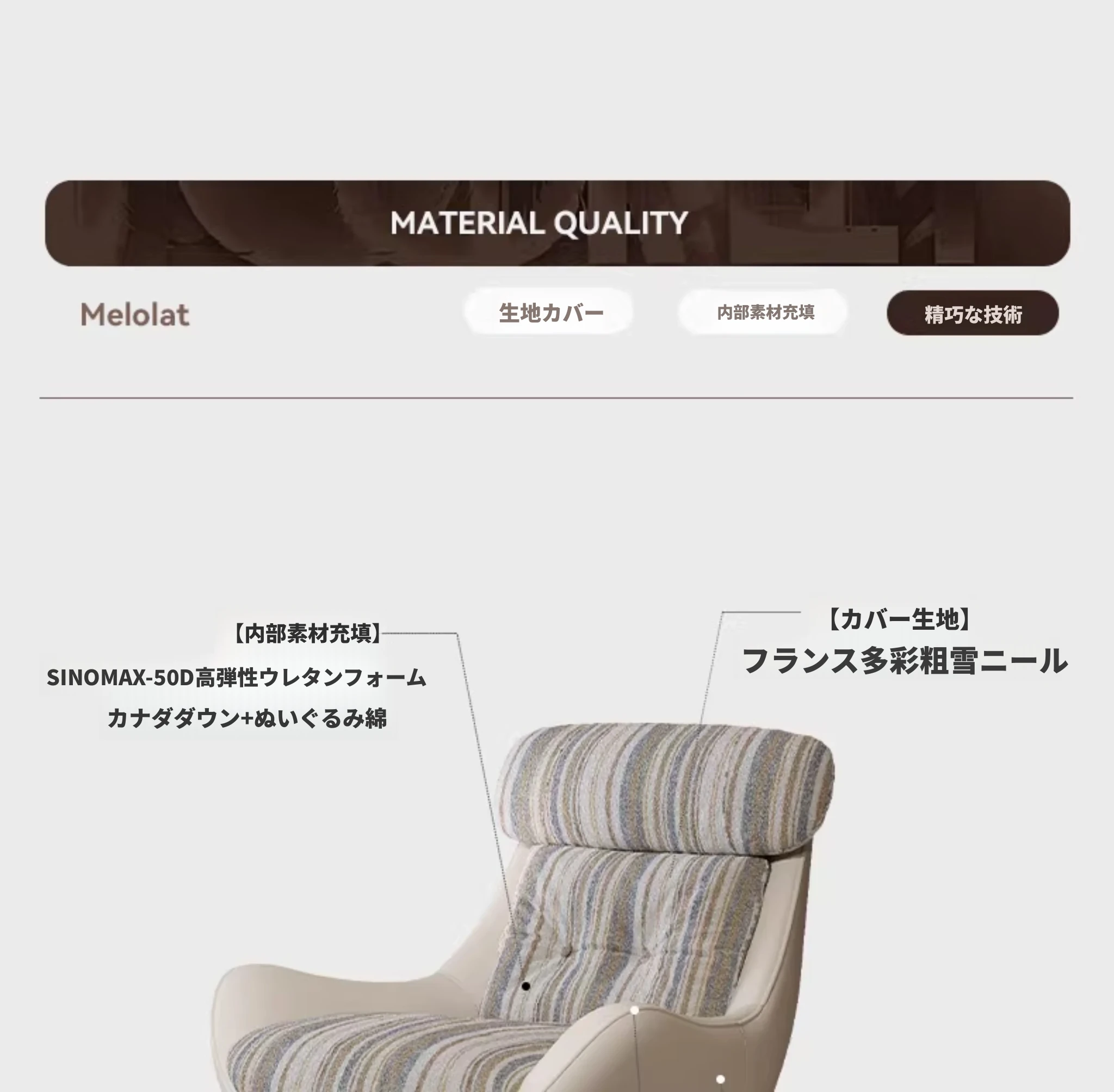Melolatオリジナルのイタリアンスタイル旋回リラックスチェア、モダンなデザインで、くつろぎのひとときを提供する一人掛けソファ。あなたのリビングにぴったりのアイテムです!