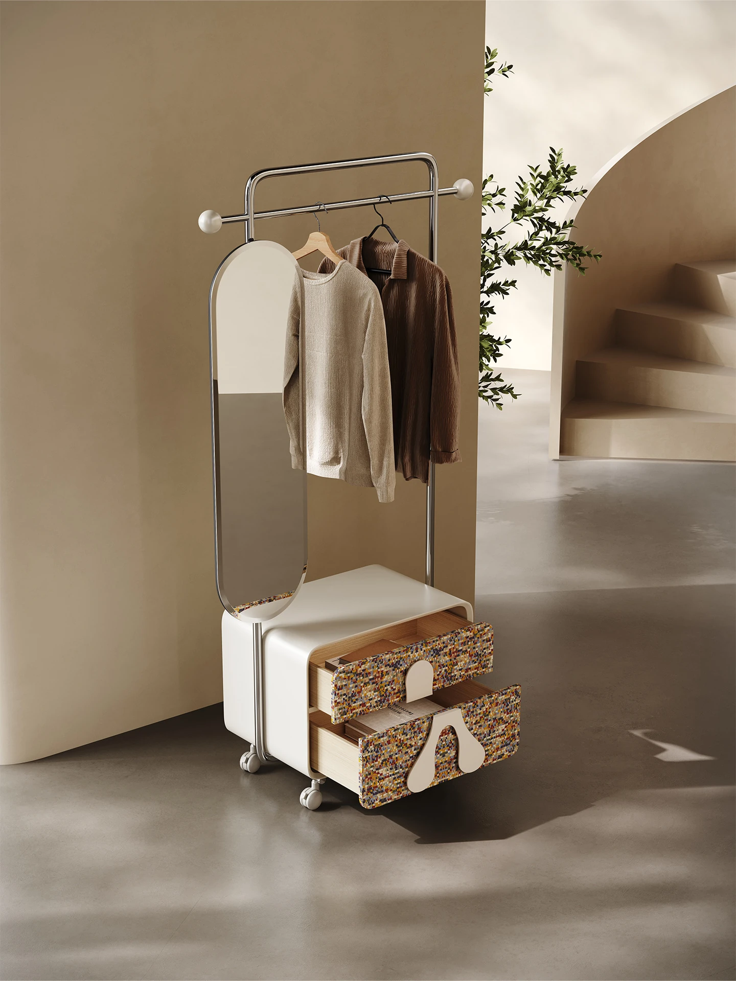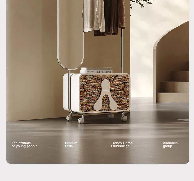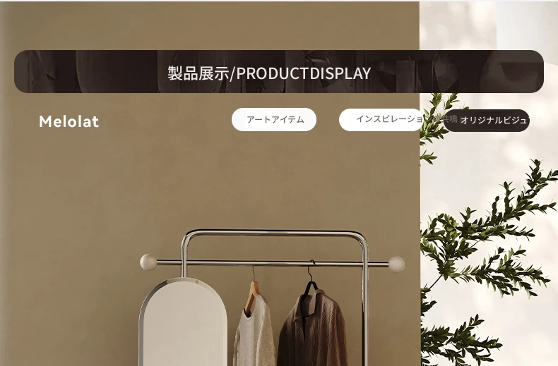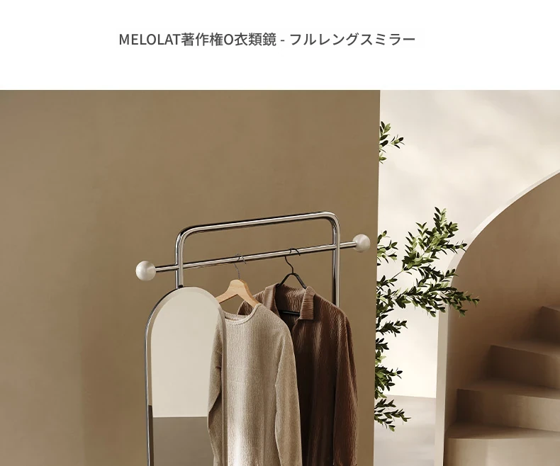 Melolatオリジナル発表!スタイリッシュな衣類・帽子ラック一体型、移動可能なイタリアンライトラグジュアリーの寝室用化粧鏡。おしゃれな空間を演出し、毎日のコーディネートを楽しく!