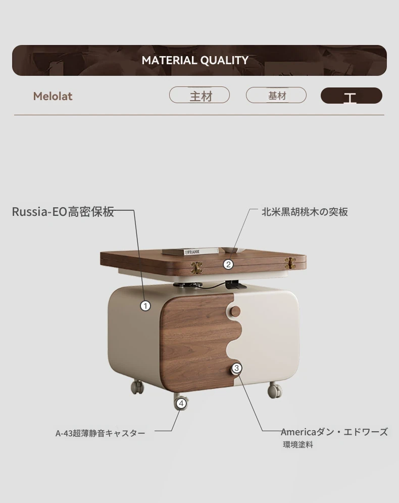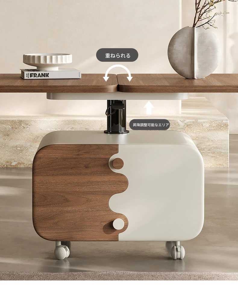Melolatオリジナル発表の可動式リビングテーブル!イタリアンミニマルデザインの昇降・折りたたみ・回転機能付き。おしゃれで便利なキャスターテーブルで、あなたのリビングをスタイリッシュに演出します!