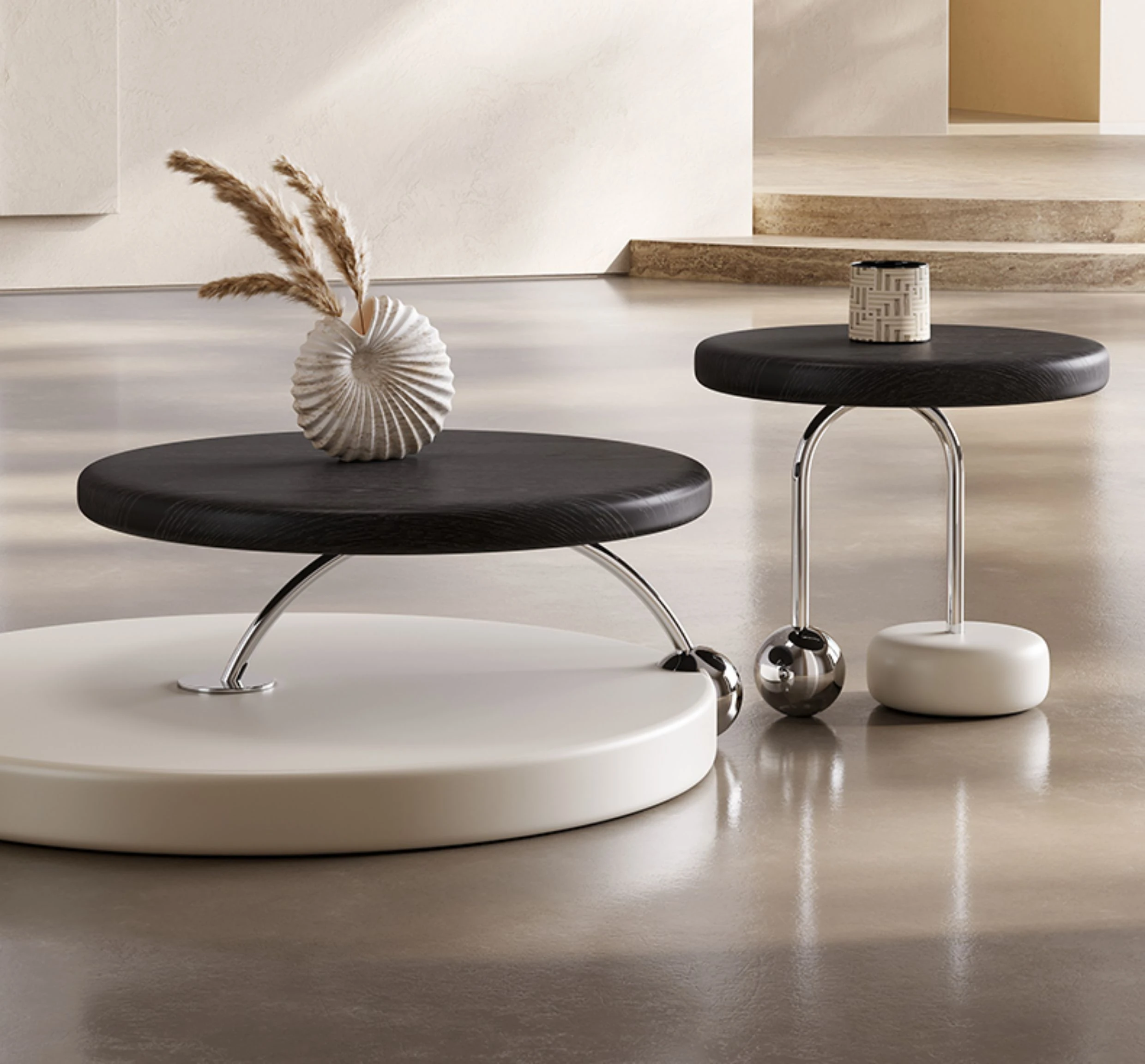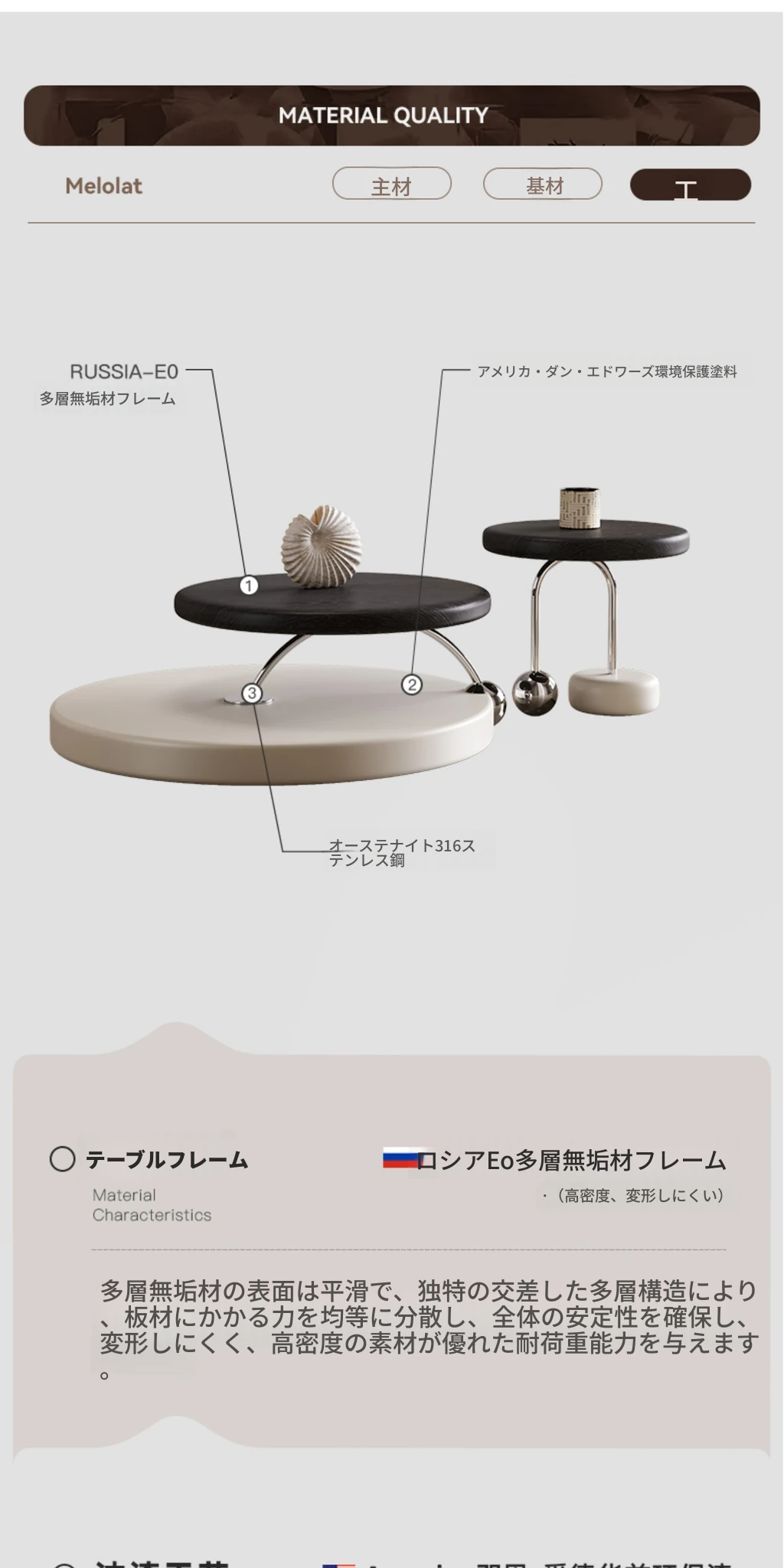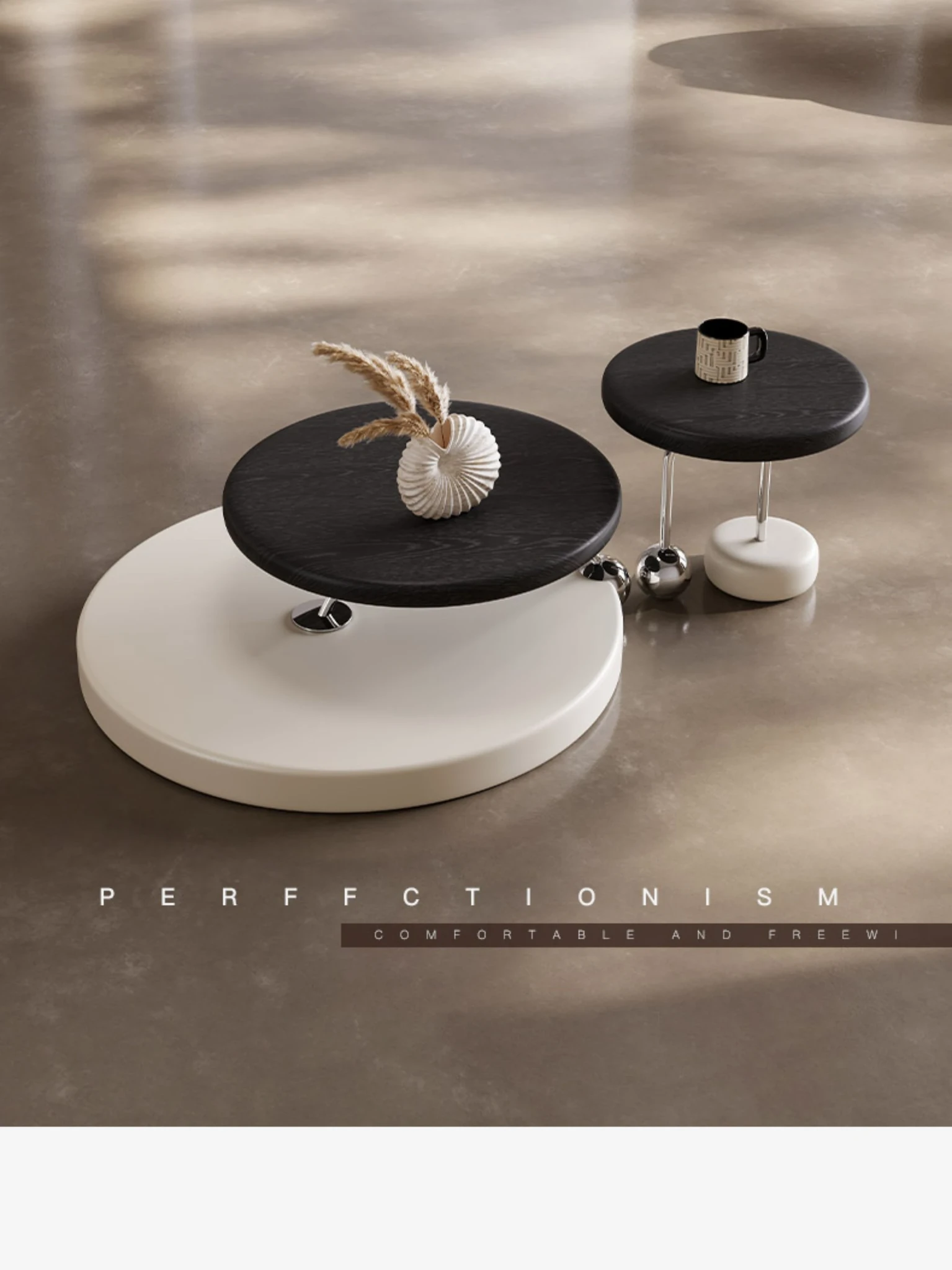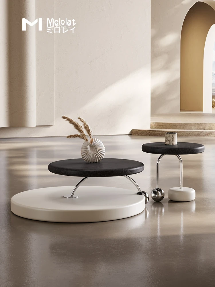 Melolatオリジナル発表!イタリアンミニマルデザインのコーヒーテーブルセット - 高級感溢れるクリームカラー、小さなリビングルームにぴったり。あなたの空間を洗練されたスタイルで彩ります!