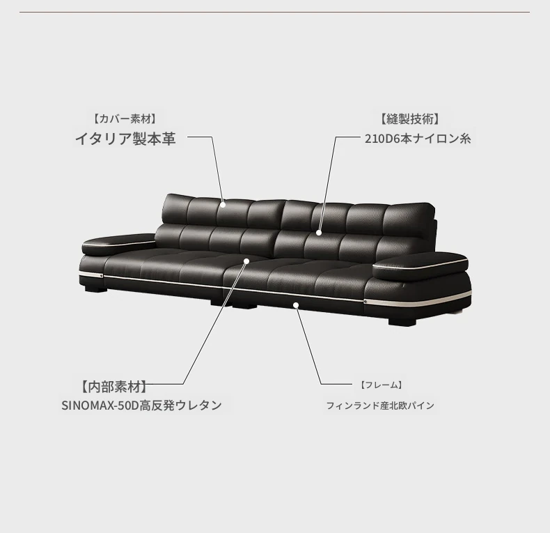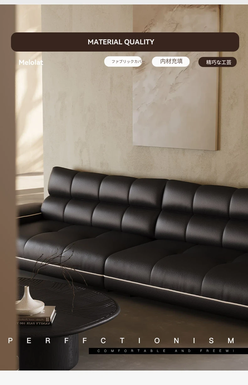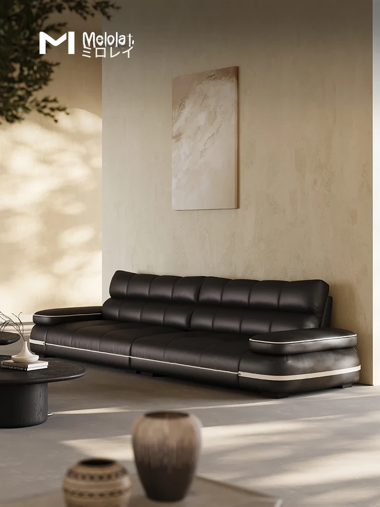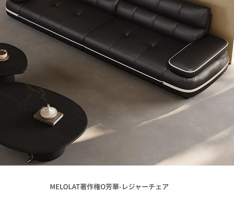 メロラットオリジナル発表!高級本革使用、贅沢なフラットデザインのイタリアンソファ。広々としたヴィラにぴったりの頭层牛皮製、スタイリッシュで快適な空間を演出します。