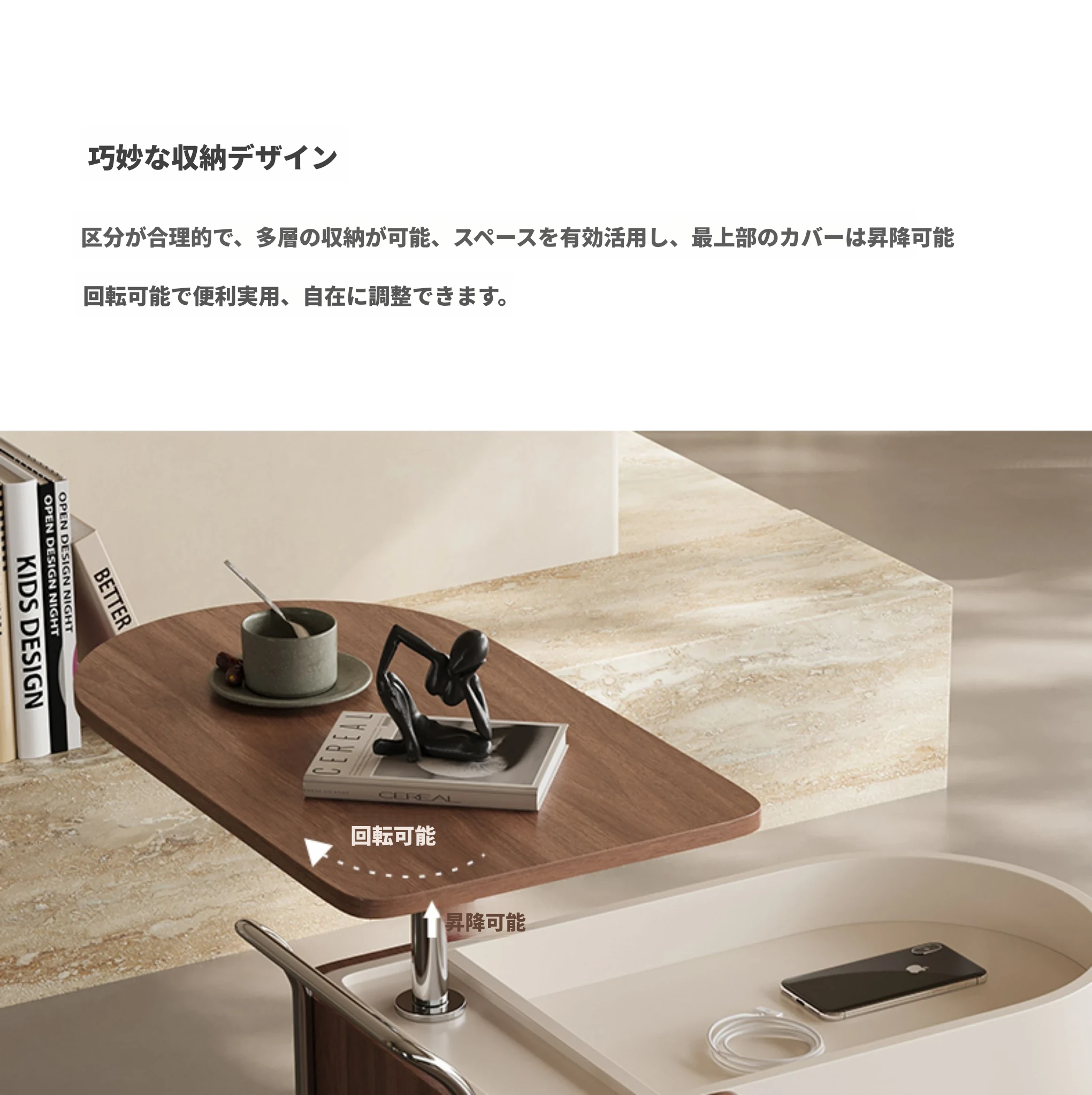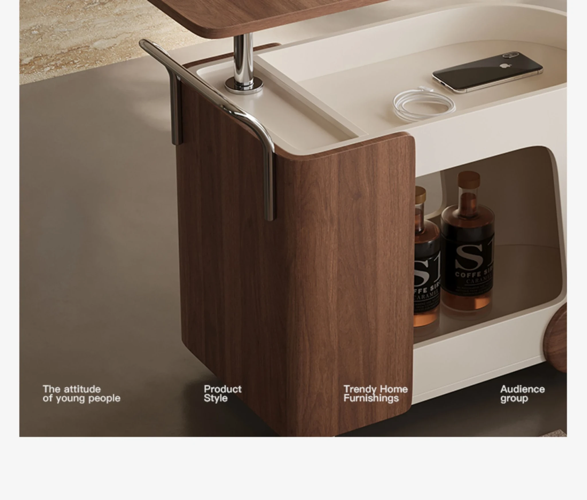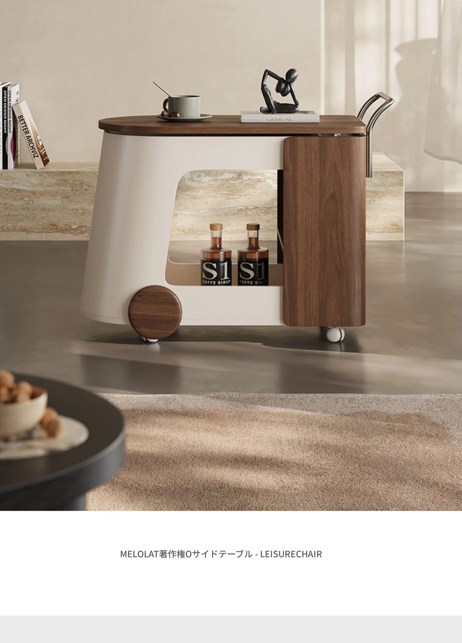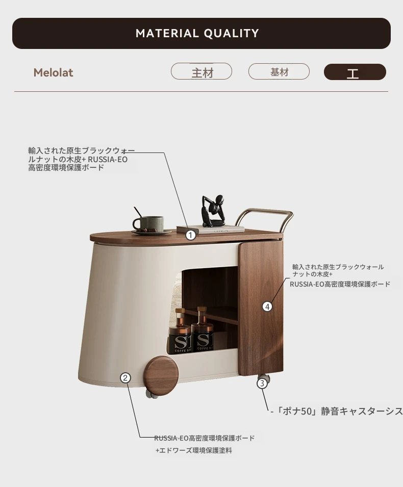 Melolat新作!特許取得のイタリアンスタイル・ミニキャリーサイドテーブル。ウォールナット仕上げのクリエイティブデザインで、移動も簡単な収納ラック!おしゃれなインテリアにぴったり!