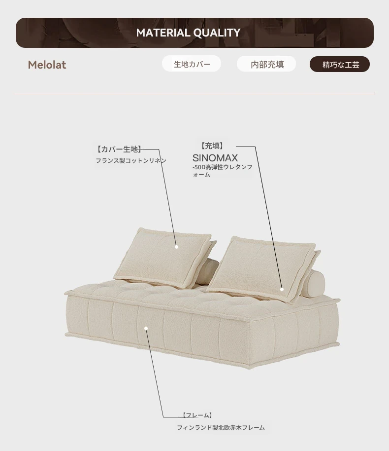 メロラット ピエモンテ 豆腐ブロック 布製ソファ 北欧スタイル 榻榻米 日本式 トーストモジュールコンビネーション - おしゃれで機能的なデザインで、リラックスしたひとときを提供します!
