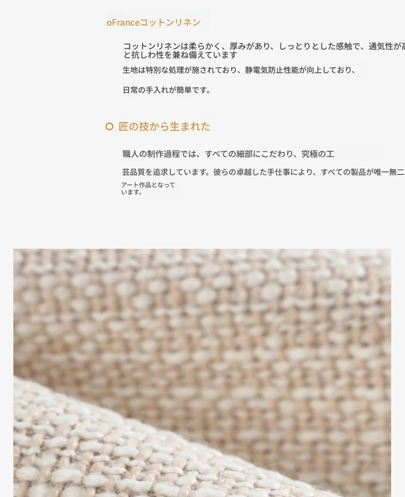 【フランス輸入の天然コットンリネン+輸入のダウンクッション+50D高反発スポンジ/厚手・広幅の赤松無垢フレーム】