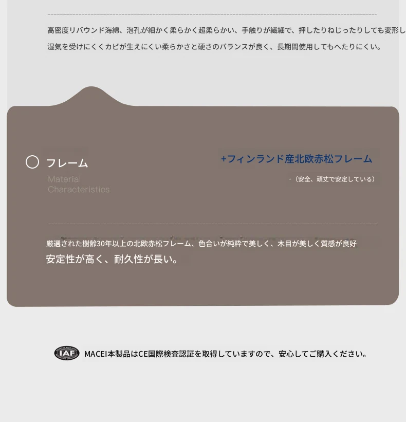【フランス輸入の猫爪布+輸入のダウンクッション+50D高反発スポンジ/厚手・広幅の赤松無垢フレーム】