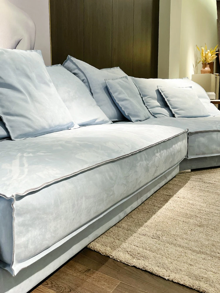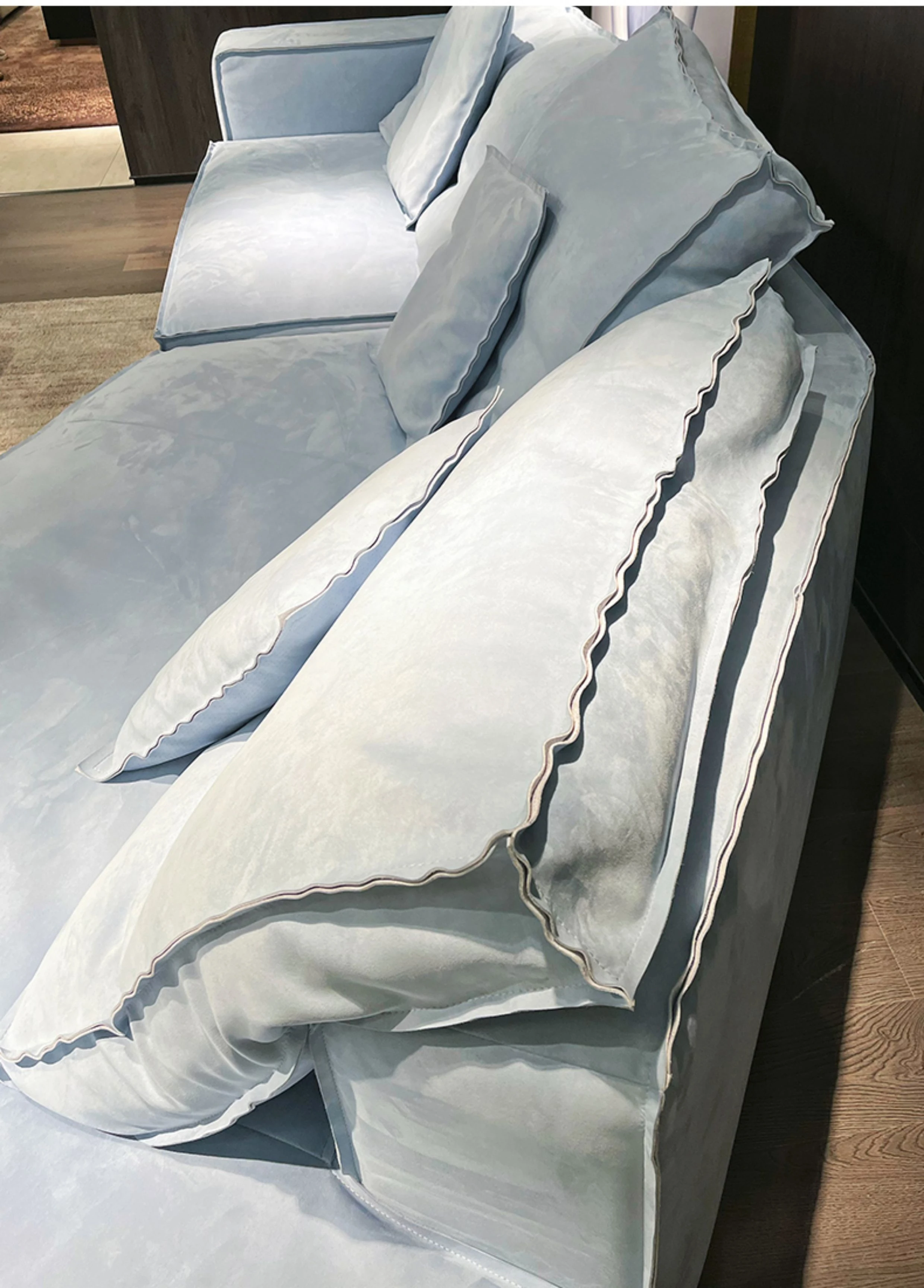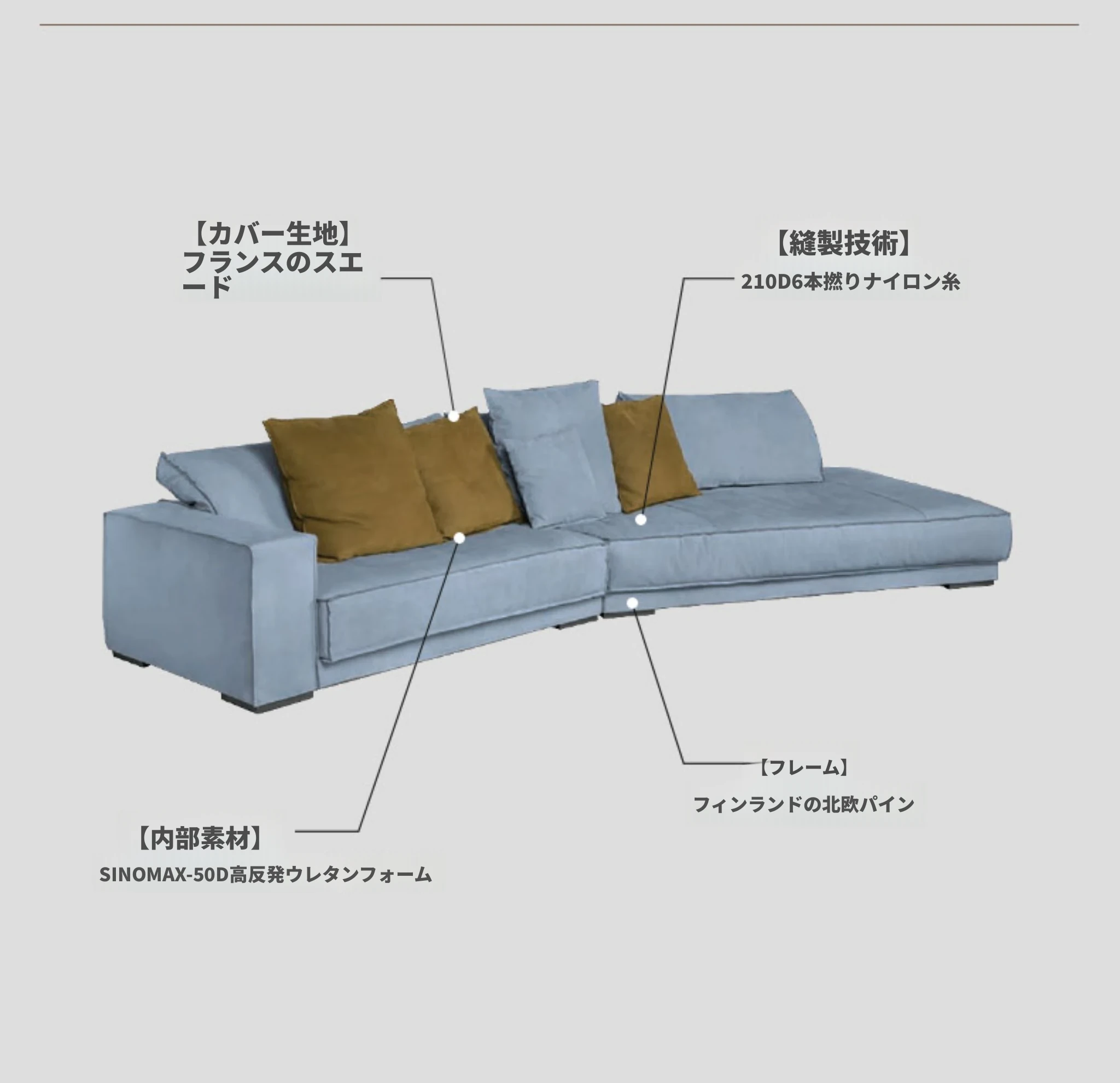 【フランス輸入のダブルサンディングファブリック+50D高反発スポンジ+オリジナル漏れ辺加工】