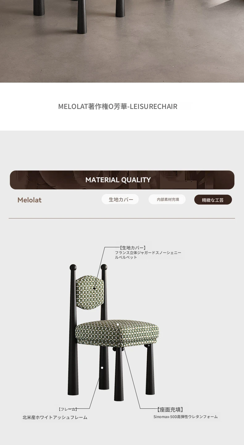 【少量現貨】【2脚】オアシスミッドナイト【フランス立体ジャガードシェニール生地+北米原生ホワイトアッシュフレーム】アートダイニングチェア