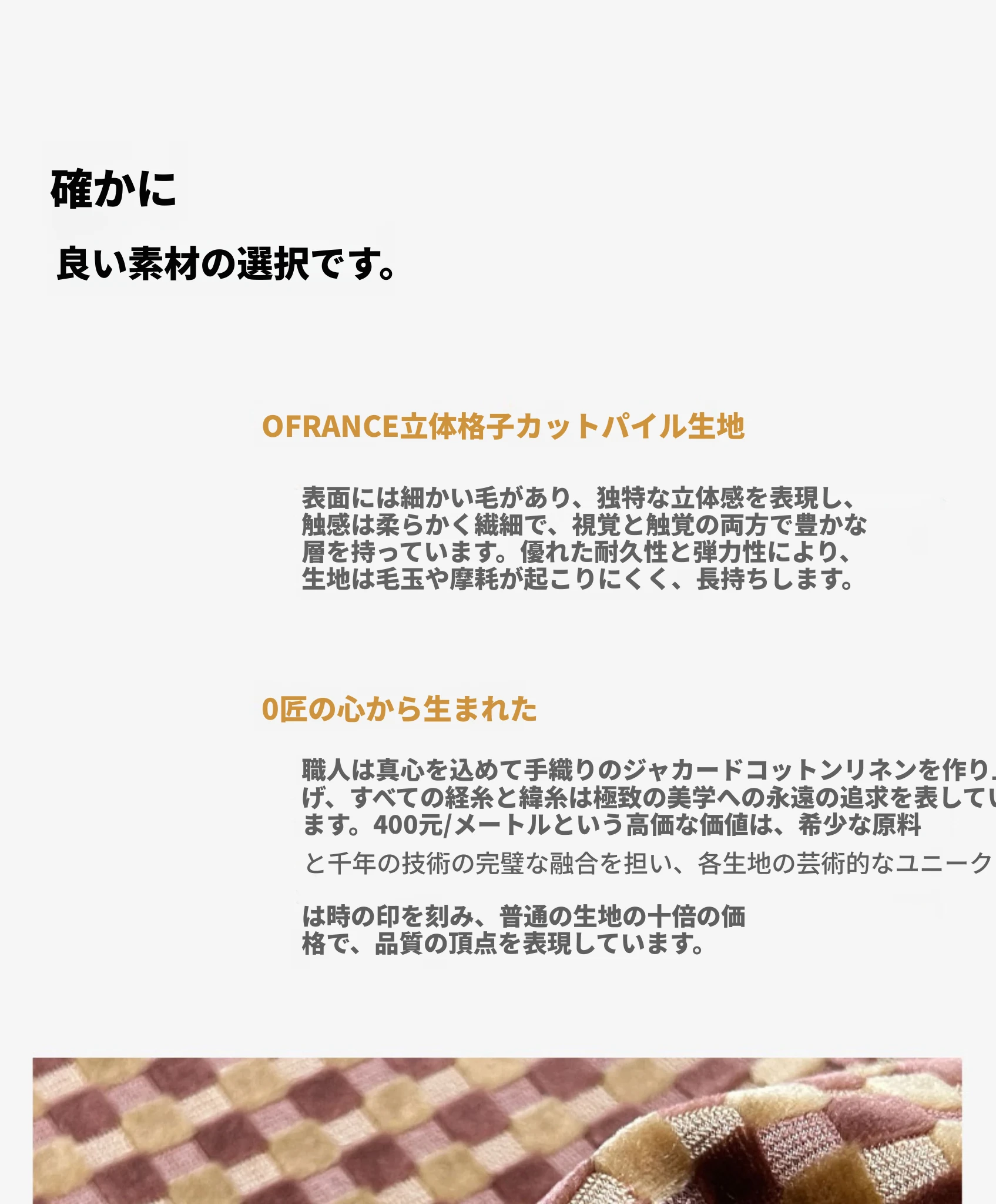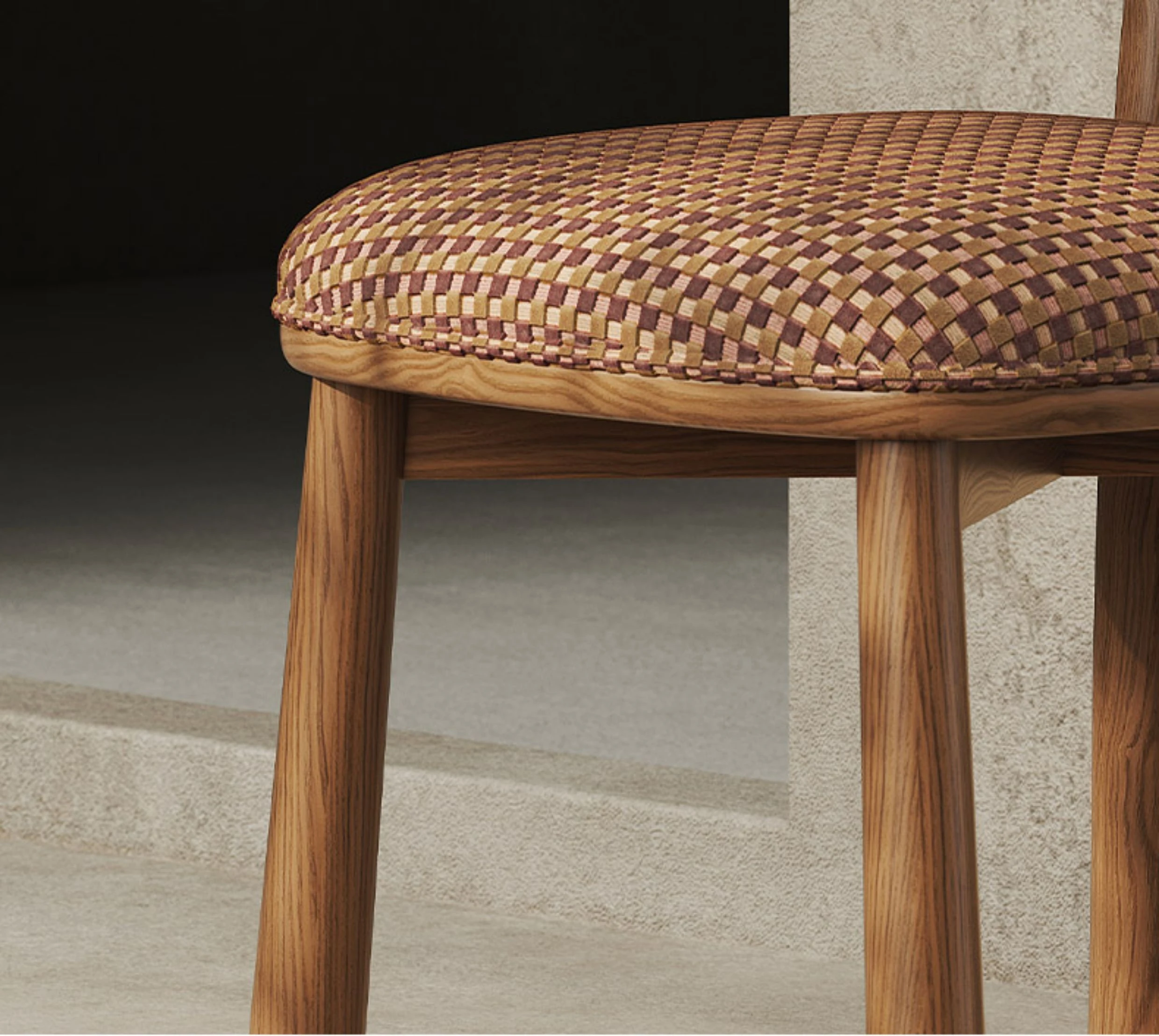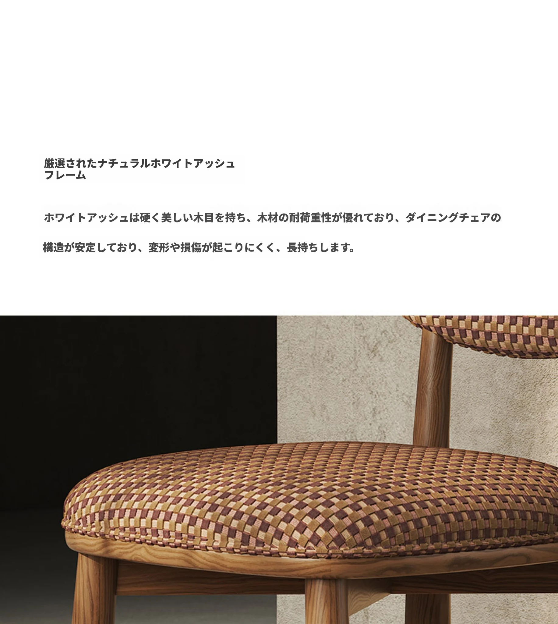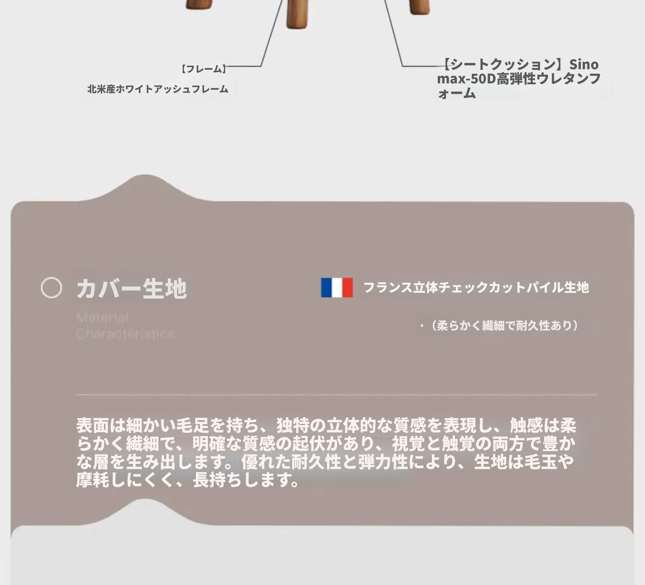 【2脚】キャラメルチェッカー【フランス立体格子カットフロック生地+北米原生ホワイトアッシュフレーム】アートダイニングチェア
