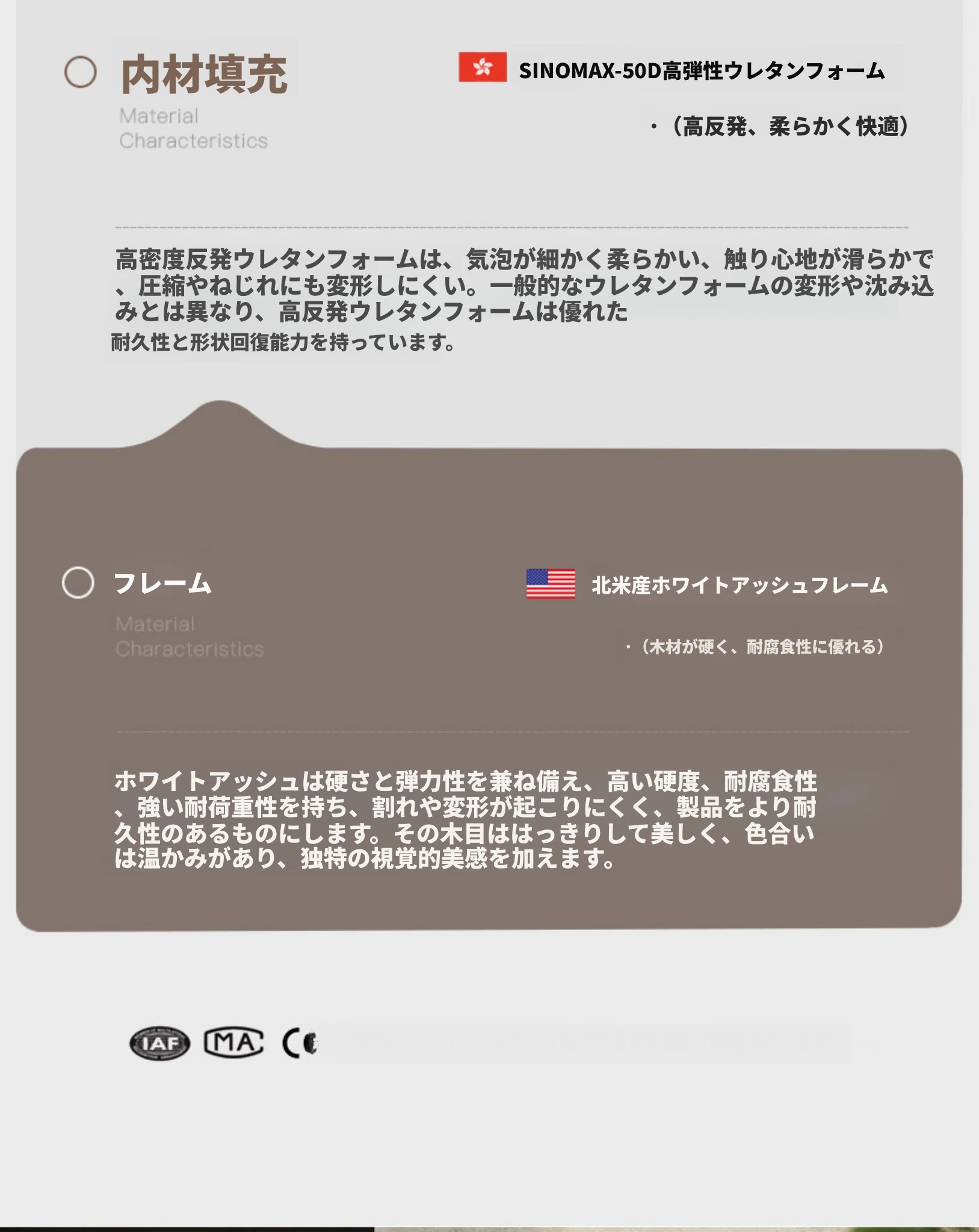 【2脚】雲月山米【フランス天然コットンリネン+北米原生ホワイトアッシュフレーム】アートダイニングチェア