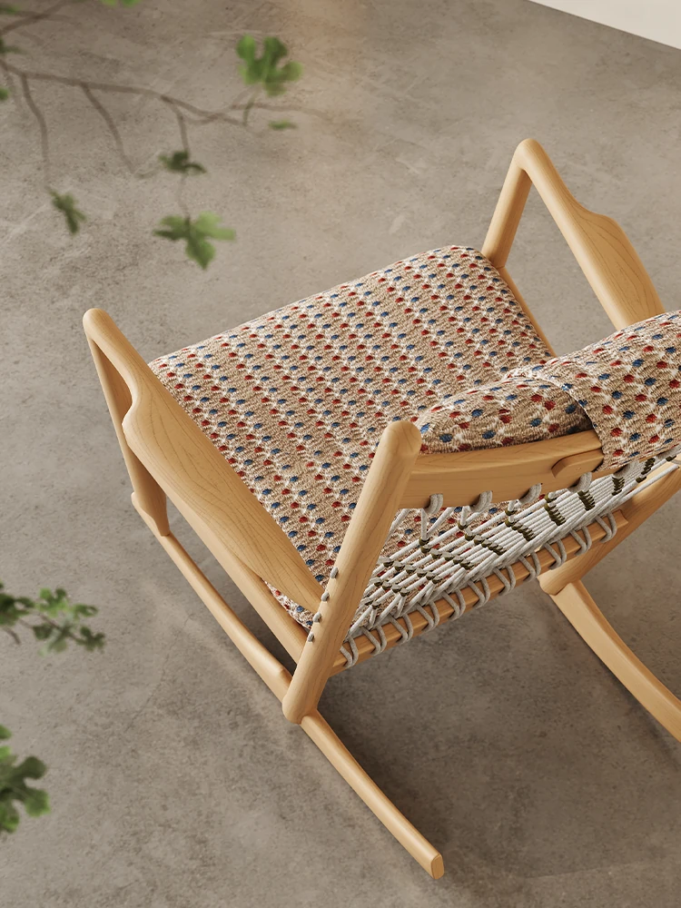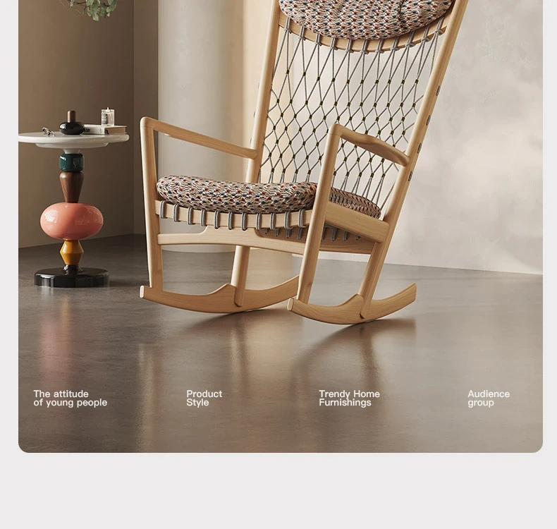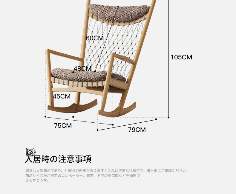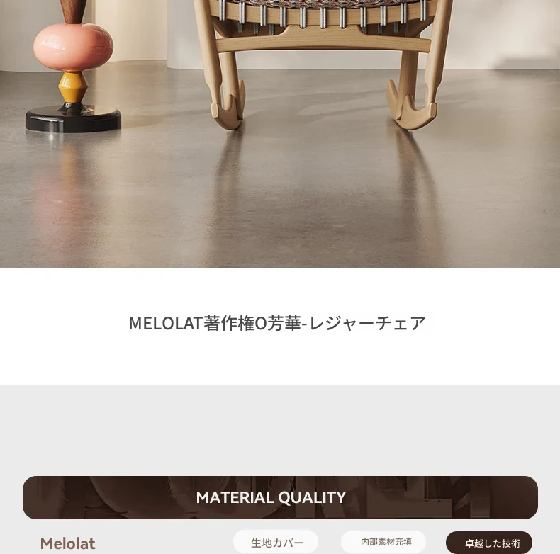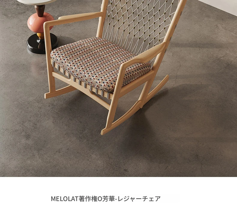メロラット天然木製ロッキングチェア|北欧スタイルの一人掛けソファ|お昼寝やリラックスに最適!おしゃれなリビングにぴったりな家庭用ラウンジチェア