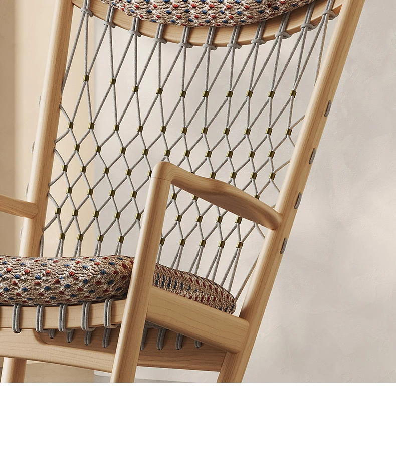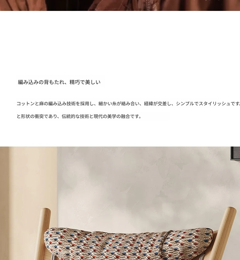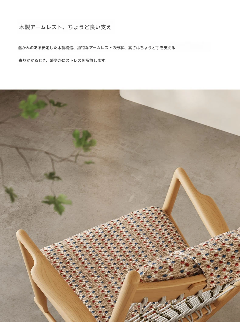 赤青編みコットン【フランス輸入ニットコットンリネン+北米輸入原生ホワイトアッシュ】 アートロッキングチェア