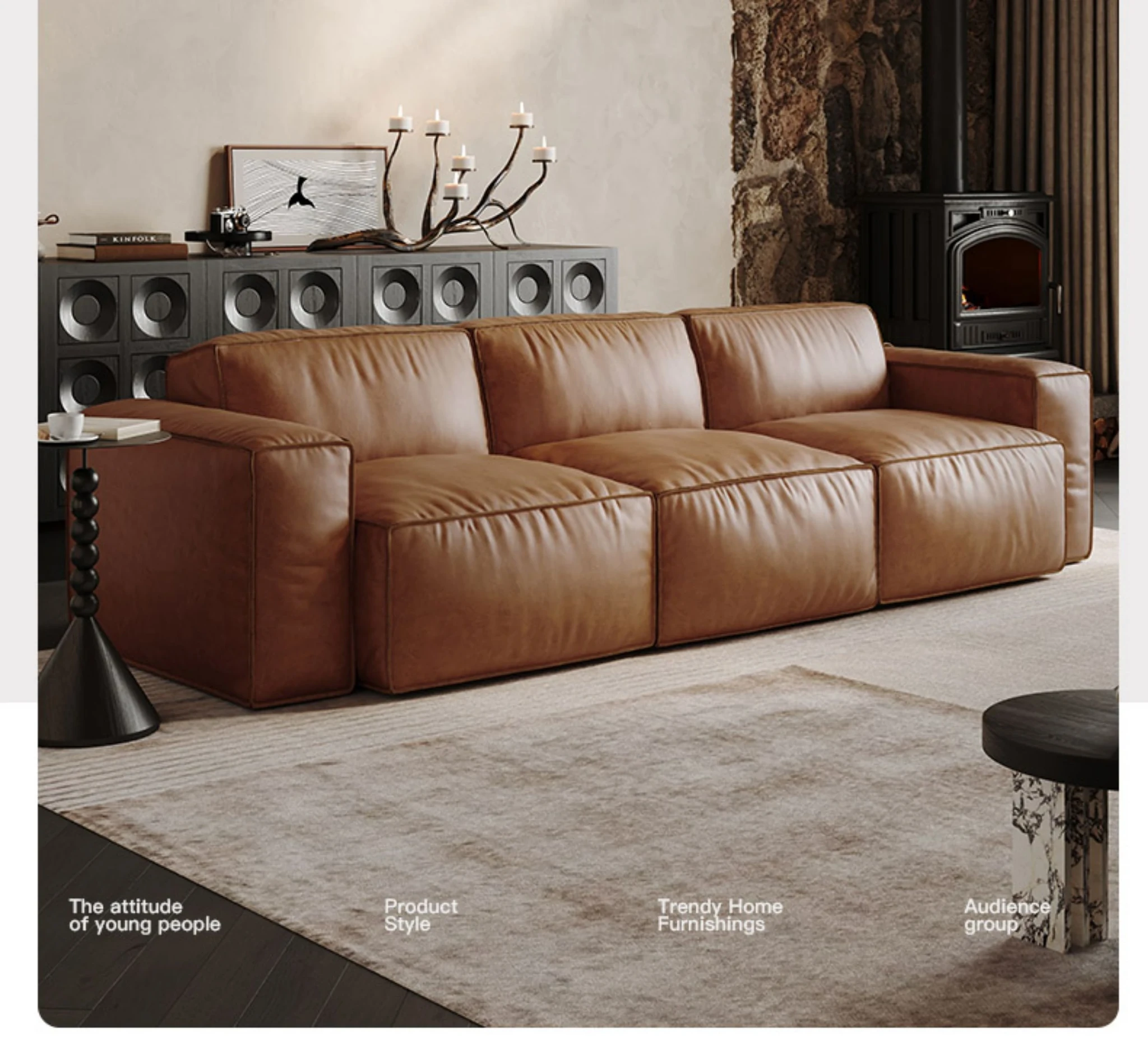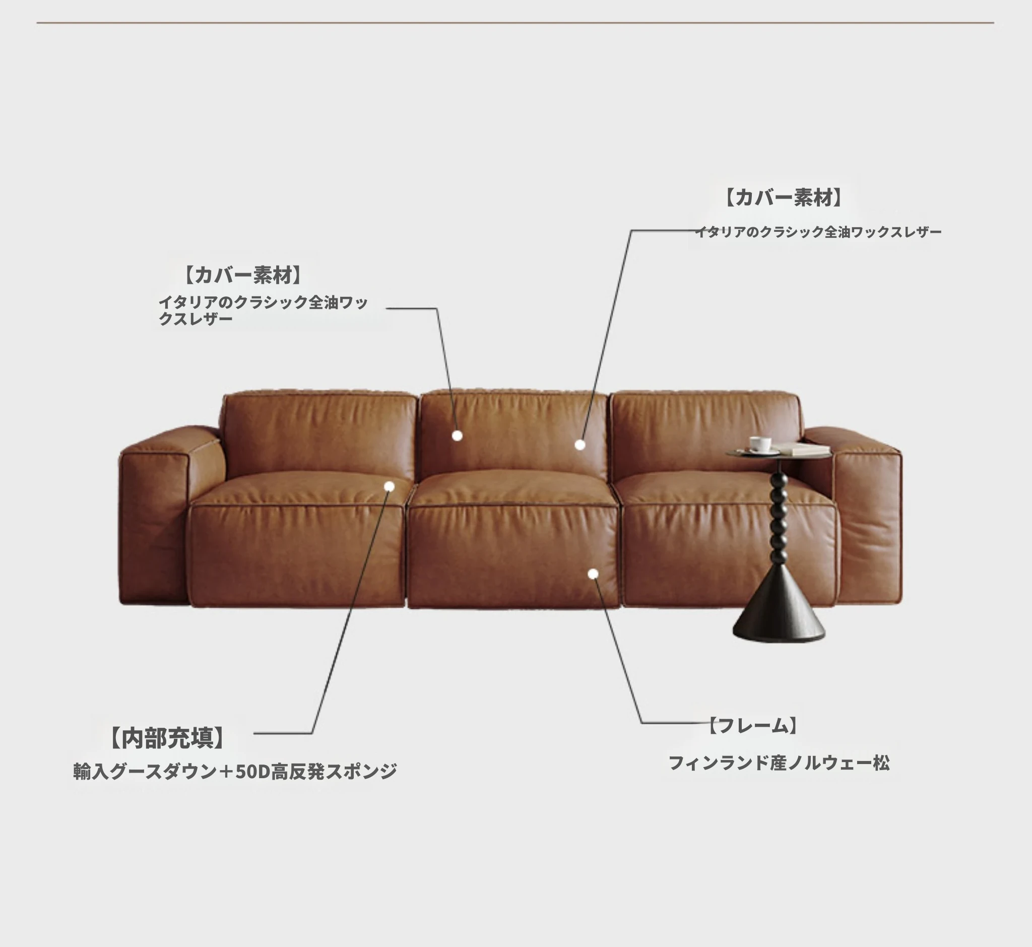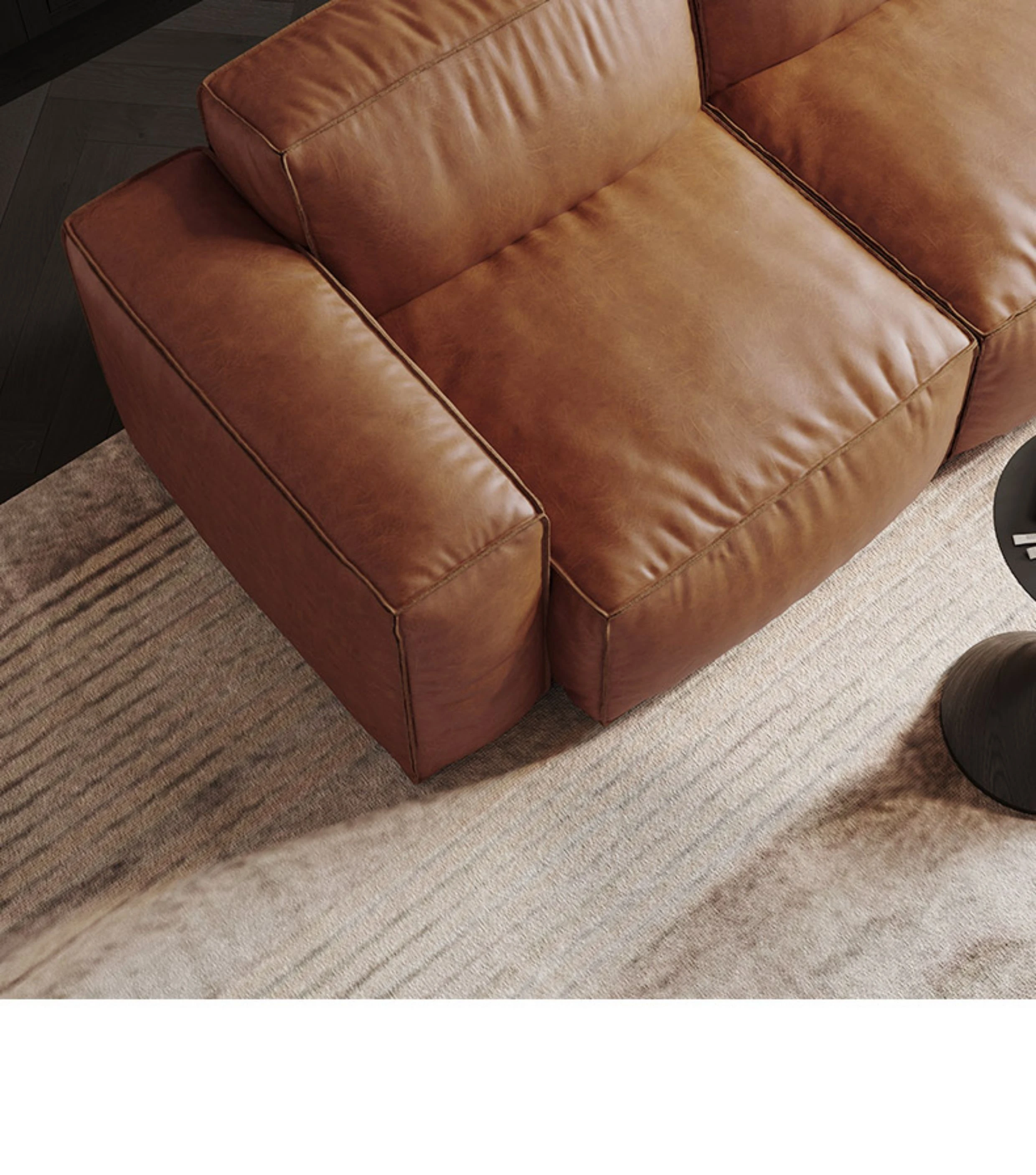 メロラット豆腐ブロックオイルワックスレザーソファー - 北欧スタイルの本革リビングルーム用直線ソファー、シンプルでスタイリッシュなソファーセット!快適な座り心地と洗練されたデザインで、あなたの空間を引き立てます。
