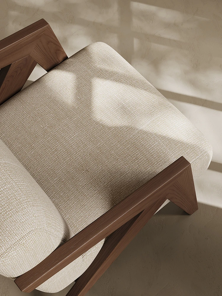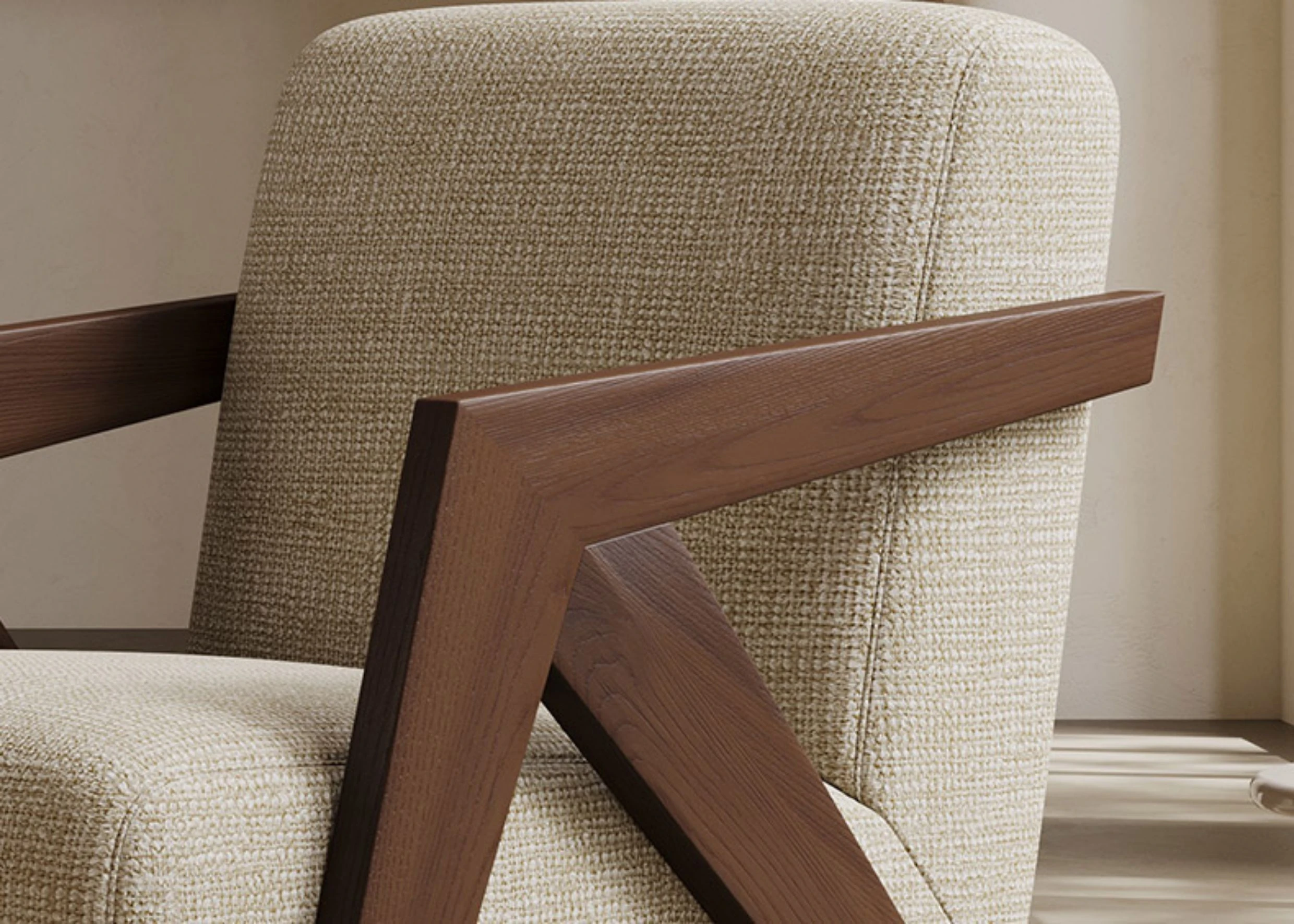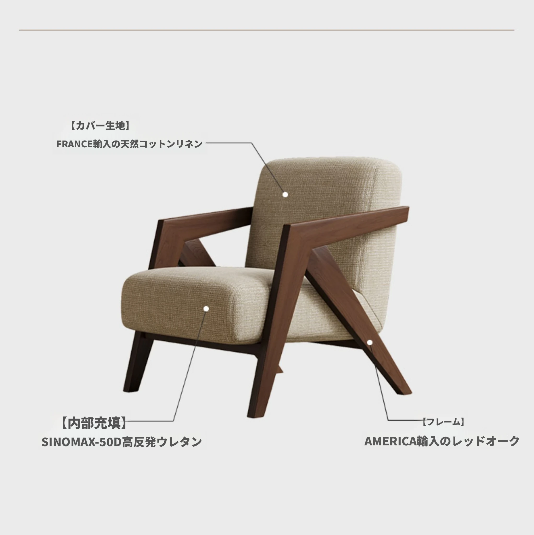 【少量在庫】キャラメルブラウン【フランス輸入3D星空コットンリネン+アメリカ輸入レッドオーク】単椅子