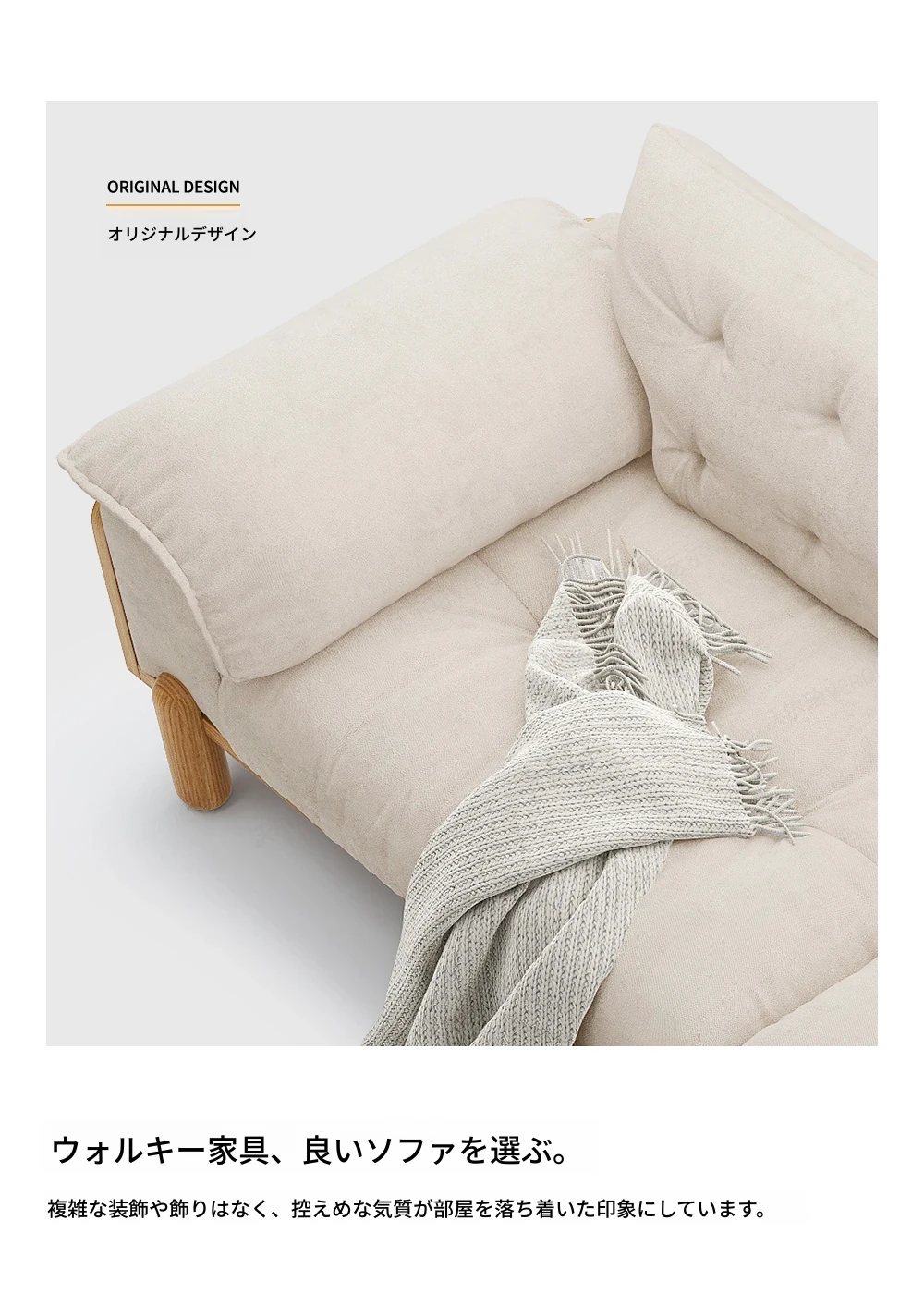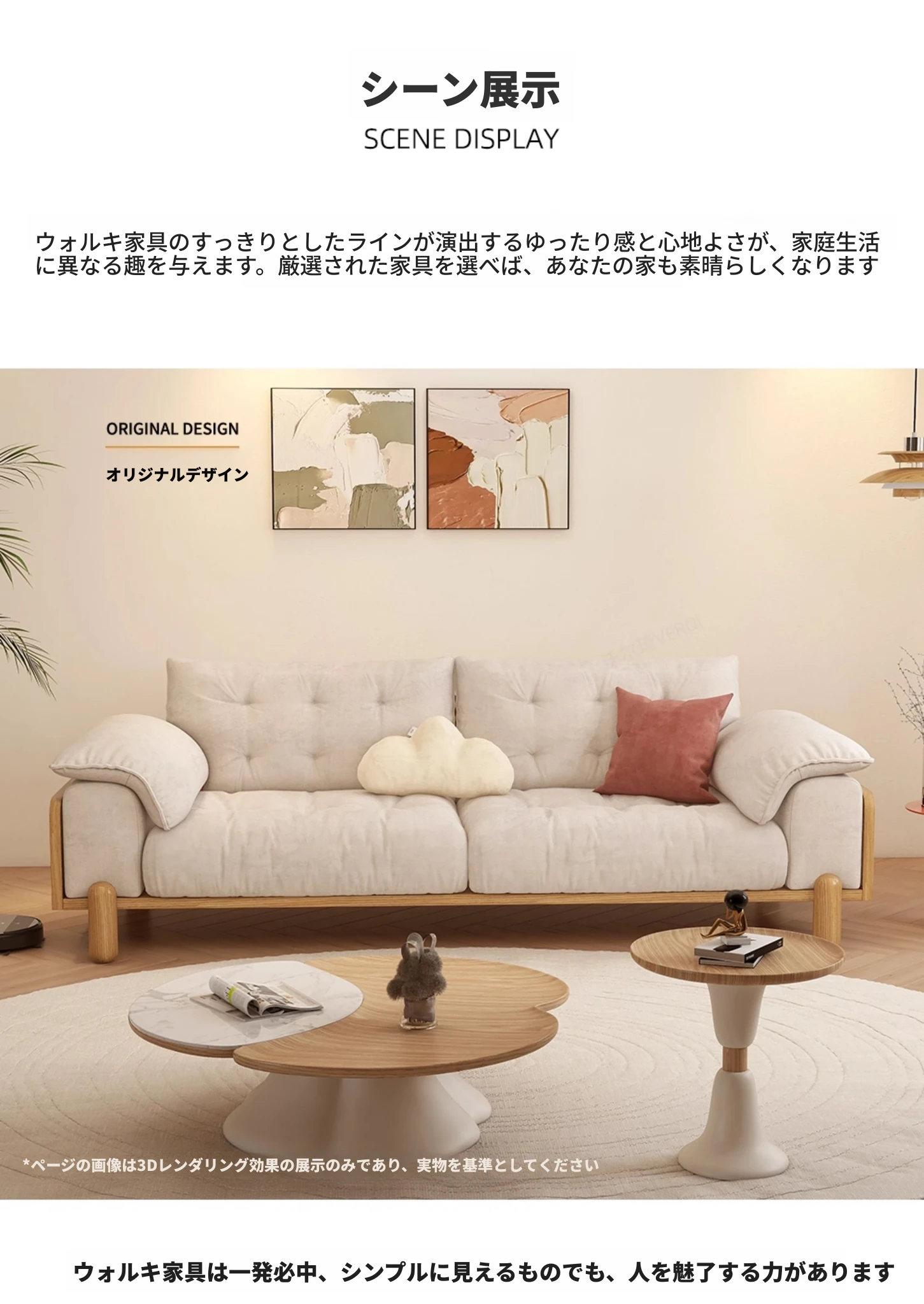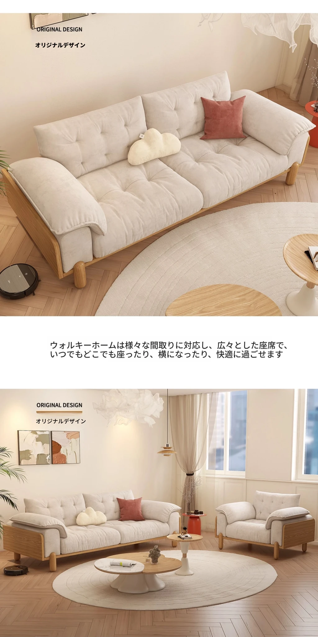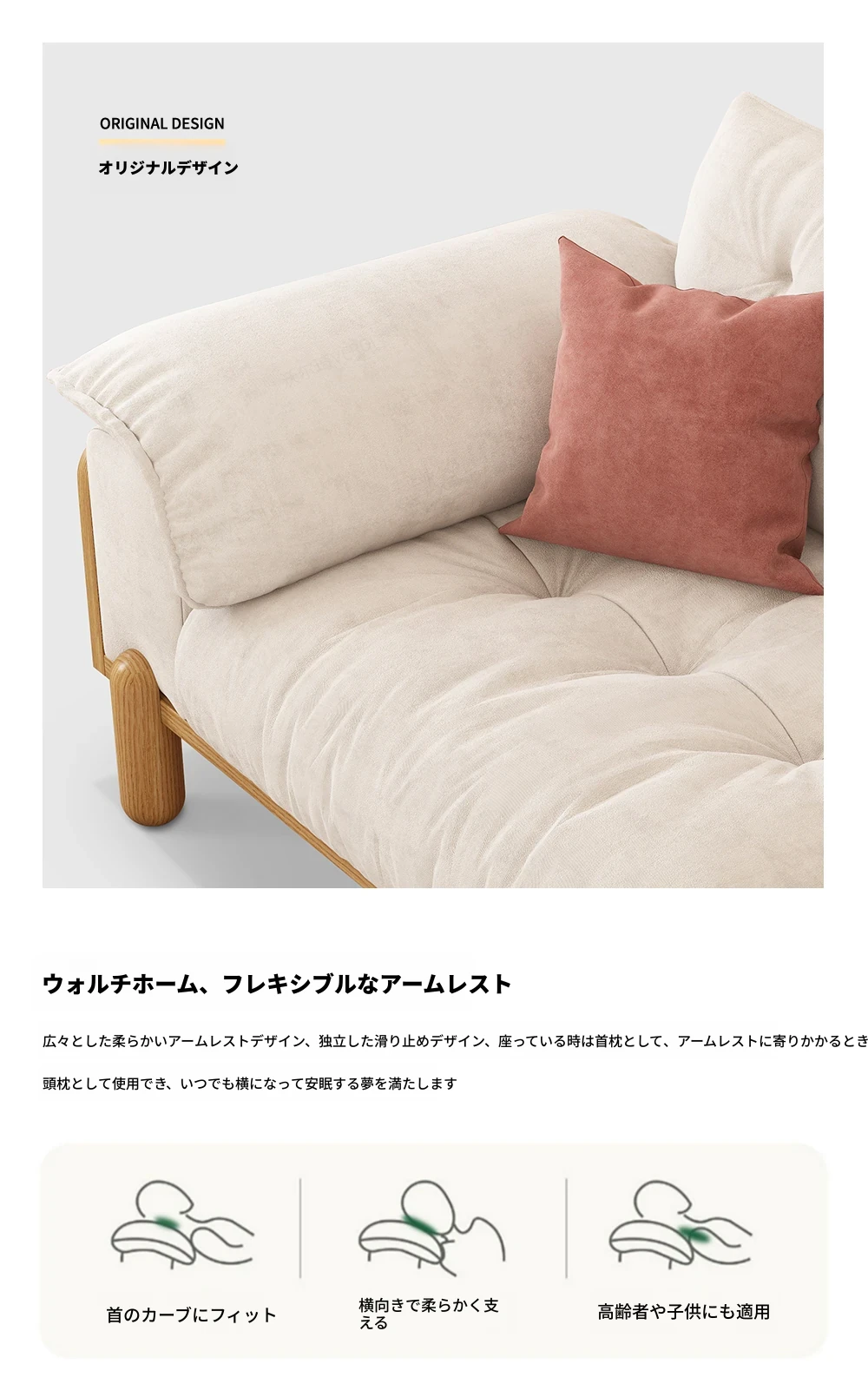 フワフワ雲のようなクリーミーな木目調ソファ|小スペースにぴったりなモダンミニマリストデザイン|和風リビングに最適な北欧スタイルの大象耳ソファで、居心地良い空間を演出!