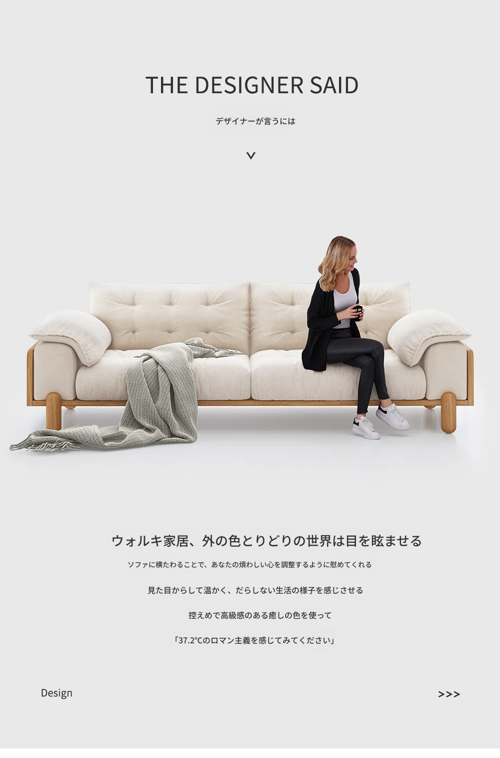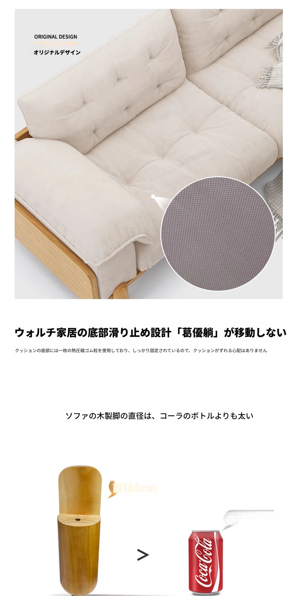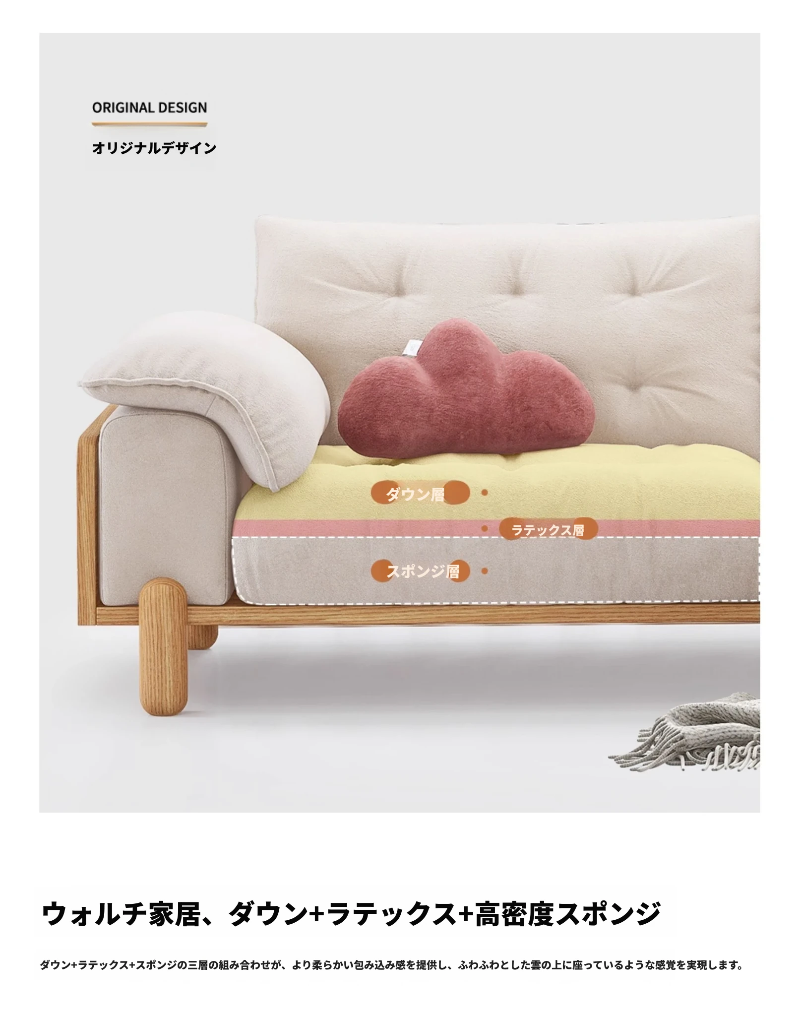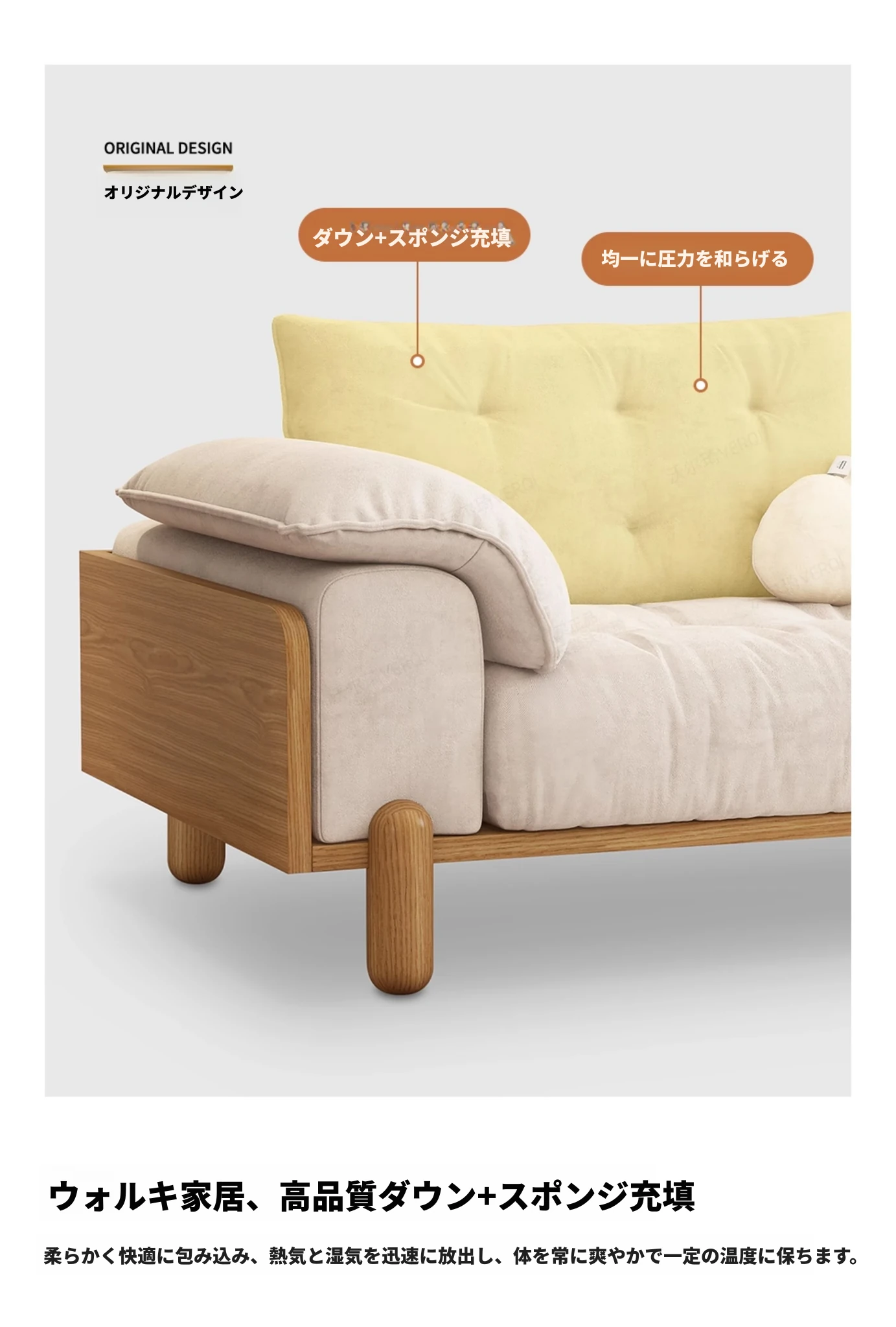 フワフワ雲のようなクリーミーな木目調ソファ|小スペースにぴったりなモダンミニマリストデザイン|和風リビングに最適な北欧スタイルの大象耳ソファで、居心地良い空間を演出!
