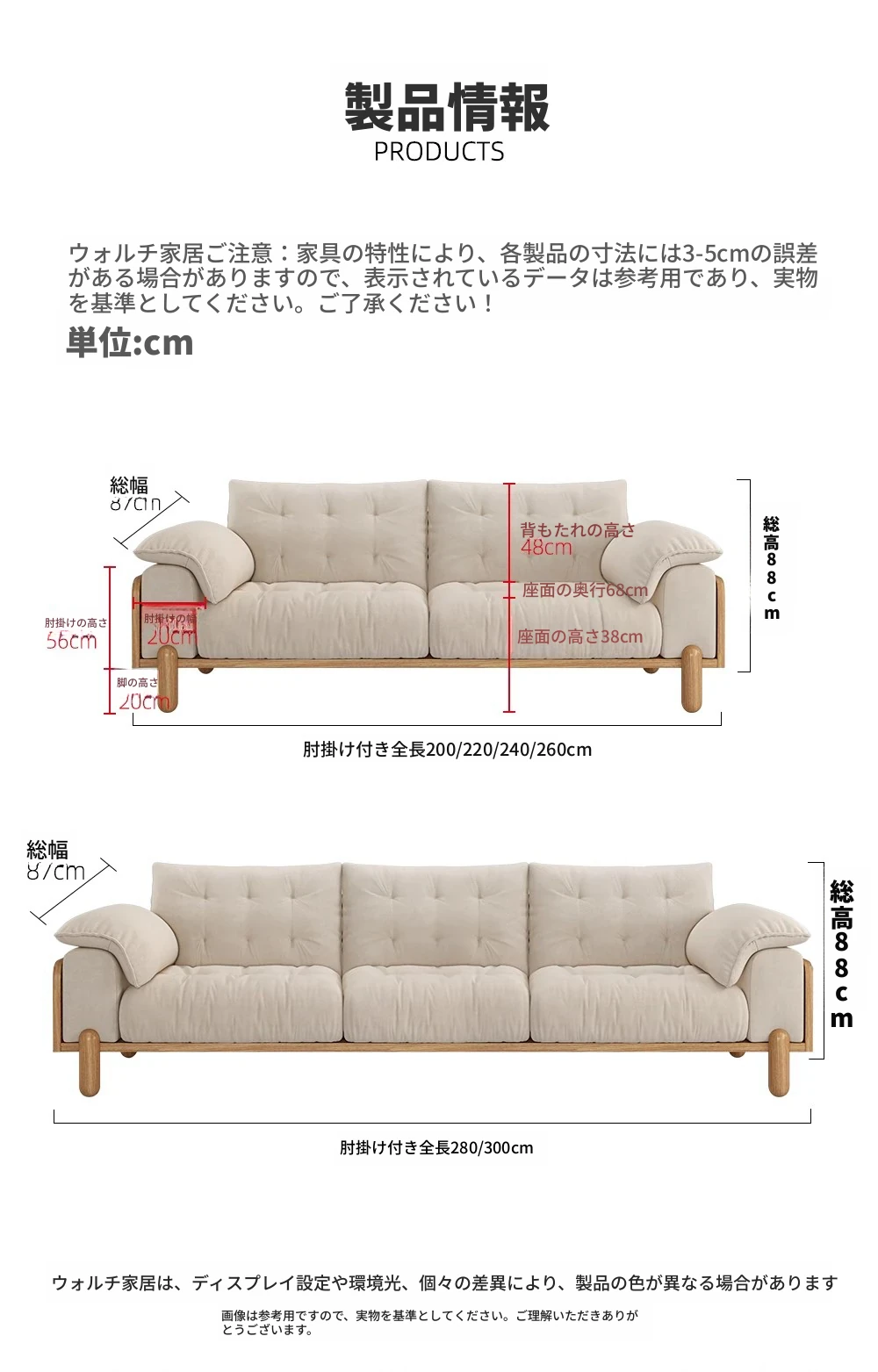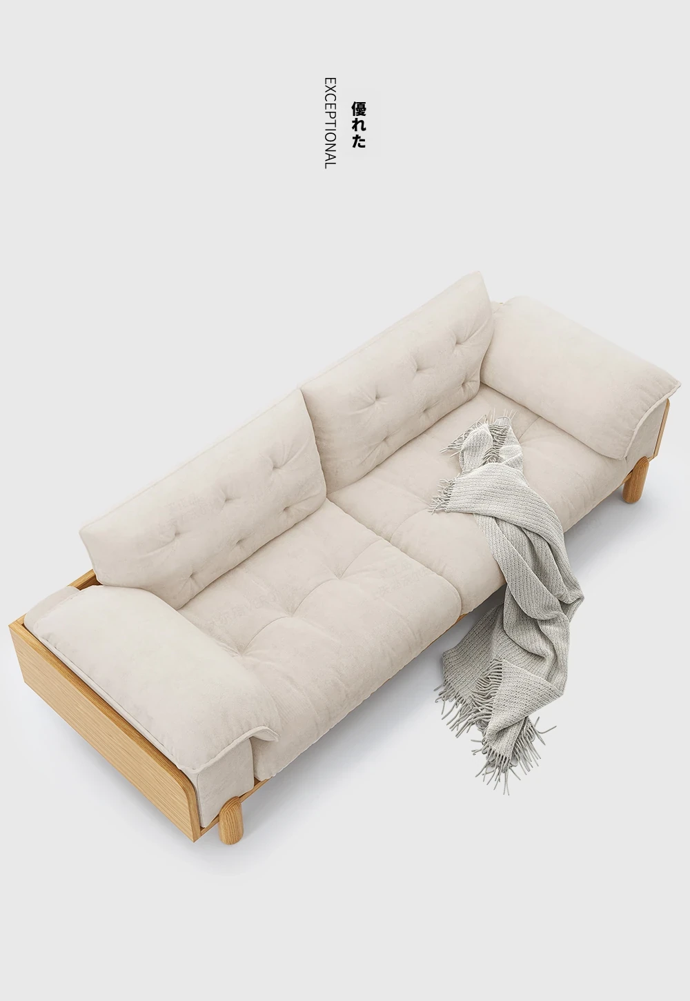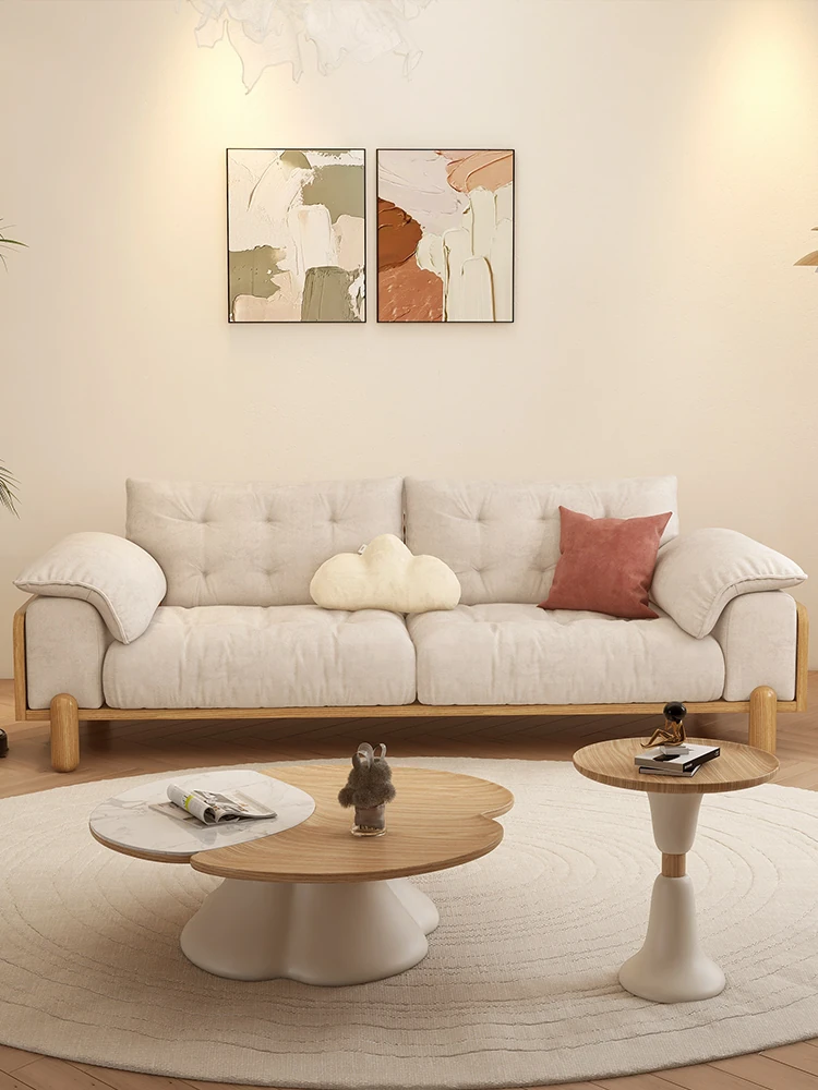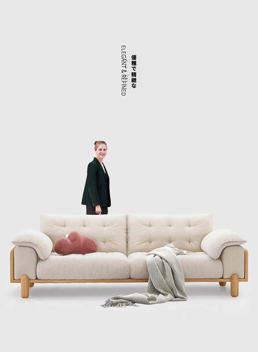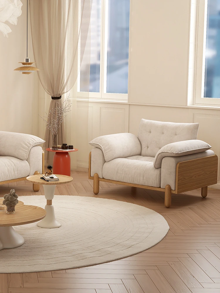 フワフワ雲のようなクリーミーな木目調ソファ|小スペースにぴったりなモダンミニマリストデザイン|和風リビングに最適な北欧スタイルの大象耳ソファで、居心地良い空間を演出!