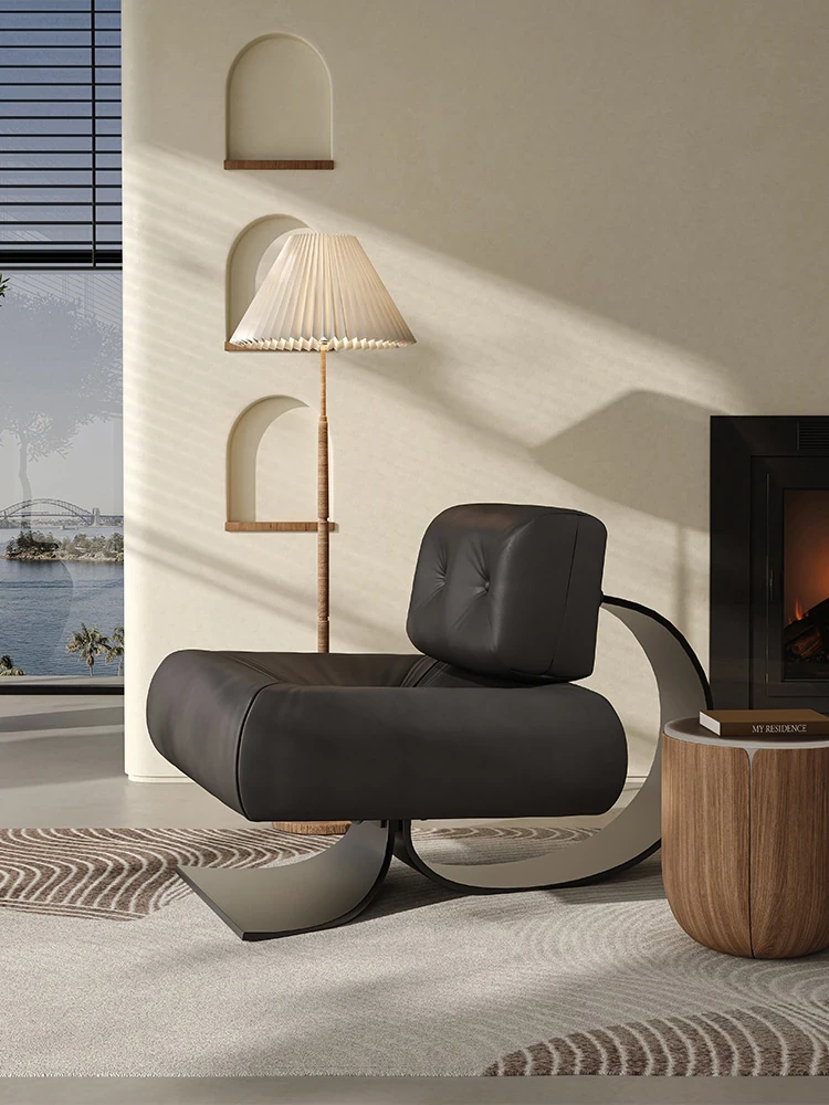 現代的シンプルアート異形メタルフィッシュテールカジュアルチェア|スペードKホテル・別荘用リビングルームの一人掛けソファ|スタイリッシュで快適なインテリアのアクセントに最適!