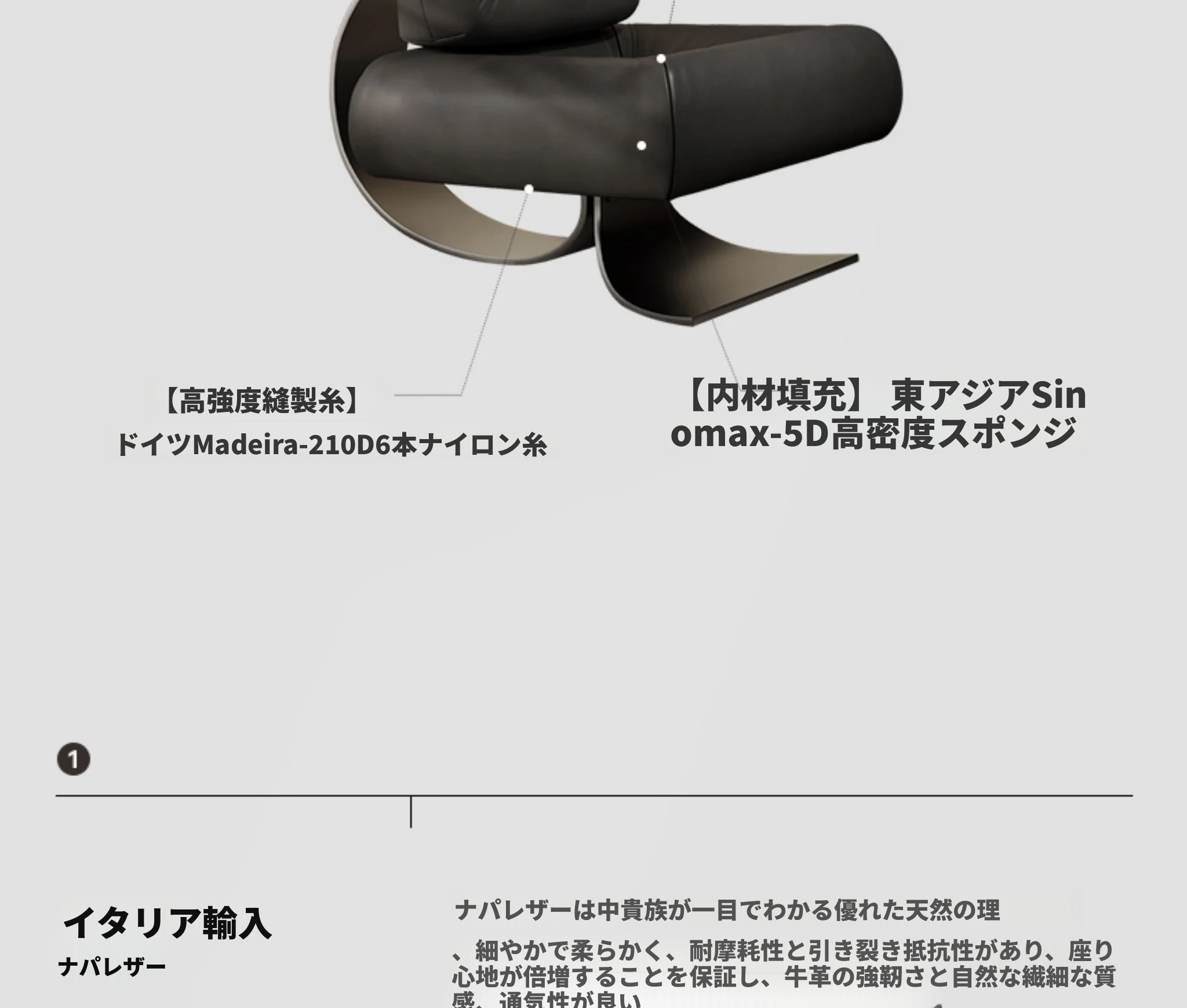アルタチェア【イタリアンナパレザー】[ブラック]84*119*79cm