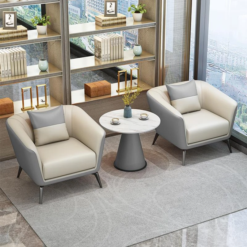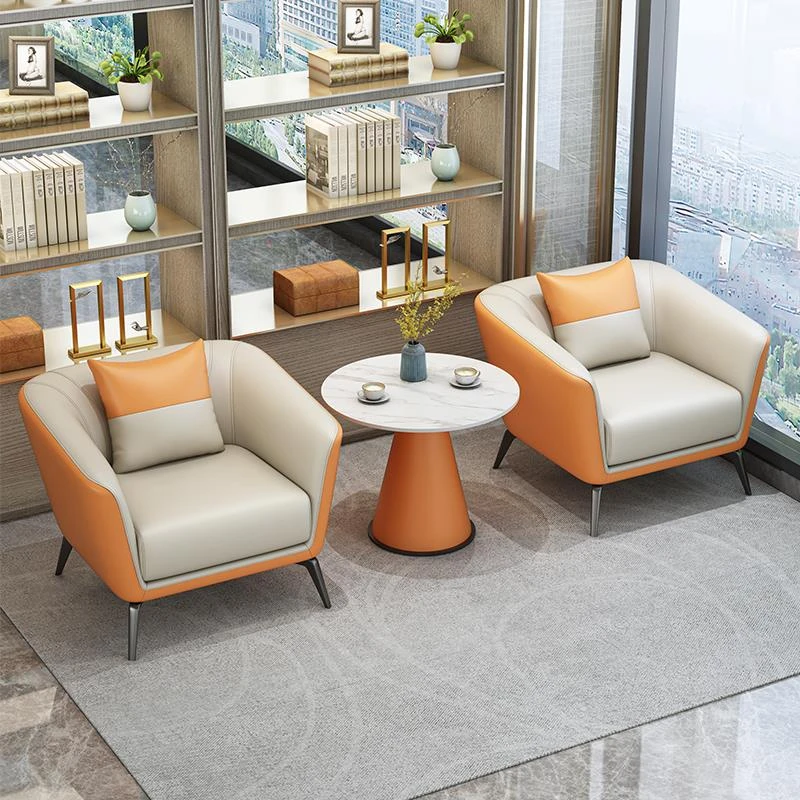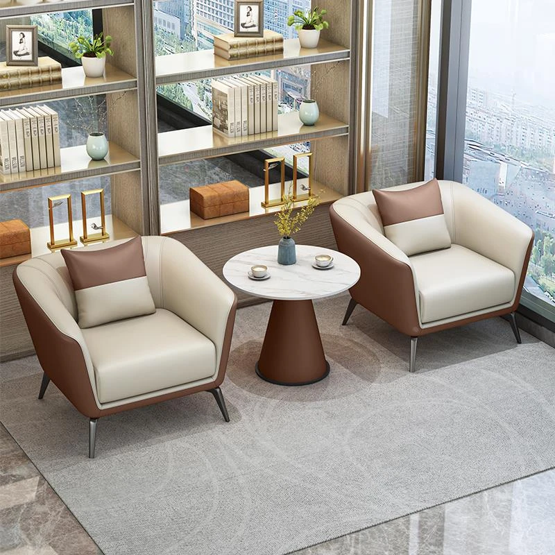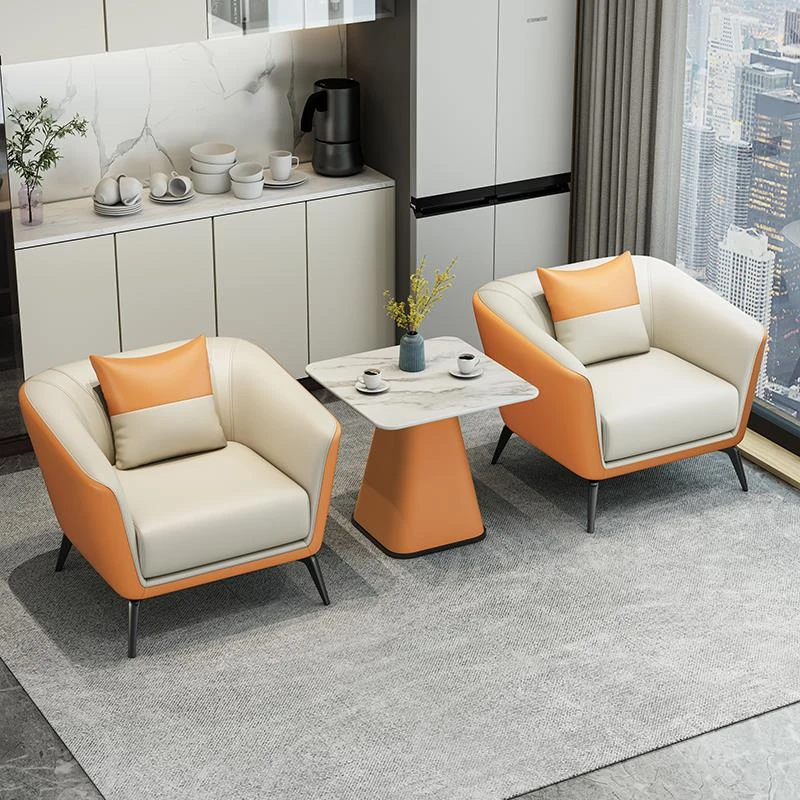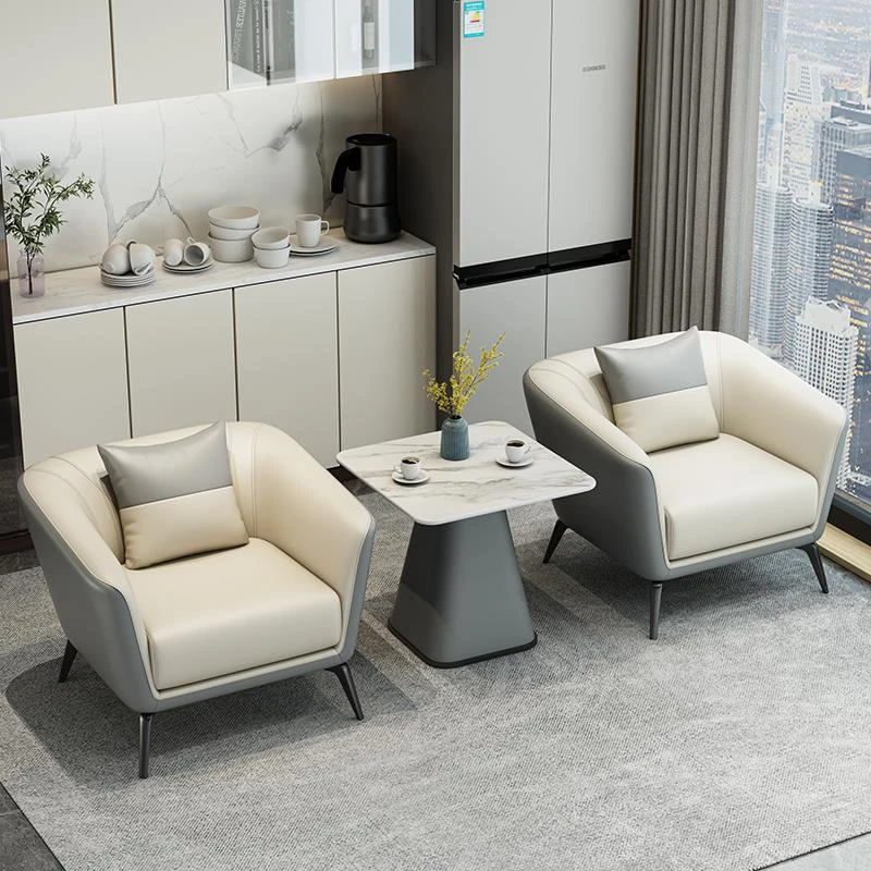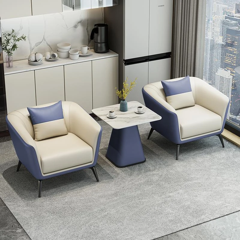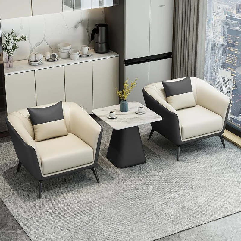モダンシンプルな接客スペースに最適!ホテルロビーやビジネス休憩エリアにぴったりな一人掛けソファとテーブルセット。快適なひとときを提供するおしゃれなデザインです。