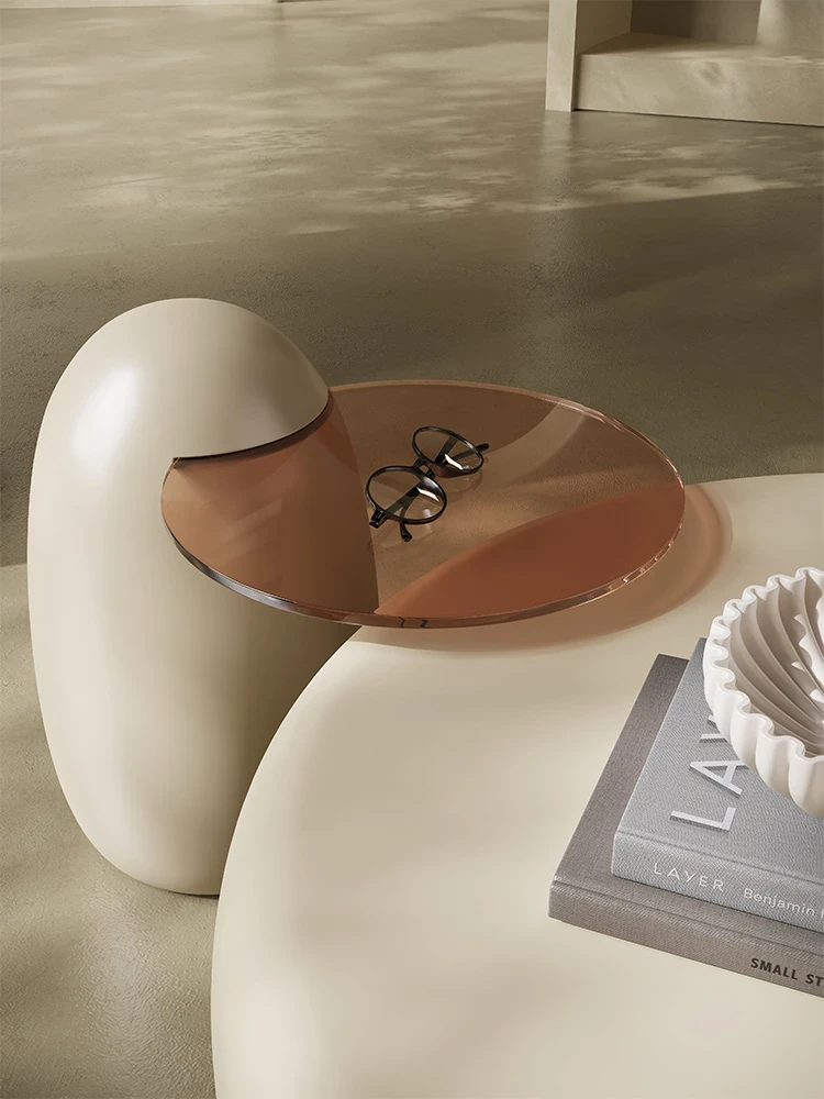 猫爪デザインのリビング用コーヒーテーブル|軽やかな高級感とモダンなシンプルさ|小型スペースにもぴったりな円形ガラステーブル|環境に優しい輸入塗料使用