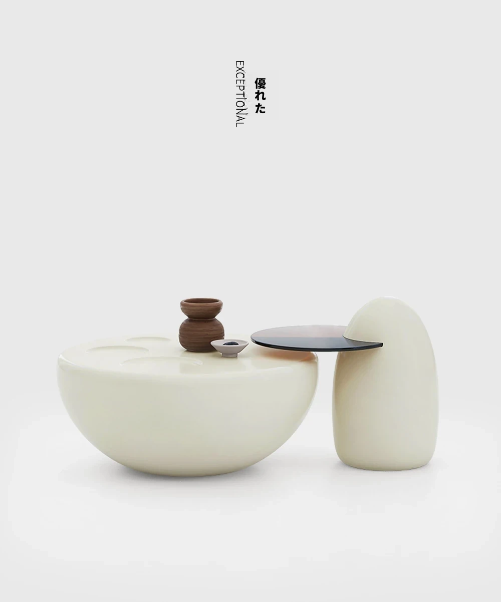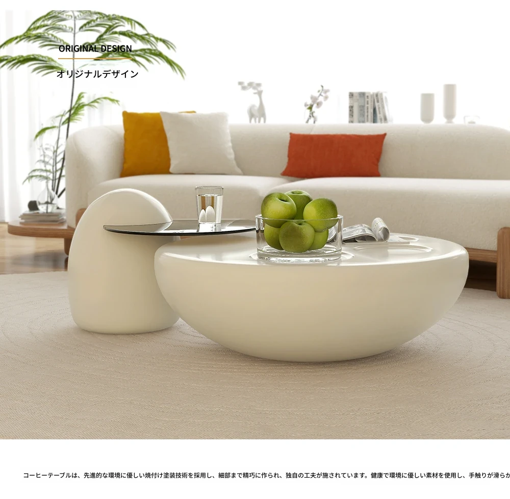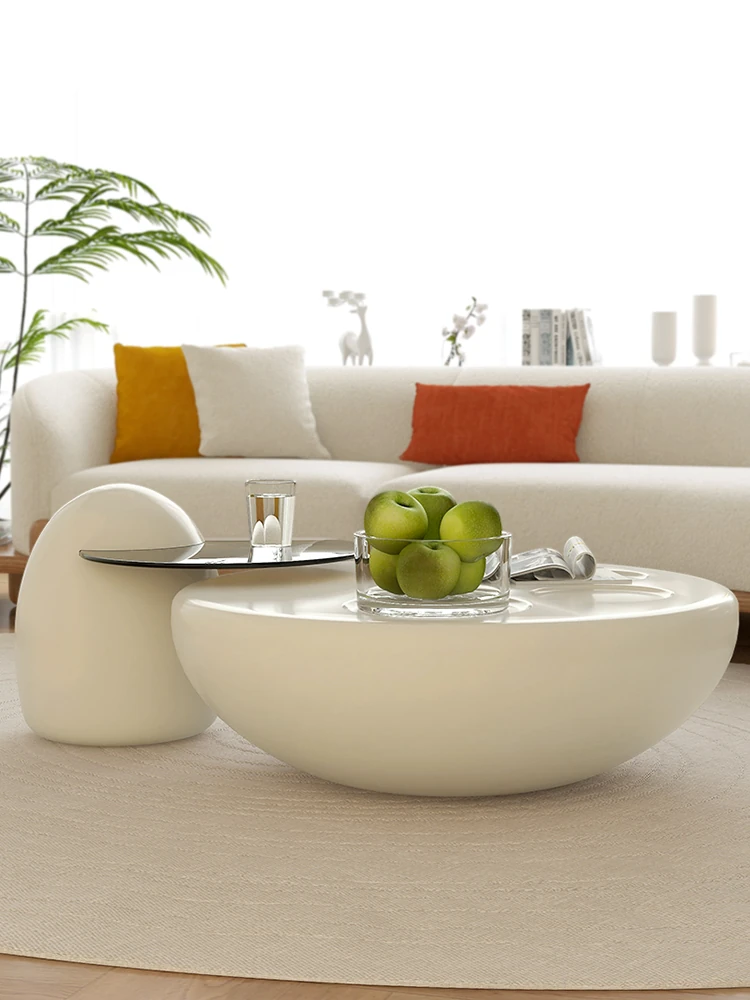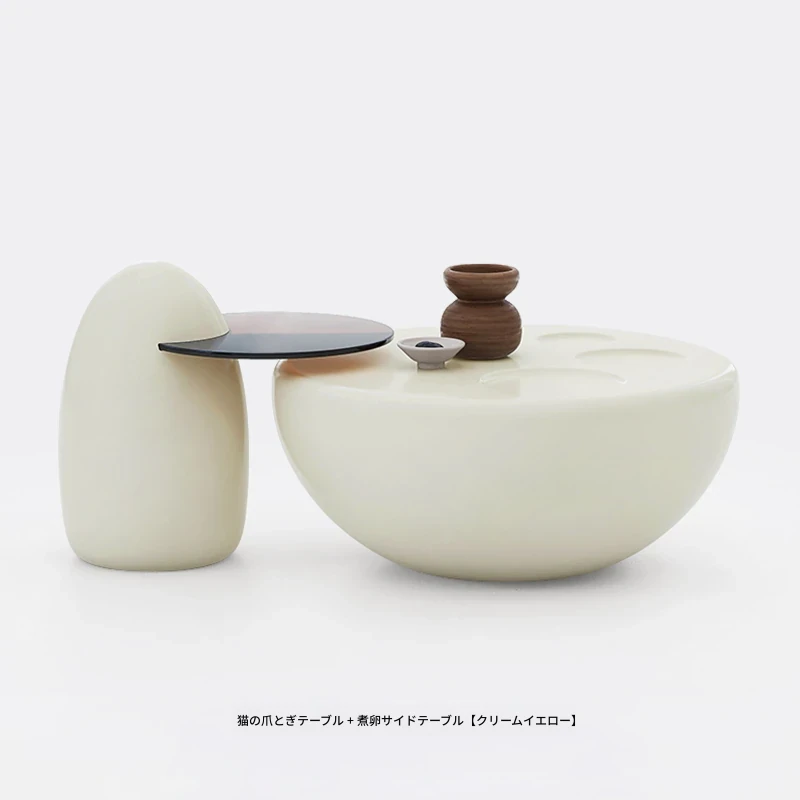 クリームネコ爪コーヒーテーブル - モダンなリビングにぴったりな新作、コンパクトでスタイリッシュな円形デザイン!シンプルなのに高級感あふれる創造的なインテリアで、小さなお部屋にも最適です。