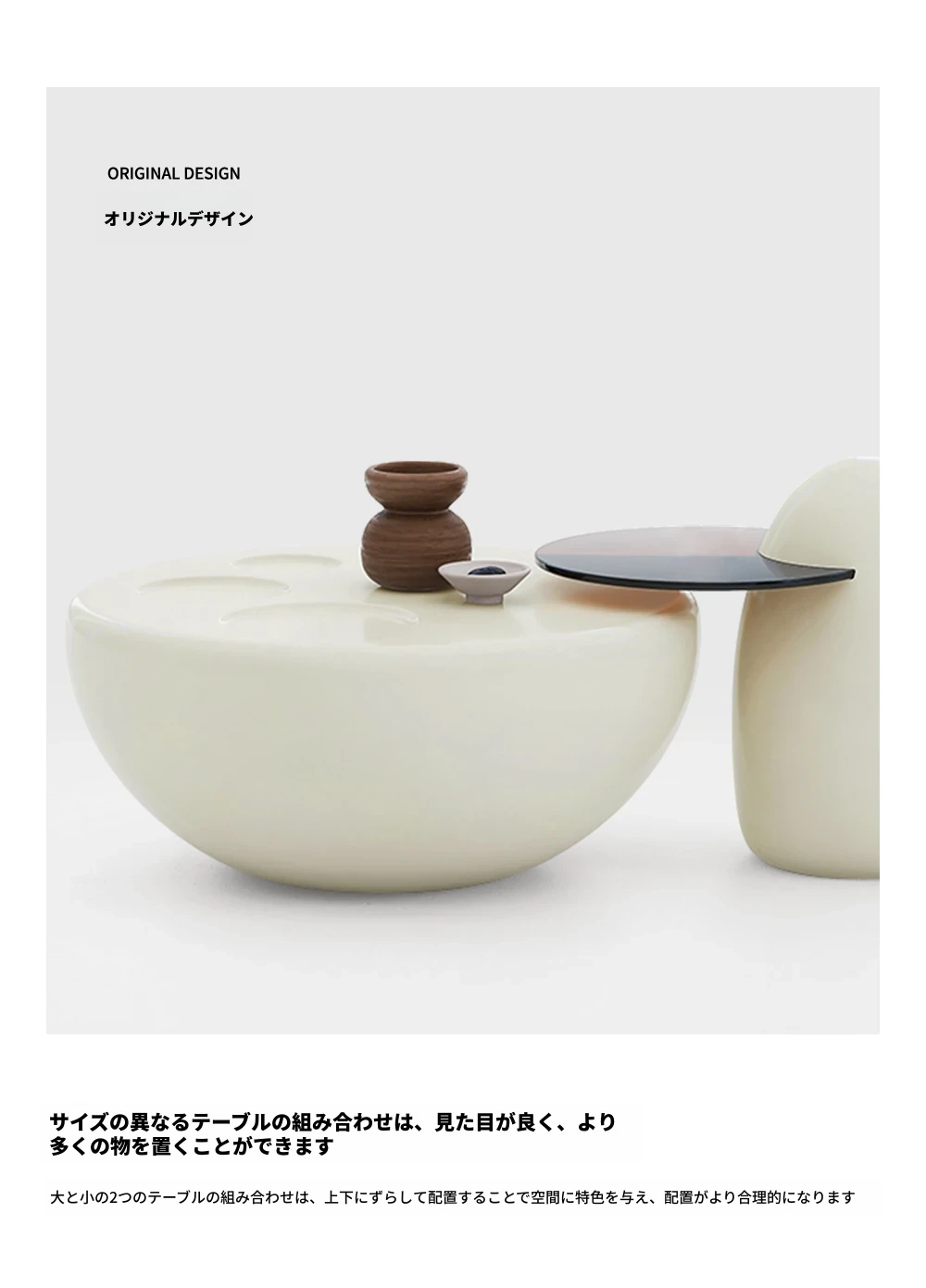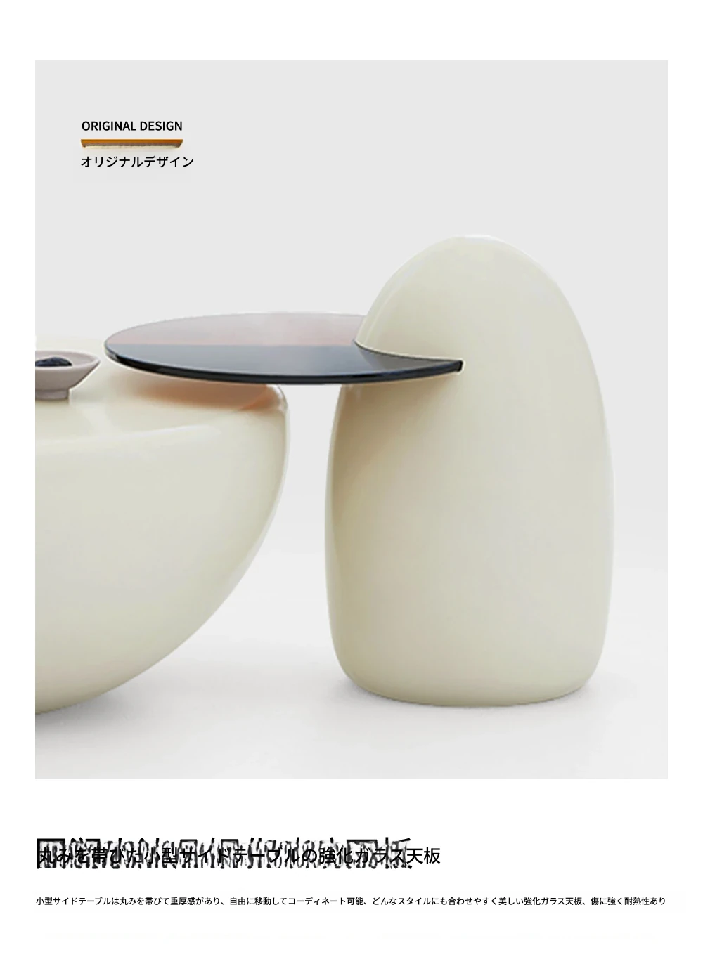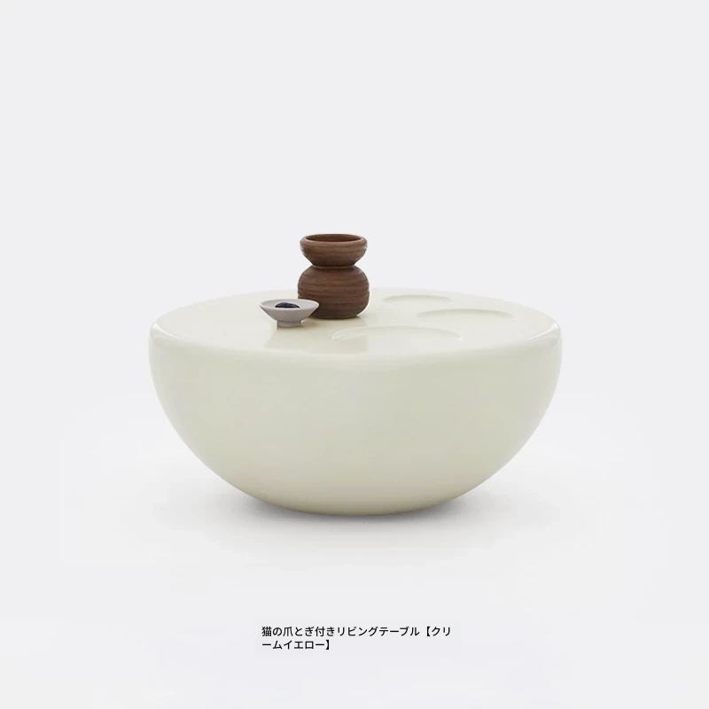 猫が爪を研ぐテーブル+煮卵サイドテーブル【クリーム色】