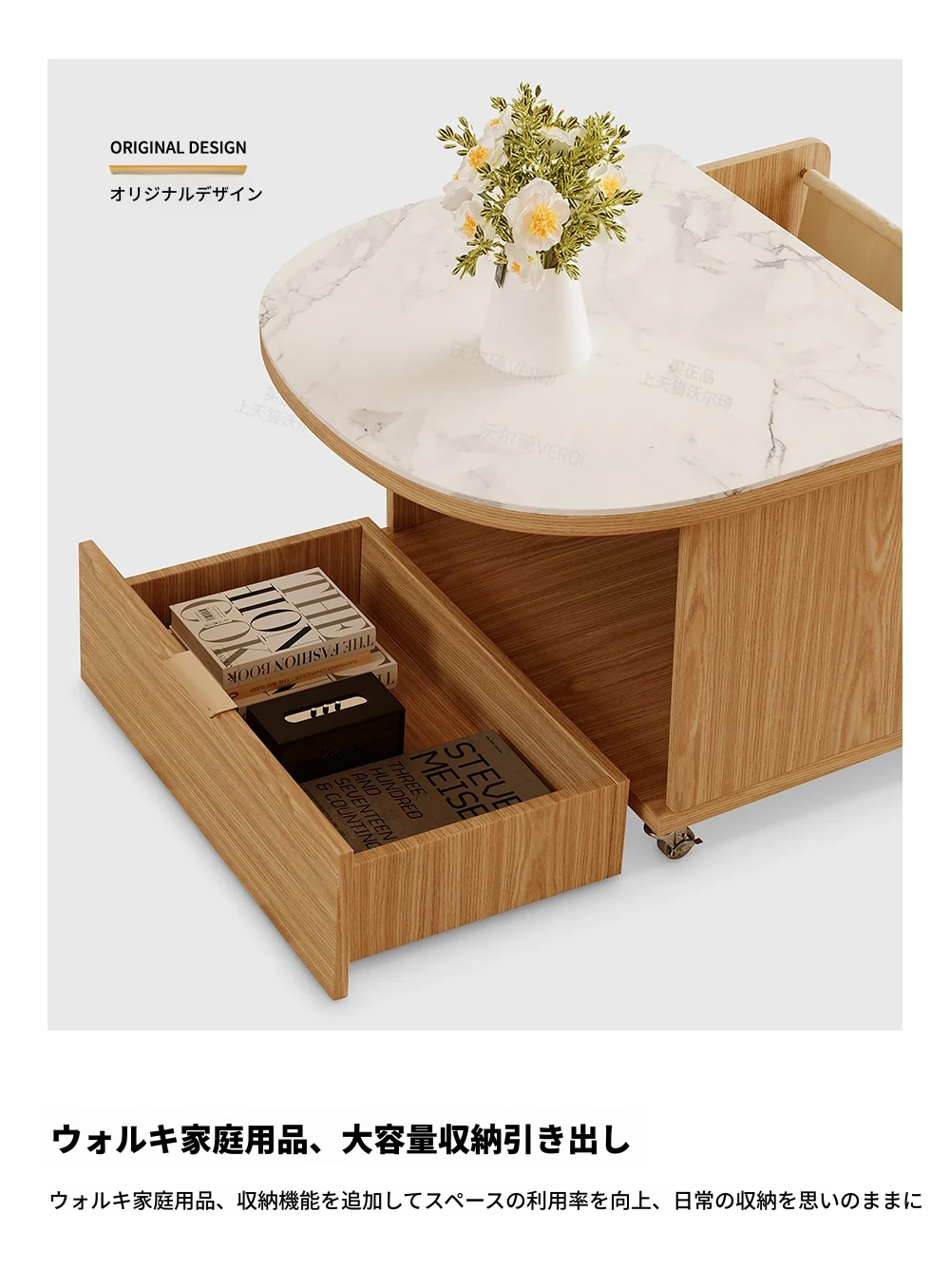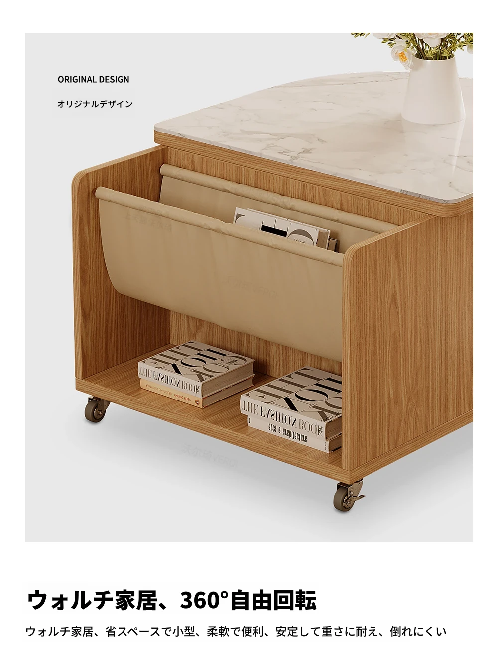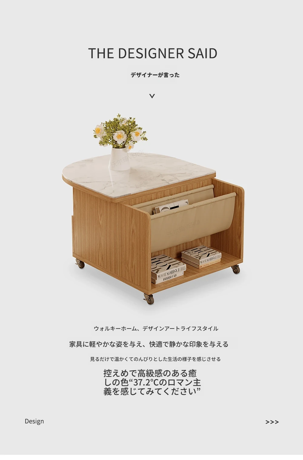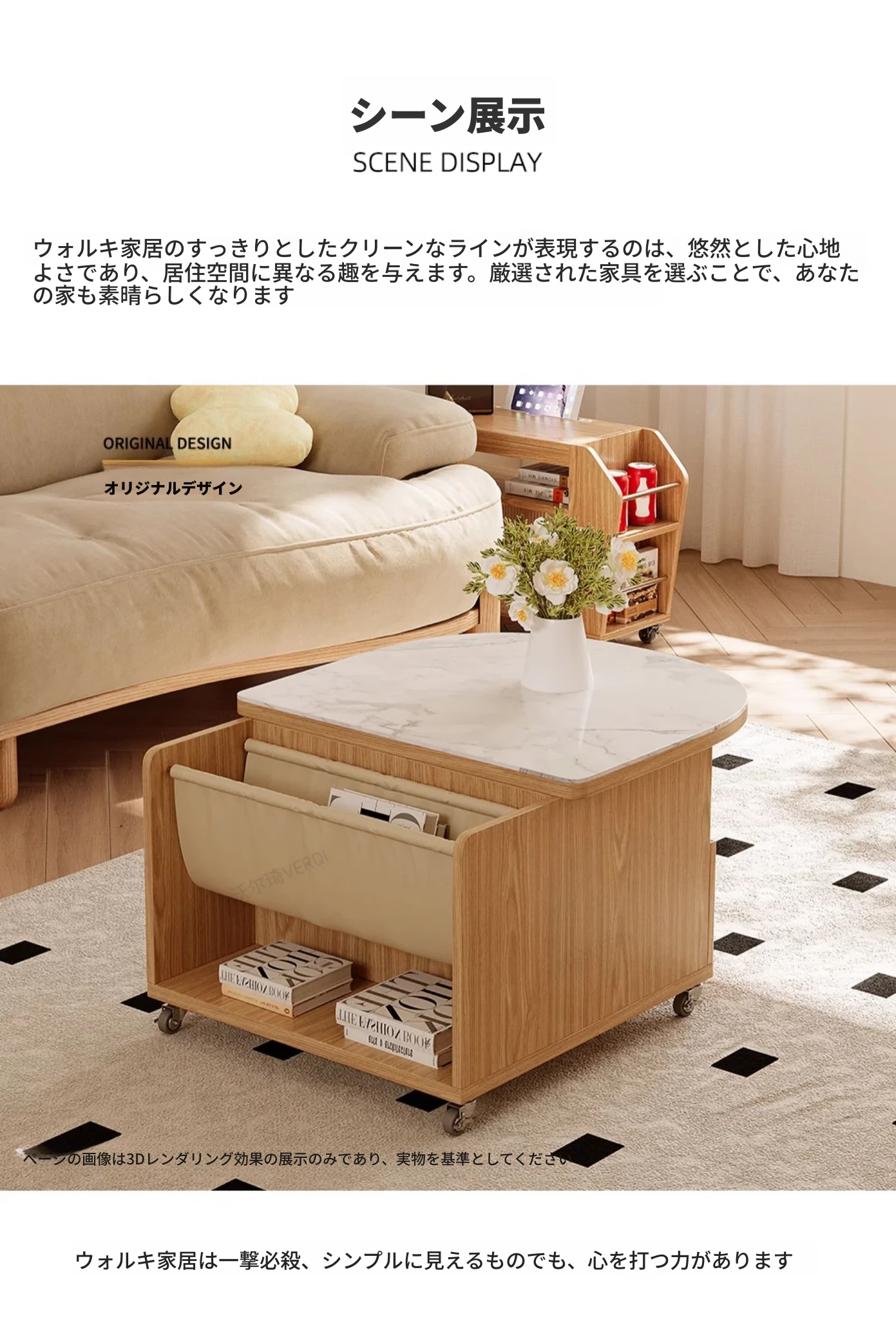 天然木製のロックボードコーヒーテーブル - シンプルでモダンな北欧スタイル、移動可能な引き出し付き!小さなリビングにぴったりな和風デザインで、居心地の良い空間を演出します。
