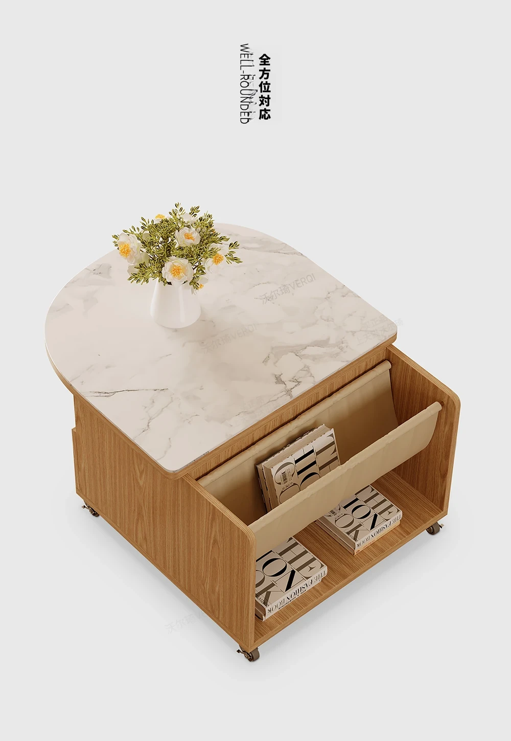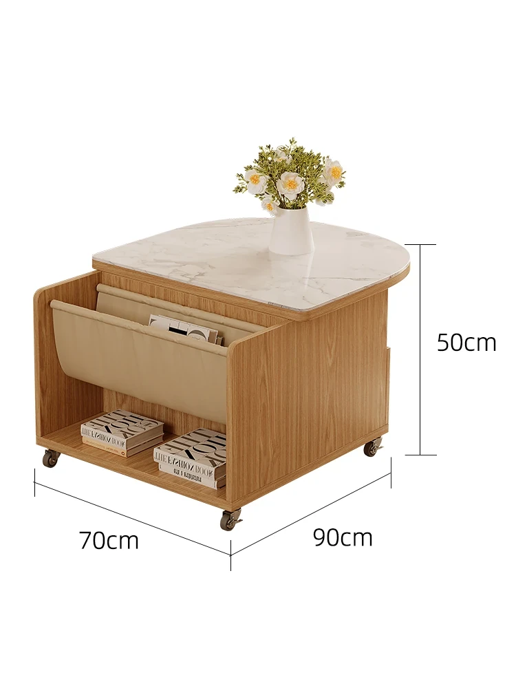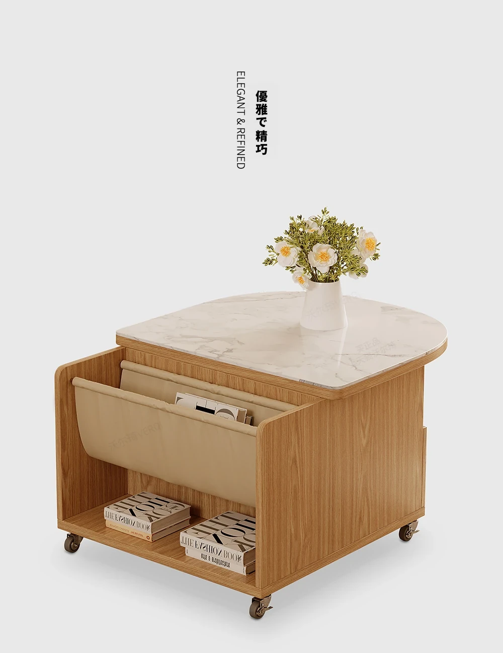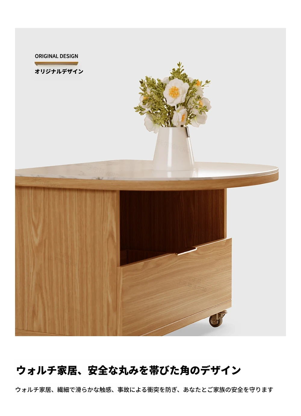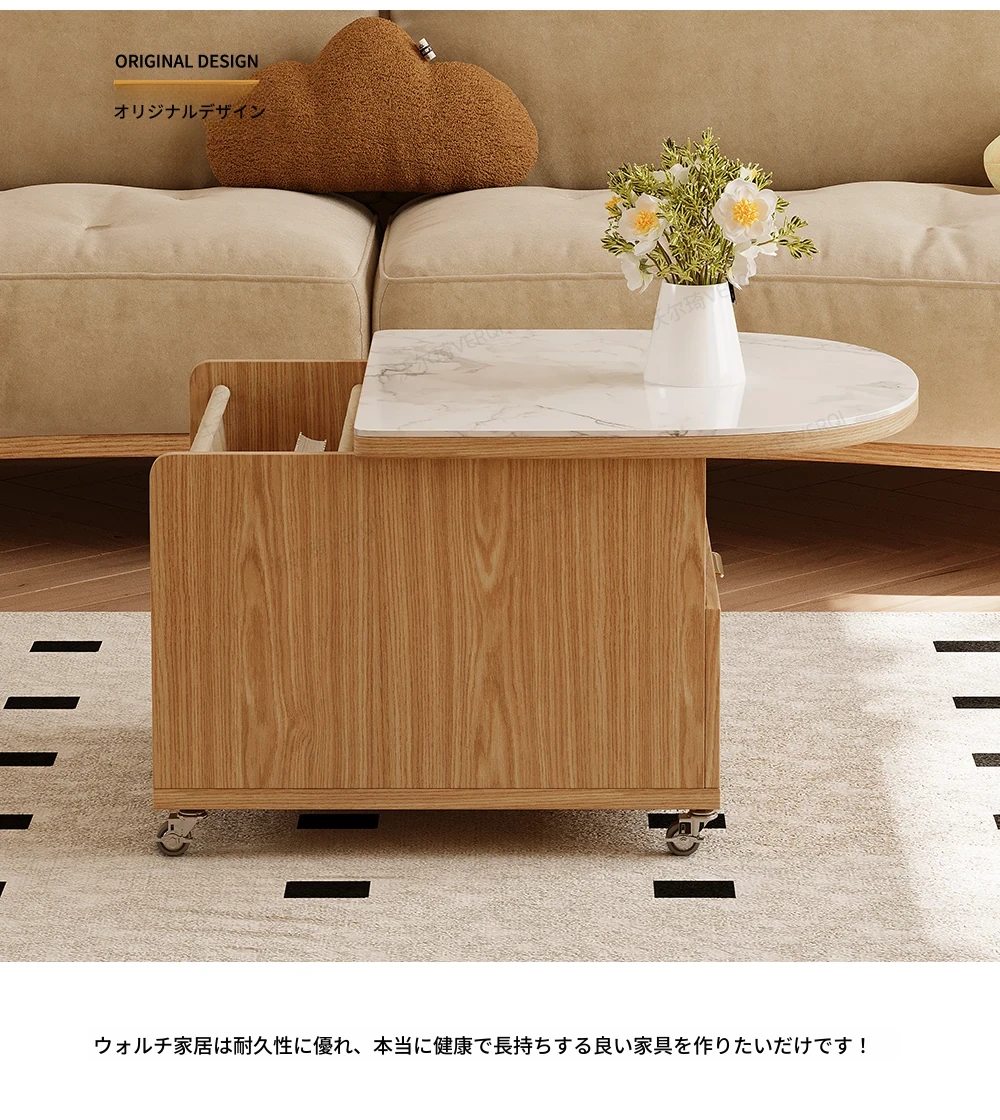 天然木製のロックボードコーヒーテーブル - シンプルでモダンな北欧スタイル、移動可能な引き出し付き!小さなリビングにぴったりな和風デザインで、居心地の良い空間を演出します。