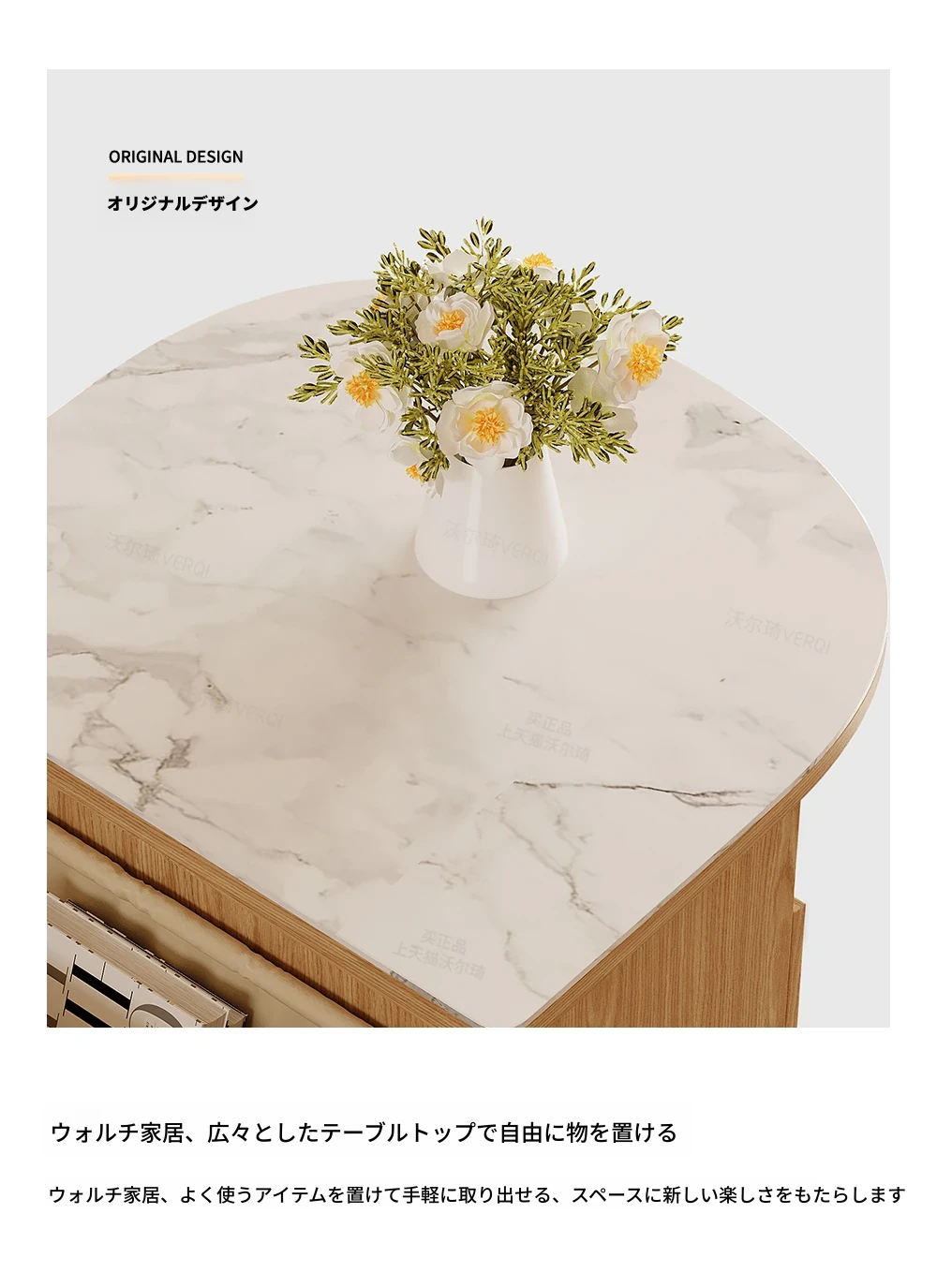 収納テーブル【無垢材フレーム+雪山石の天板】