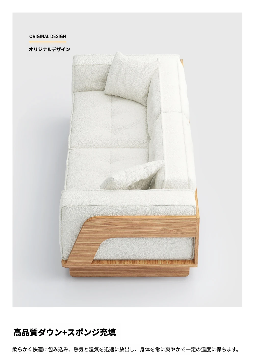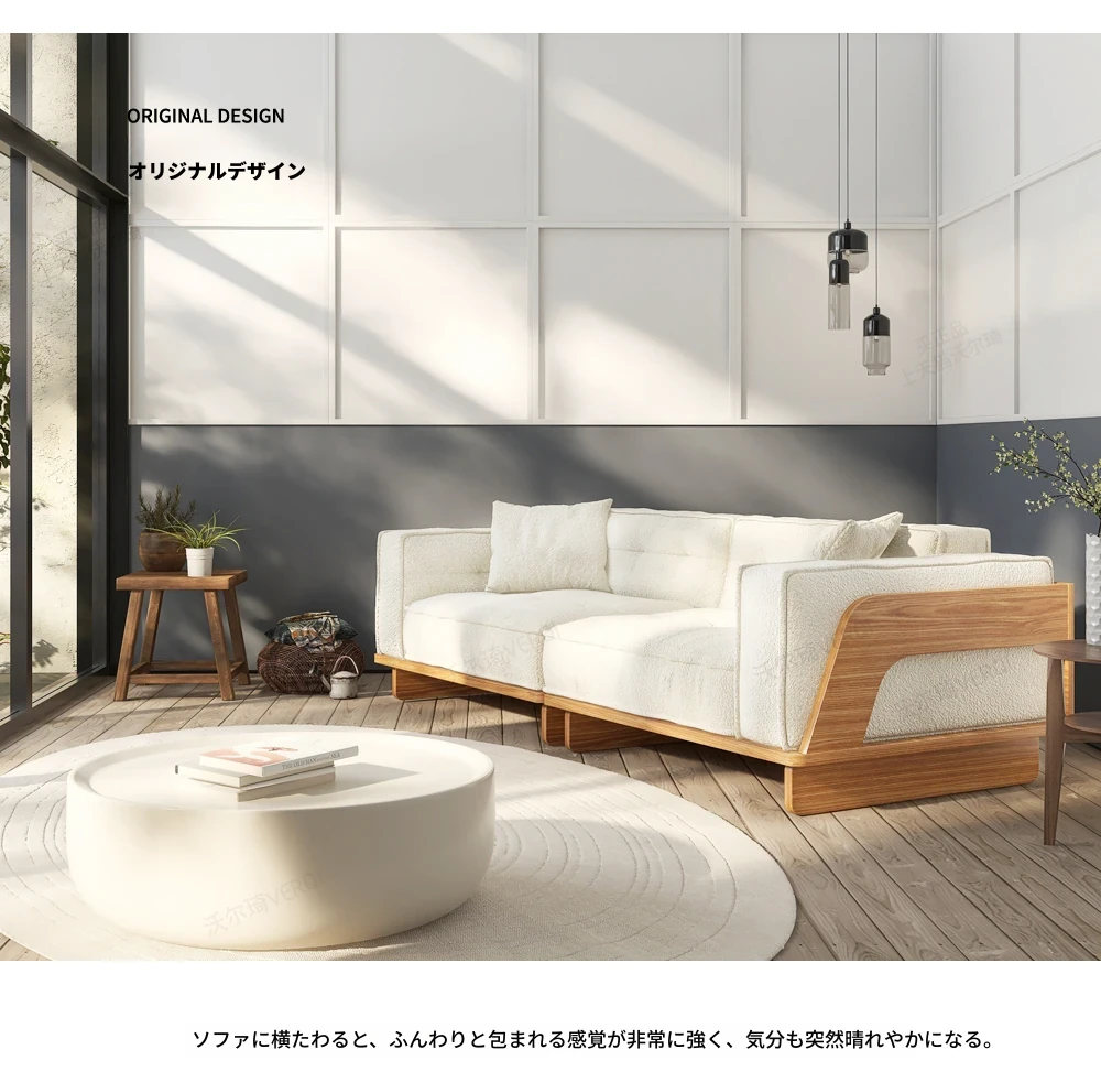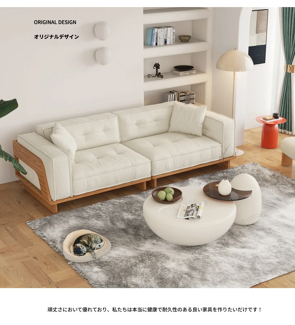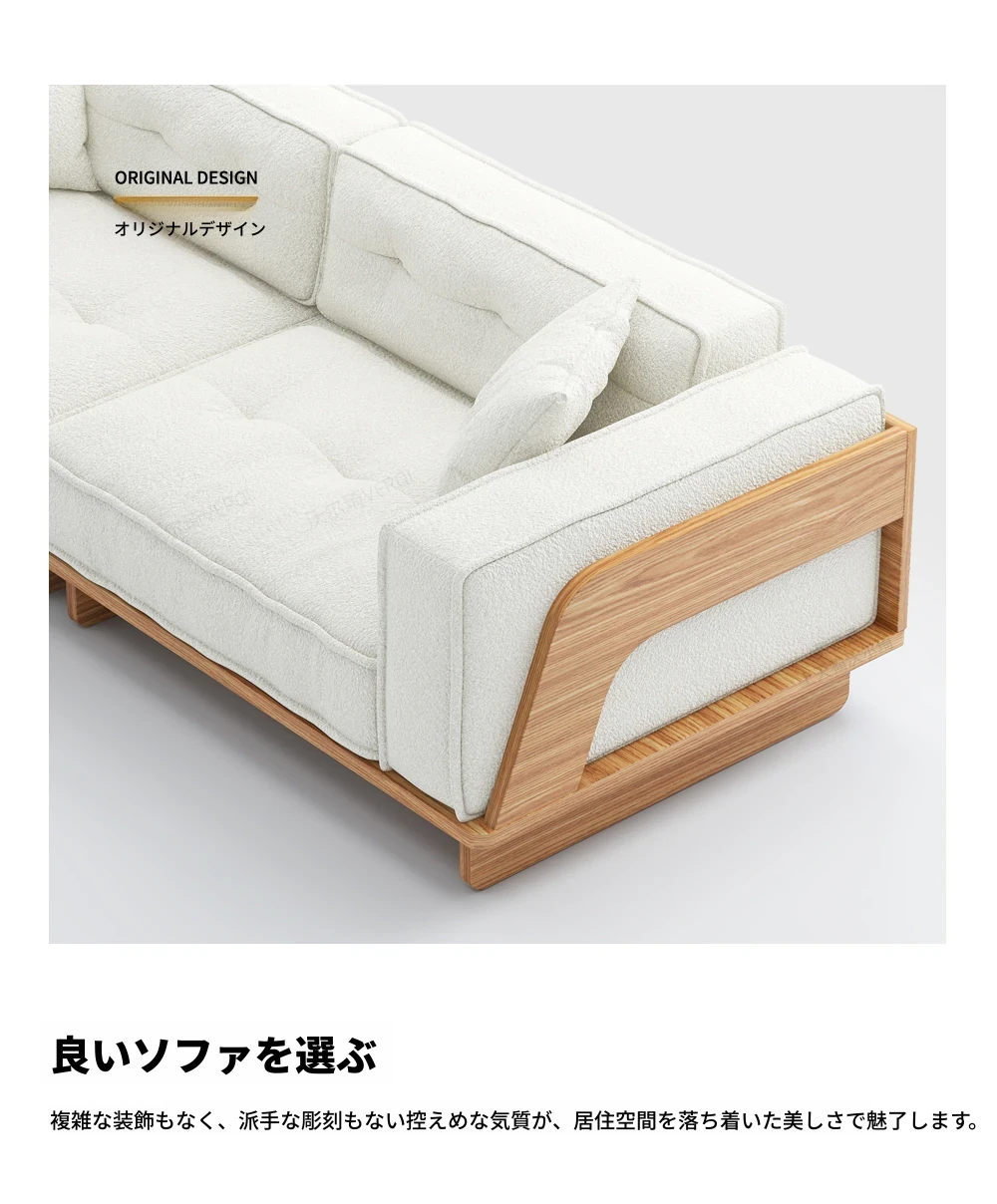 自然な木の質感を楽しむ!モダンな日本風ミニマルデザインの3人掛けソファ。小さなリビングにもぴったり、収納付きで機能性も抜群!柔らかいラムウールで、心地よいひとときを提供します。