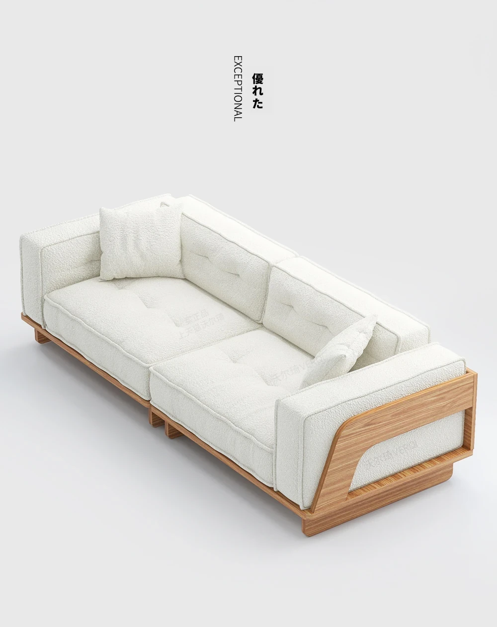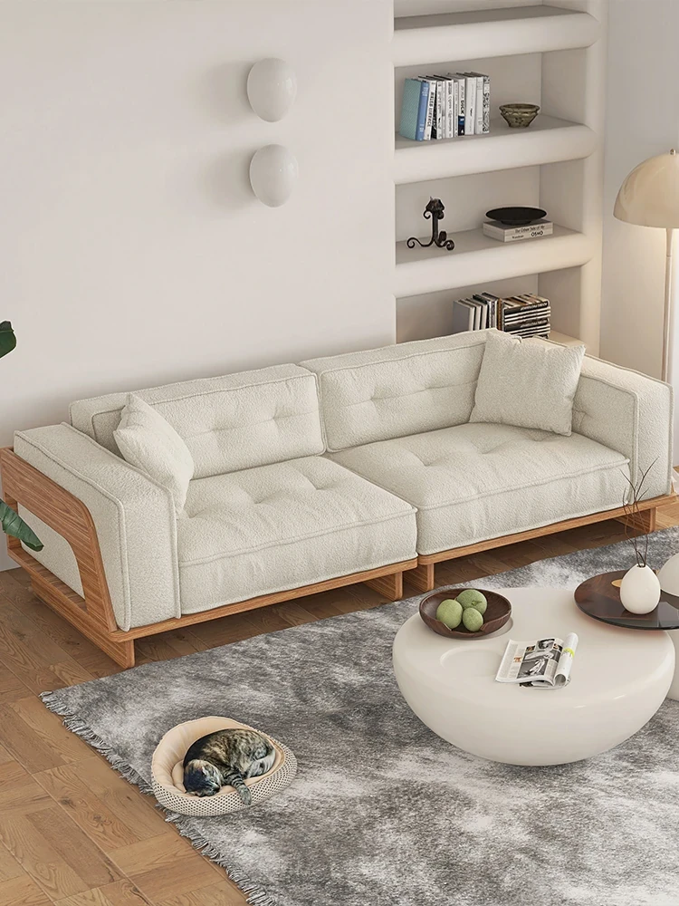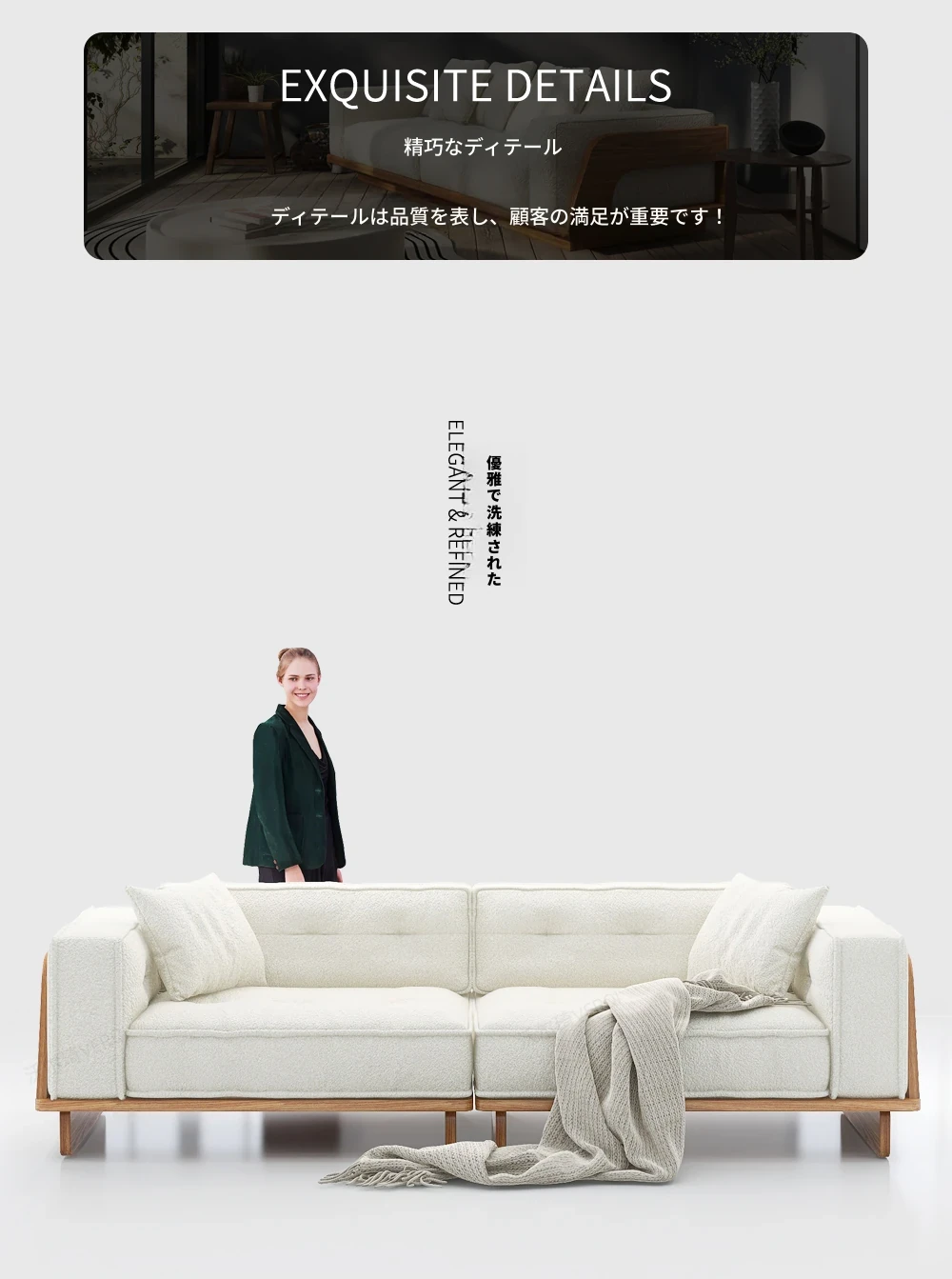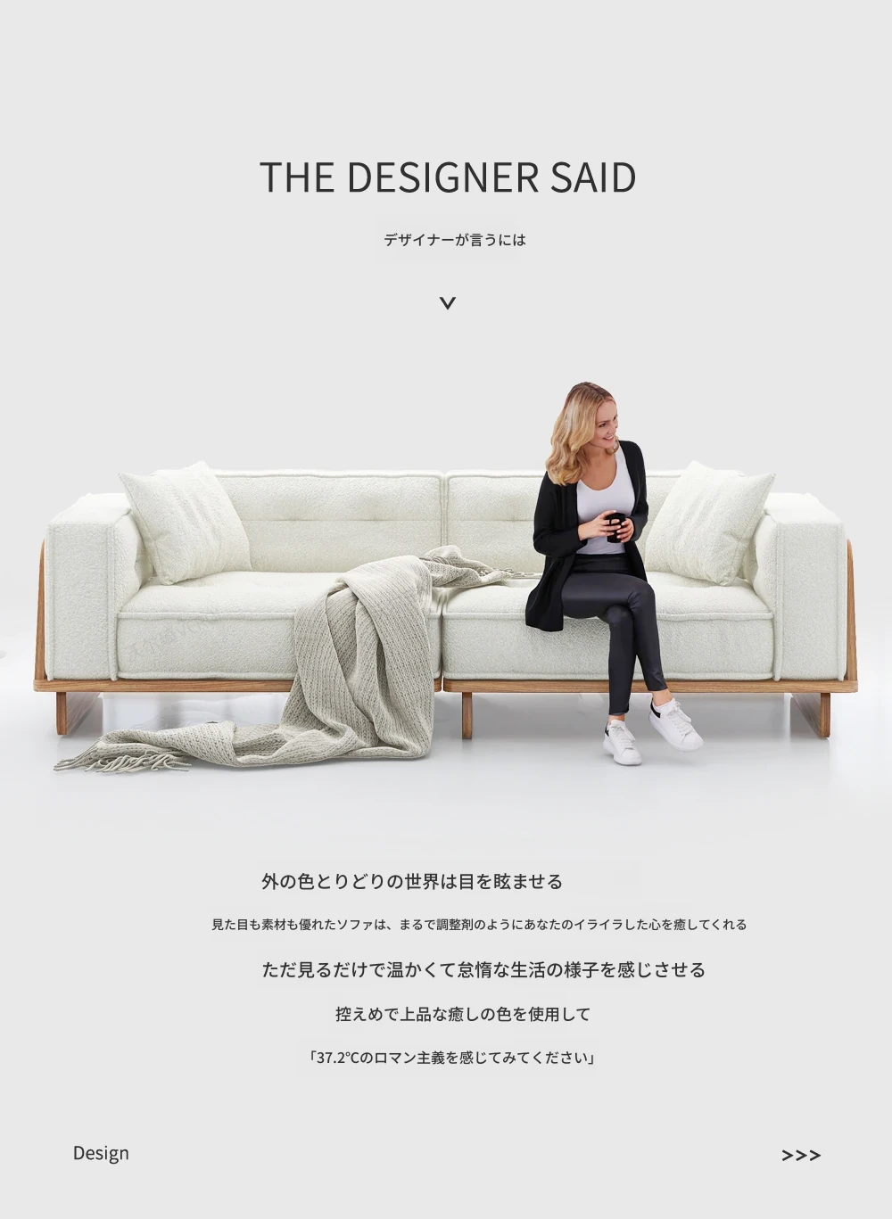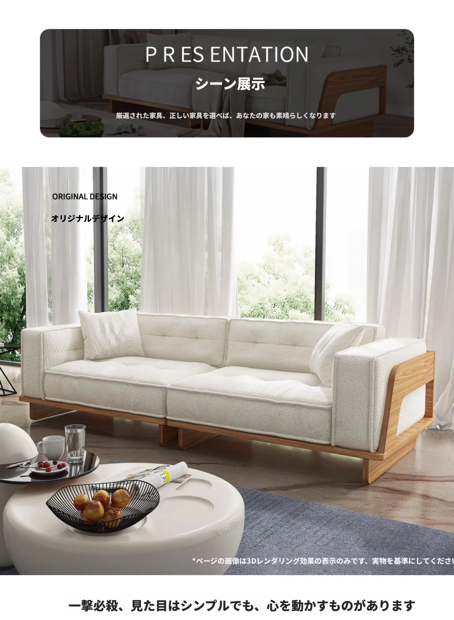 自然な木の質感を楽しむ!モダンな日本風ミニマルデザインの3人掛けソファ。小さなリビングにもぴったり、収納付きで機能性も抜群!柔らかいラムウールで、心地よいひとときを提供します。