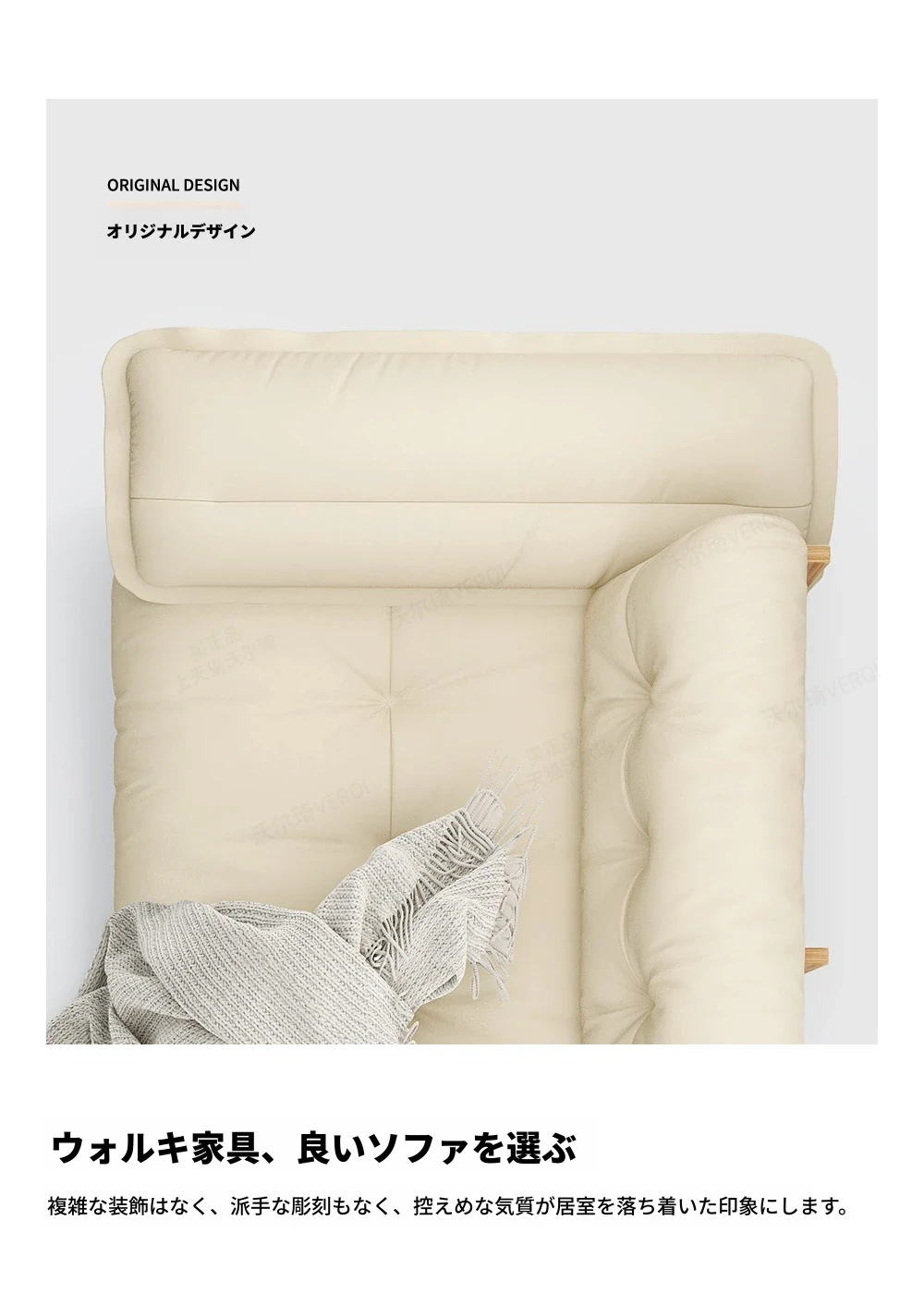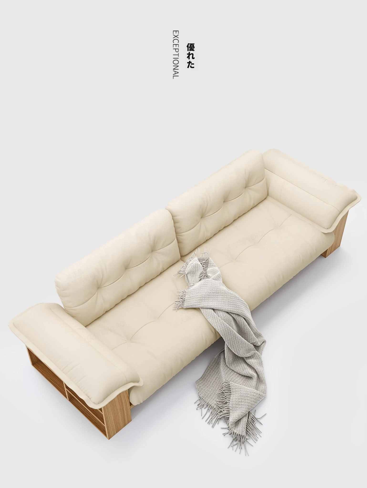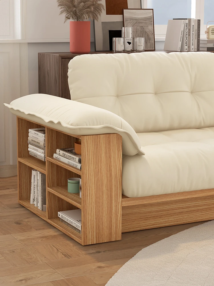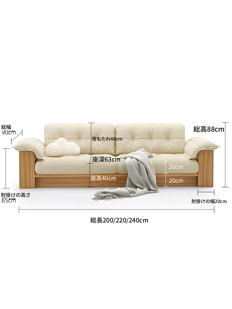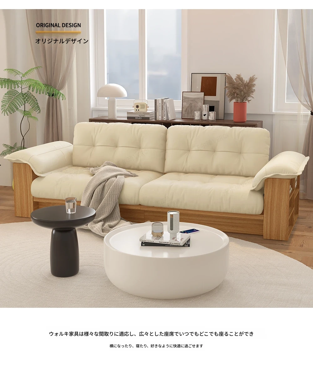 天然木製レザーソファ - 和風リビングにぴったりなモダンミニマリストデザイン!収納機能付きで、広いお部屋にも小さなお部屋にも最適な雲のようなクリーム色のソファ。おしゃれで使いやすい、あなたの生活空間をアップグレード!