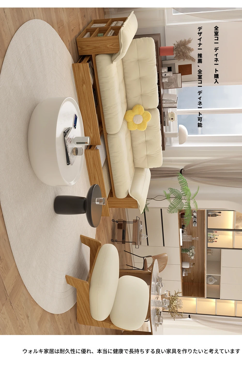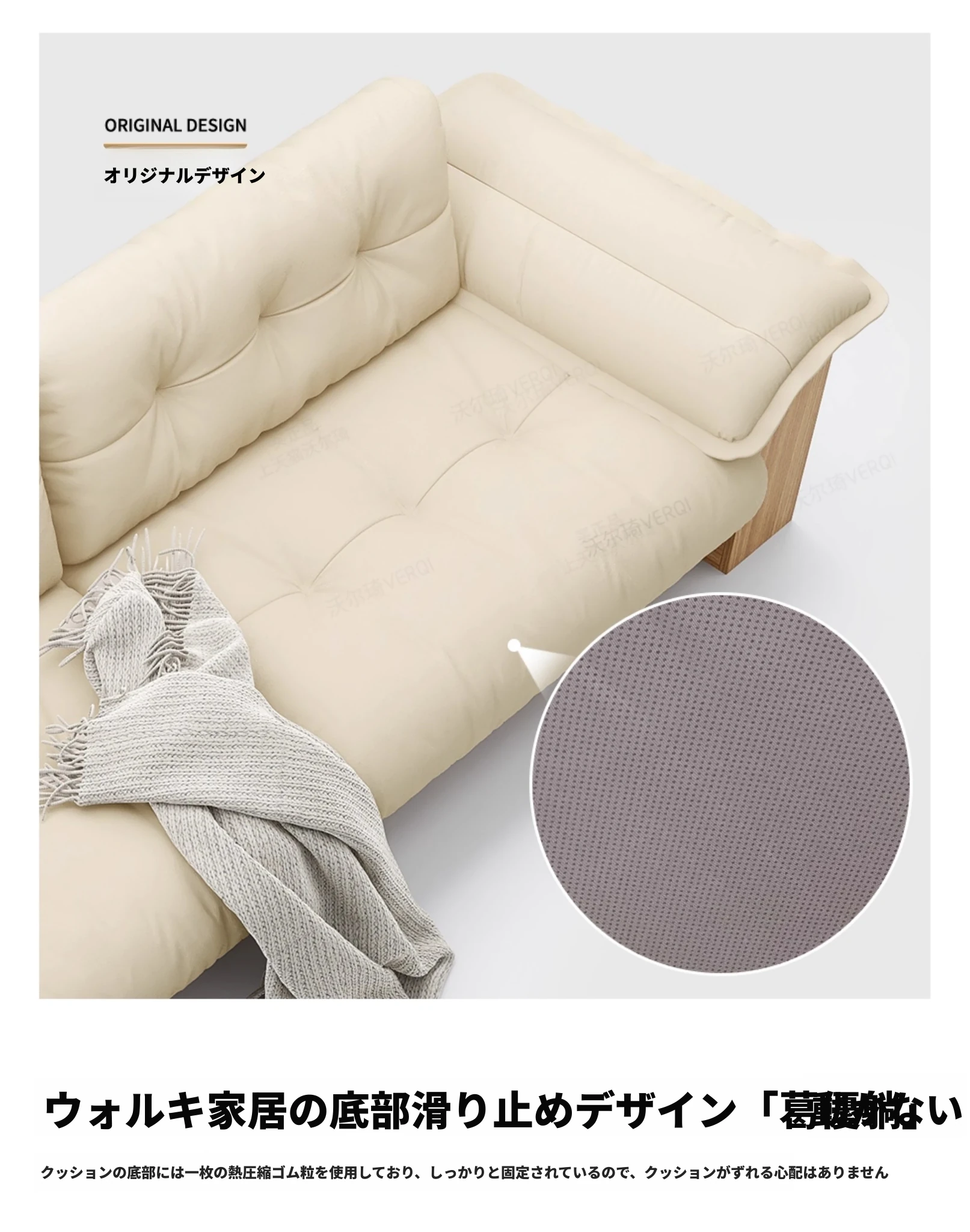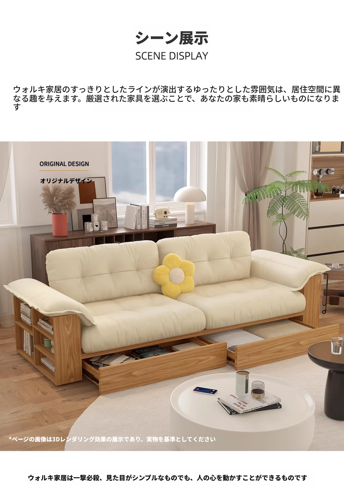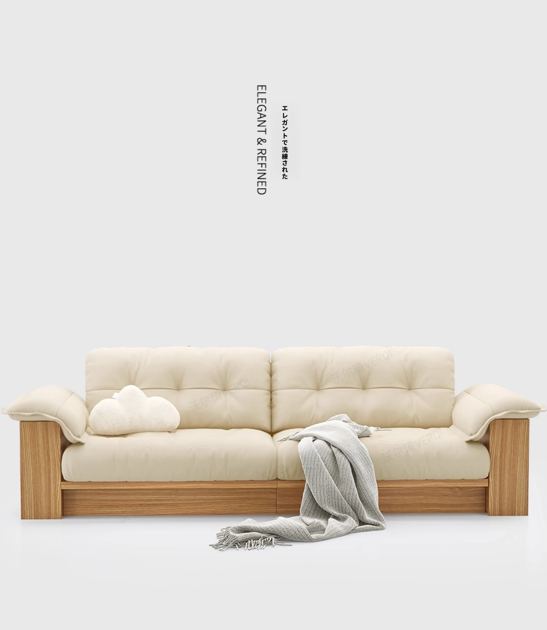 天然木製レザーソファ - 和風リビングにぴったりなモダンミニマリストデザイン!収納機能付きで、広いお部屋にも小さなお部屋にも最適な雲のようなクリーム色のソファ。おしゃれで使いやすい、あなたの生活空間をアップグレード!