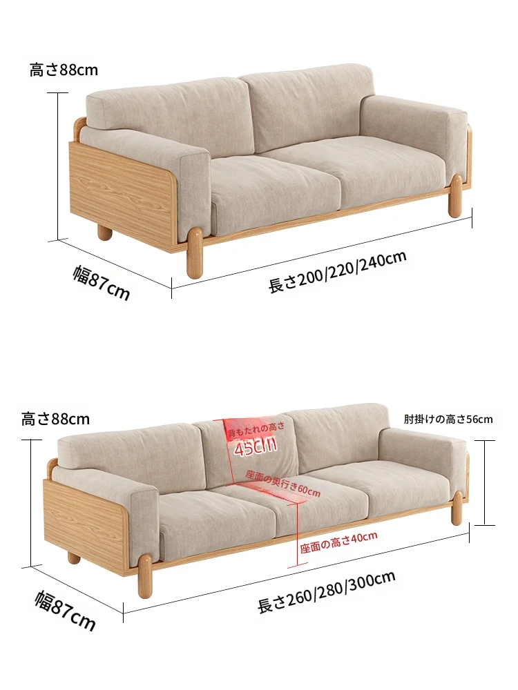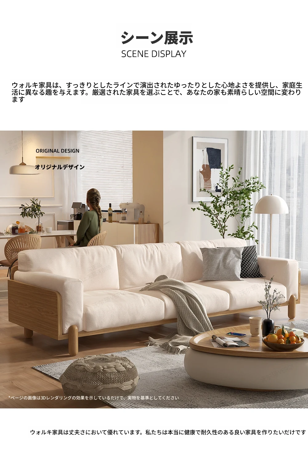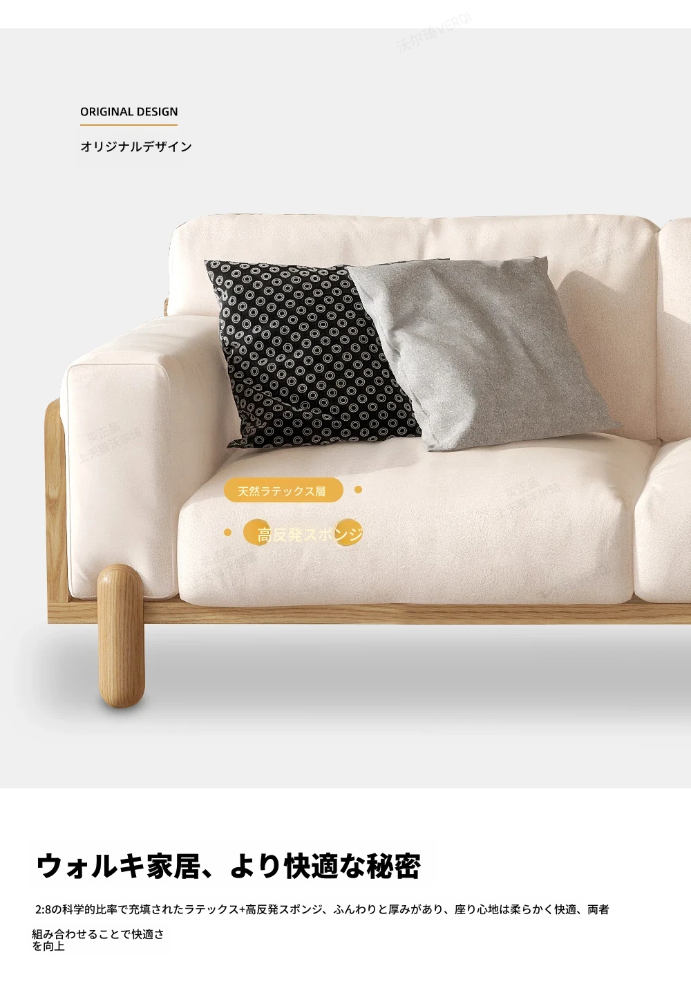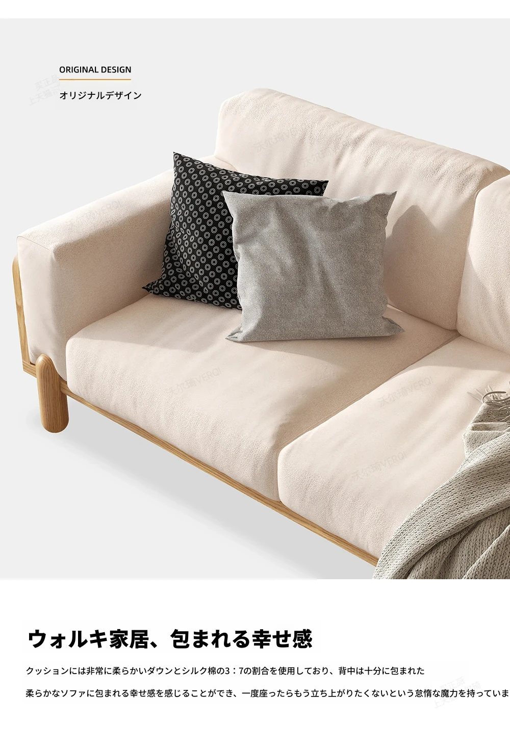 天然木材使用の和風ソファ|コンパクトな北欧スタイル|洗えるラムファー生地|小さなリビングに最適な現代的デザイン【実木製】