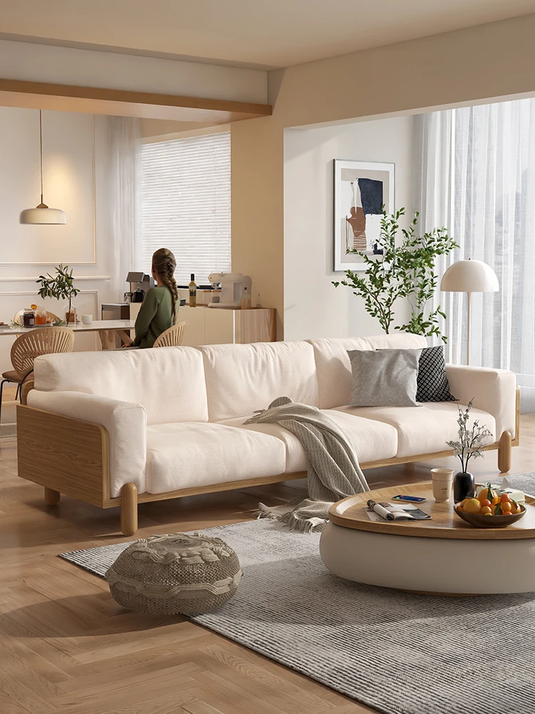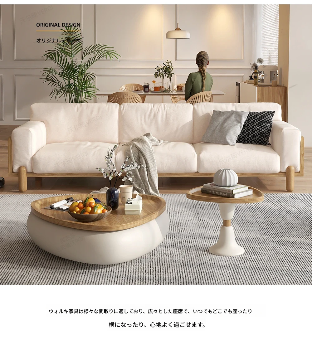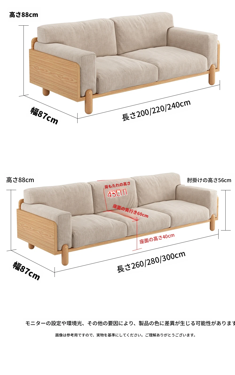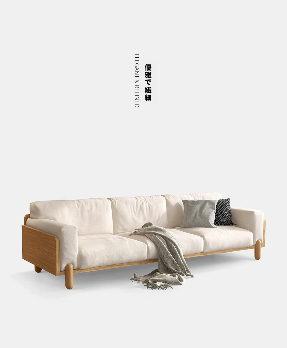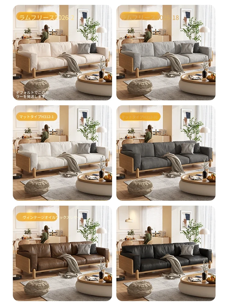 天然木材使用の和風ソファ|コンパクトな北欧スタイル|洗えるラムファー生地|小さなリビングに最適な現代的デザイン【実木製】
