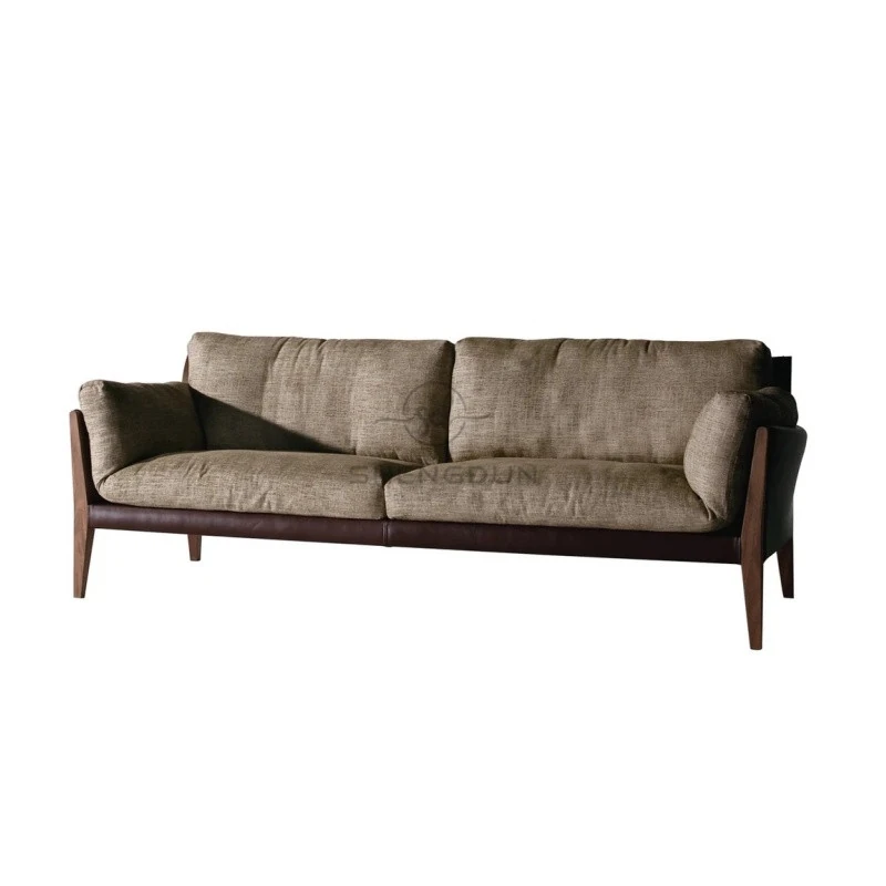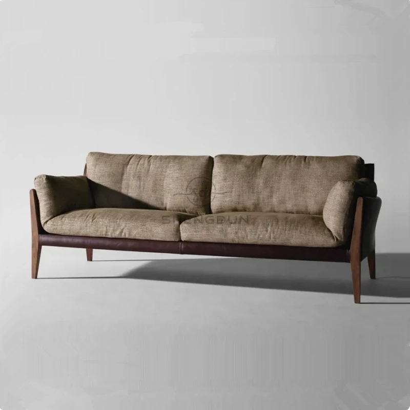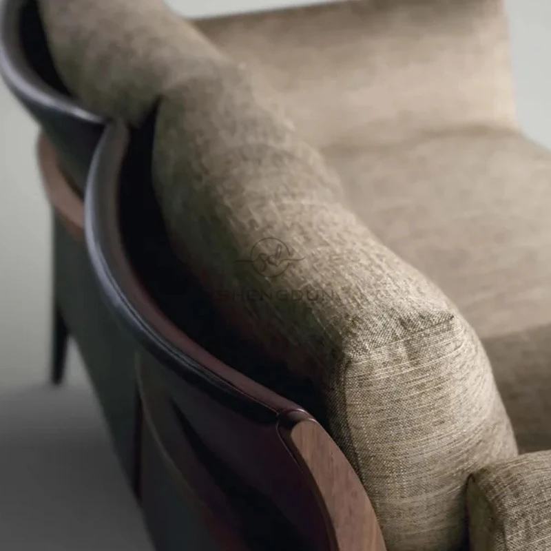 New Chinese Style Solid Wood Fabric Sofa in North American Black Walnut Color - Designer's Choice for Hotels and Guesthouses, Available in Single, Double, and Triple Seat Options for Stylish Conversations